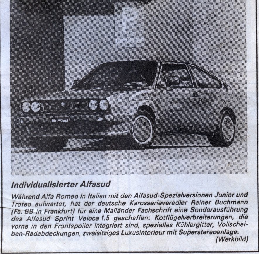 Bonsoir à tous Trouvaille FB Le Sprint de BB Buchmann, une Alfasud pour Autocapital La voiture de base est une Alfasud Sprint Veloce blanche qui est transformée à l'atelier BB Auto Exclusive de Francfort, une entreprise à laquelle j'ai déjà consacré quelques écrits. Les formes de la carrosserie s'inspirent de celles des voitures de course Trofeo qui, à cette époque, concouraient sur piste dans un championnat monomarque, en effet l'intention du magazine était précisément de réaliser une version routière, ou plutôt une "Troféo du soir". Les lignes essentielles de la carrosserie restent celles de la voiture de série, les passages de roues sont élargis pour accueillir des jantes et des pneus plus larges. L'avant est caractérisé par un spoiler avant pas trop accentué. Les quatre phares circulaires standard restent présents, encadrant une calandre redessinée ; au centre se trouvent deux éléments en plastique de la même couleur que la voiture, celui de droite avec le monogramme BB, celui du côté conducteur avec une ouverture rectangulaire, tous deux avec la fonction d'admission d'air dynamique pour le moteur. Le bouclier Alfa, comme tous les chromes, est traité avec une peinture noire mate. Les pare-chocs avant et arrière sont dérivés, adaptés, de ceux de l'Alfasud TI, tandis que les rétroviseurs, qui sont censés être importants, sont modifiés par rapport à l'Alfa 6 et sont de la même couleur que la carrosserie. Au travail sur le Sprint, nous retrouvons à nouveau Manuel Melero, dont j'ai déjà parlé dans le passé. L'employé historique du carrossier allemand, installé en Espagne à la fin des années 1970, est revenu chez BB Auto Exclusive, rappelé personnellement par Rainer Buchmann, où il est resté dans l'effectif pendant quelques années encore. La peinture du Sprint est réalisée avec l'une de ces teintes irisées si chères à Buchmann. Celui-ci en particulier présente un grain métallique très fin, obtenu avec de l'oxyde de titane, une « … carrosserie d'un bleu turquoise profond d'où la lumière printanière ruisselant d'une grande fenêtre arrachait de mystérieux reflets dorés. » « …capable d’effets chromatiques comparables à ceux des ailes d’un scarabée… » ![]() Les jantes en alliage sont des jantes de piste Speedline Trofeo avec des jantes argentées et des enjoliveurs aérodynamiques en plastique, également de la même couleur que la carrosserie. Le seul élément décoratif sur les roues est le logo BB chromé sur les enjoliveurs, avec le trou pour les retirer caché à l'intérieur de l'un des deux B. Les pneus sont des Pirelli P7 Corsa 235/45 VR 15. La mécanique reste celle du Sprint Veloce 1.5 standard, probablement en raison de difficultés objectives pour obtenir l'homologation en Italie. La seule licence est l'échappement sport avec double terminal chromé. Si les changements apportés à la carrosserie sont peu nombreux et bien ciblés, la véritable révolution se situe à l'intérieur, où les finitions et les équipements de bord ont été revus pour le mieux. La position de conduite est assez familière, l'instrumentation reste la même que celle de la Sprint standard. Le volant est neuf, à quatre branches et une jante recouverte de cuir noir, fabriqué par Italvolanti et monté sur un moyeu de la société allemande Atiwe. Le tableau de bord, ainsi que les sièges, la console centrale et la partie arrière de l'habitacle, sont entièrement recouverts d'Alcantara gris-bleu. Le choix du matériau de revêtement est dû à sa très faible épaisseur, qui le rend facilement moulable, et à sa durabilité dans le temps, considérée comme supérieure à celle du cuir naturel au début des années 1980. Les sièges avant sont anatomiques signés Koenig, un incontournable sur les voitures de luxe, tandis que la banquette arrière est remplacée par un compartiment de rangement divisé en compartiments et recouvert d'un auvent. Le designer de Francfort avait tout simplement supprimé la banquette arrière, la remplaçant par une série d'éléments aptes à constituer, pris ensemble, ce que l'on pourrait appeler le coin service du sportif raffiné. Il y avait une série de compartiments, fermés et ouverts, conçus pour accueillir, selon leur taille, chronomètres et appareils photo, combinaisons et casques de rallyman, radars et, pourquoi pas, bouteilles de champagne. Comme toujours, un point fort des créations de Buchmann est la Hi-Fi ; sur le Sprint, nous trouvons un sophistiqué Blaupunkt SQR22 avec lecteur de cassettes, équipé d'une « constellation » de 12 haut-parleurs. La configuration Sprint a coûté environ 20 millions de lires et la voiture a été un véritable succès au salon de l'automobile de Turin, où au moins 18 personnes ont demandé à l'acheter. Sa présentation s'accompagne également d'un référendum intitulé « Quelle autre voiture exposée ici au salon aimeriez-vous voir modifiée dans l'esprit avec lequel l'Alfasud Sprint BB a été transformée ? » Environ 15 000 bulletins de vote ont été reçus pendant les jours de la manifestation de Turin. La voiture a survécu jusqu'en 1982 en tant que témoignage pour Autocapital lors de divers événements avant de tomber dans l'oubli. Il réapparaît dans les années 2000 sur Ebay, où il reste invendu pendant plusieurs mois. Nous le retrouvons plus tard chez un concessionnaire de voitures anciennes à Milan. La voiture est actuellement en Italie, elle est en excellent état et les enjoliveurs ont été retirés et rangés à l'intérieur de l'habitacle. On peut parfois le voir lors d'expositions de voitures classiques. |
