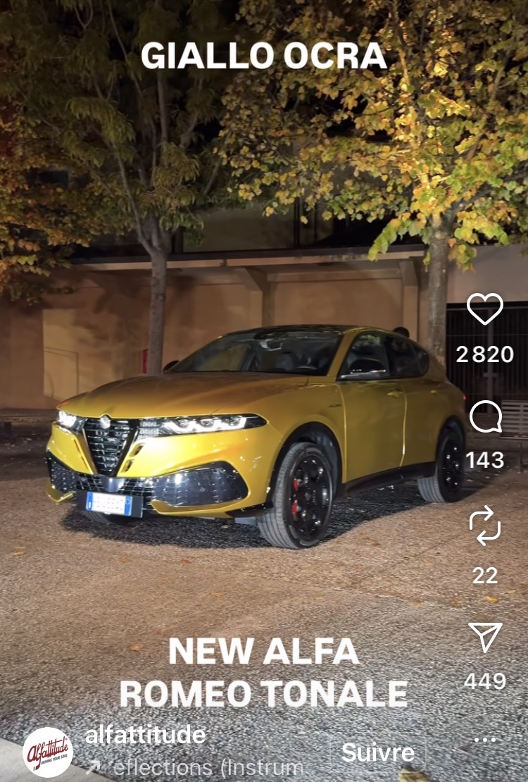L’Ypsilon. Sinon le restylage de la Tonale, sans plus niveau design… les prises d’air du pc avant sont horribles… par contre elle gagne pleins de couleurs, le 1.5 hybride passe à 175ch (c’est le même qu’avant mais la puissance annoncée prend en compte l’appoint électrique. Et le PHEV perd 10ch (étonnant) à 270ch. Dernière édition le 15/10/2025 à 07:11 par ItalianDriver, édité 1 fois |