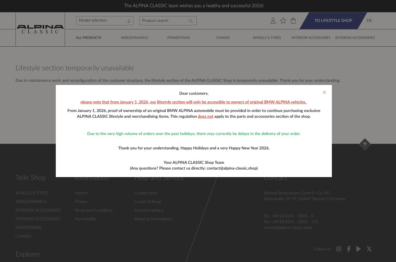 Je pense que ca a avoir avec le fait que BMW a racheté ALPINA. là même le site officiel d'Alpina ne fonctionne plus. |