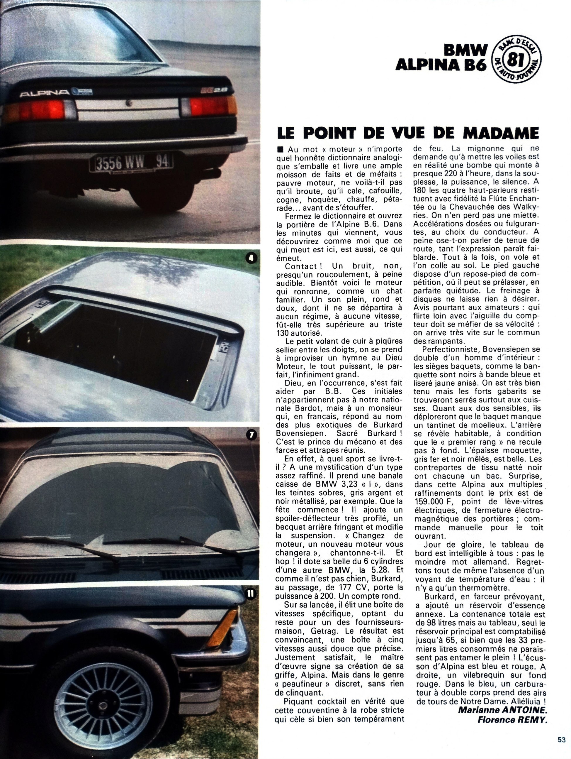 L’Alpina B3 Touring dans le dernier Bavaria Je ne savais pas qu’il y avait des Alpina E30 4 roues motrices. |