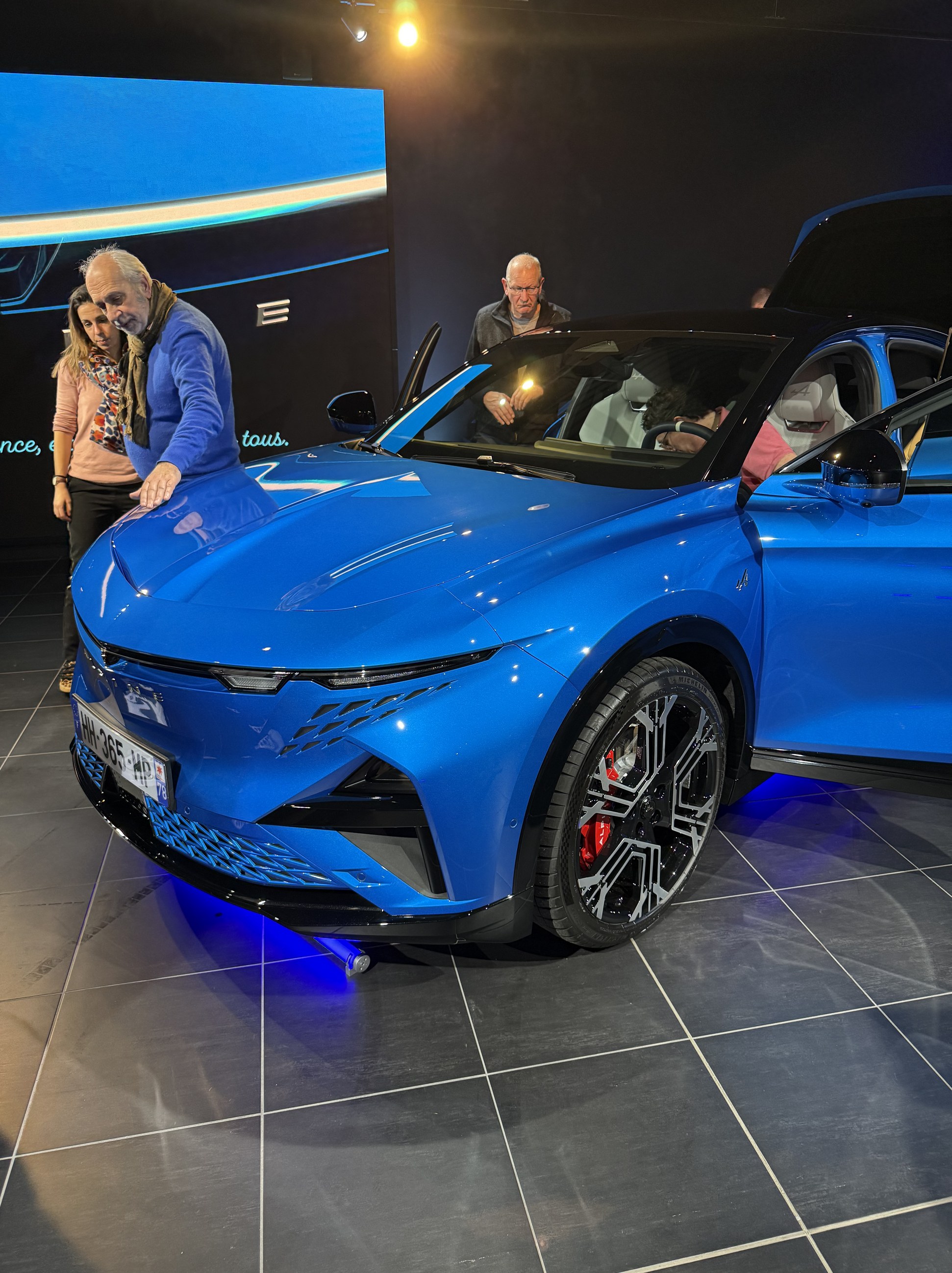 Bon c’était plutôt pas mal organisé cette petite sauterie Ils en font des caisses sur « on n’a pas voulu les 4 roues directrices on voulait autre chose » « on a dû 400 volts mais très performant « bref ils assument pas trop les points un peu daubes de la caisse Sinon, je la trouve magnifique en bleu alpine/toit noir. Gabarit pas trop énorme, lignes élancées elle a vraiment du charisme. Les jantes snwoflake sont très belles les autres bof. L’intérieur a une vraie ambiance, on n’a pas l’impression d’être dans un scenic upgrade. Les sièges en cuir bicolore sont très beaux, assez enveloppants. Certains points de finition restent compliqués, les contre porte sont en plastique de poubelle, c est un peu limite. Ce que je voulais voir était l’habitabilité, à l’arrière surtout. J’ai encore de la place « derrière moi ». C’est donc plutôt pas mal par contre il faut un peu se contorsionner pour rentrer, le pied milieu est gênant et je dois baisser beaucoup la tête avec le pavillon plongeant. Néanmoins cnest sans commune mesure avec une ds8 qui est juste ridicule. Bref, j’étais partagé avant d’aller la voir, les caractéristiques techniques m’avaient refroidi mais là elle est vraiment attirante, cnest un coup de cœur statique. Ça me donne envie de m’inscrire pour un essai, voir si elle si sympa en dynamique et si le confort est acceptable. Gt ou gts je suis partagé, la gt offre des perfs suffisantes mais en mettant tout l’équipement qui est de série sur la gts, l’écart est très faible. Bref, si je dois repasser sur une électrique ce sera sur celle la Cerise sur le gâteau, elle est éligible à l’ecoscore, donc ne coûtera pas grand chose |