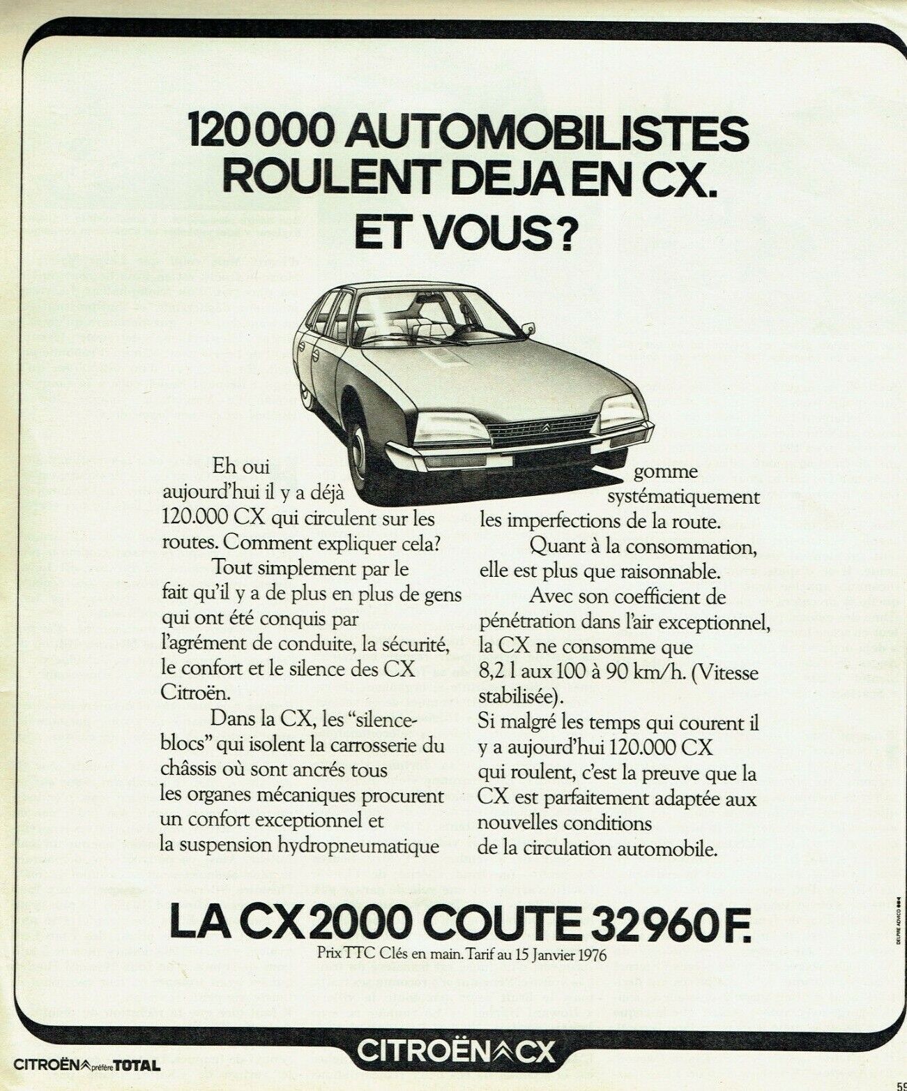 . Quelques infos sur la production de la Citroën CX Total Citroën CX durant sa commercialisation (1974/1991) : 1 169 745 exemplaires Total berlines : 1 041 560 berlines (1974/1989) Total break : 128 185 breaks (produit jusqu'en 1991) |