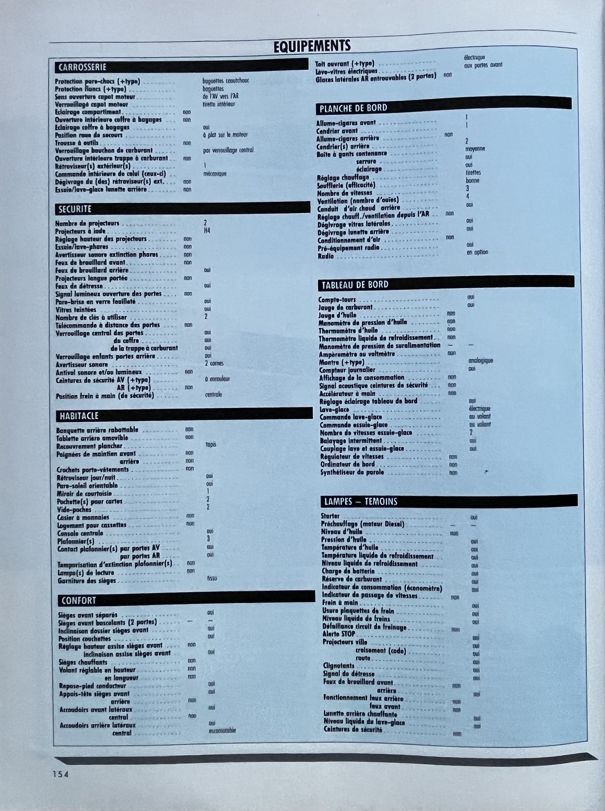 Modèle qui a été proposé en 84 avec la motorisation SFM 2L, puis la version 25D verra le jour, enfin le Turbo D 95 ch puis plus rare, le 25 IE et ce jusqu'à l'AM 86 en configuration Série 1, malgré que les Séries 2 étaient proposées à la clientèle à partir de septembre 85 ! |