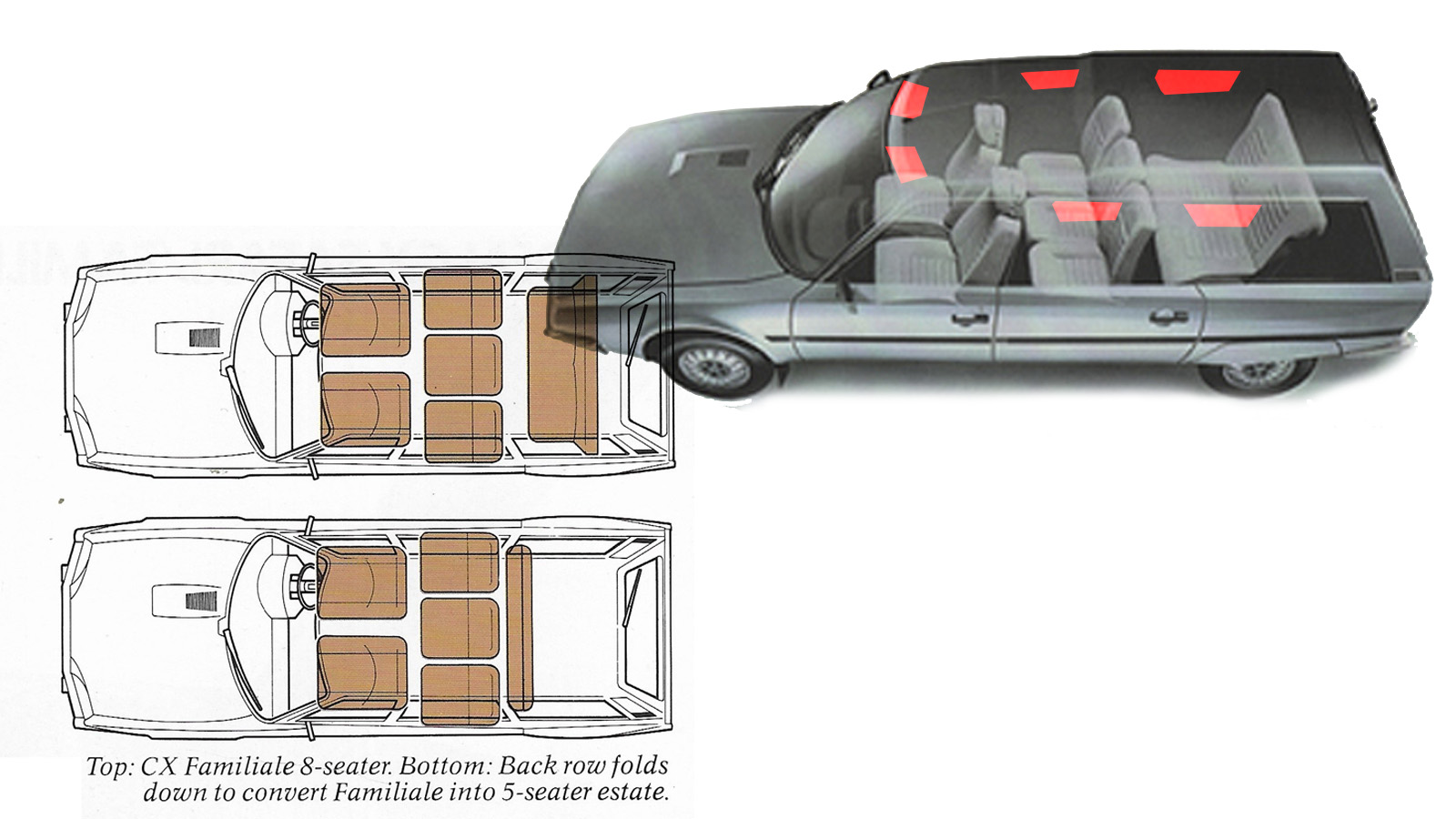 Oui, mais si on enlève la dernière rangée de sièges de la familiale (en opportunité et de façon ponctuelle, comme sur le schéma du bas) ça n'en fait pas pour autant un break... Même difficulté avec une Peugeot 504 ou 505... |