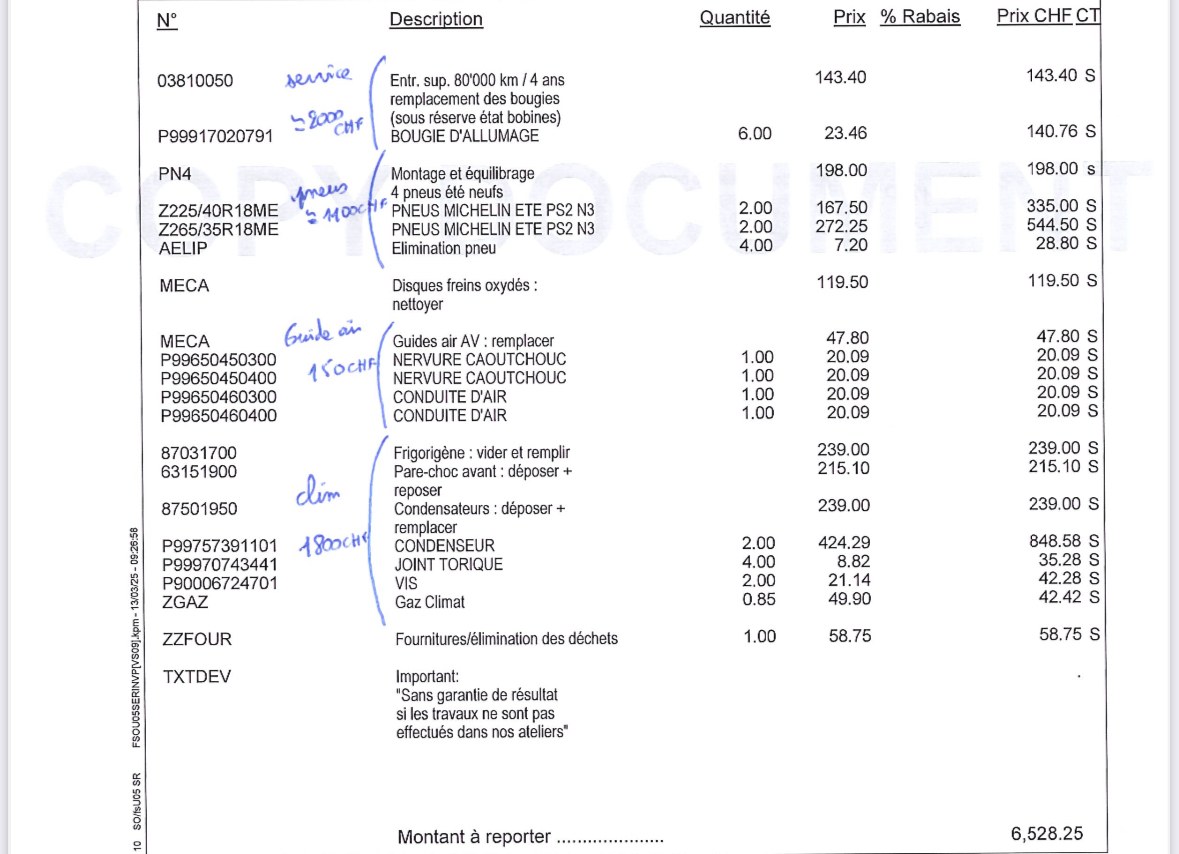 Je m'attendais bien à avoir mal au cul en amenant un Boxster de 23 ans qui avait pas vu un centre Porsche depuis 9 ans dans un Porsche center... mais là, j'ai quand même l'impression qu'ils ont mis la main entière... |