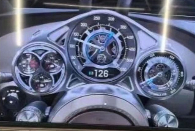 Le compteur est magnifique avec les mouvements type horlogerie Vu l'échelle des km/h ça tape 450 là non ? |