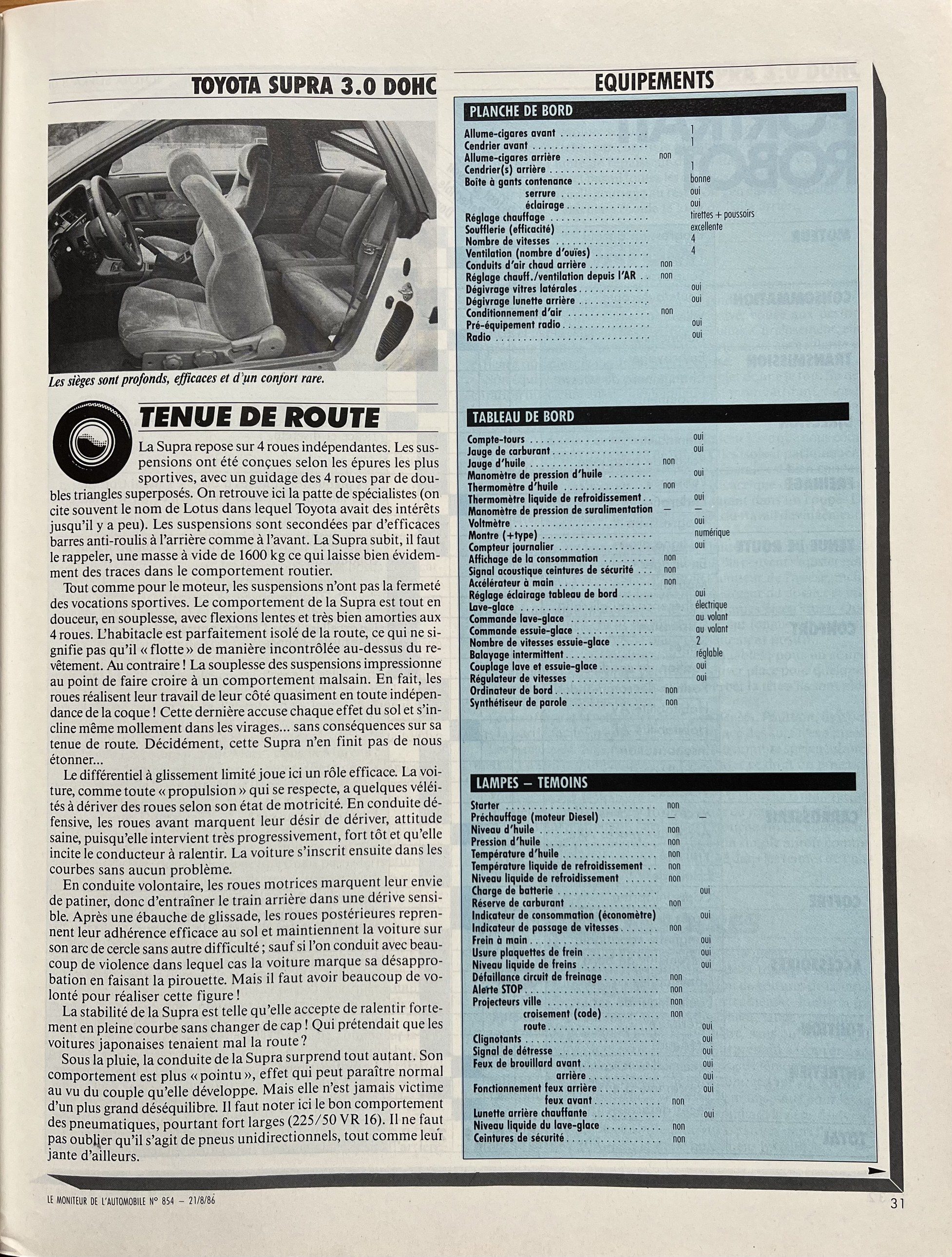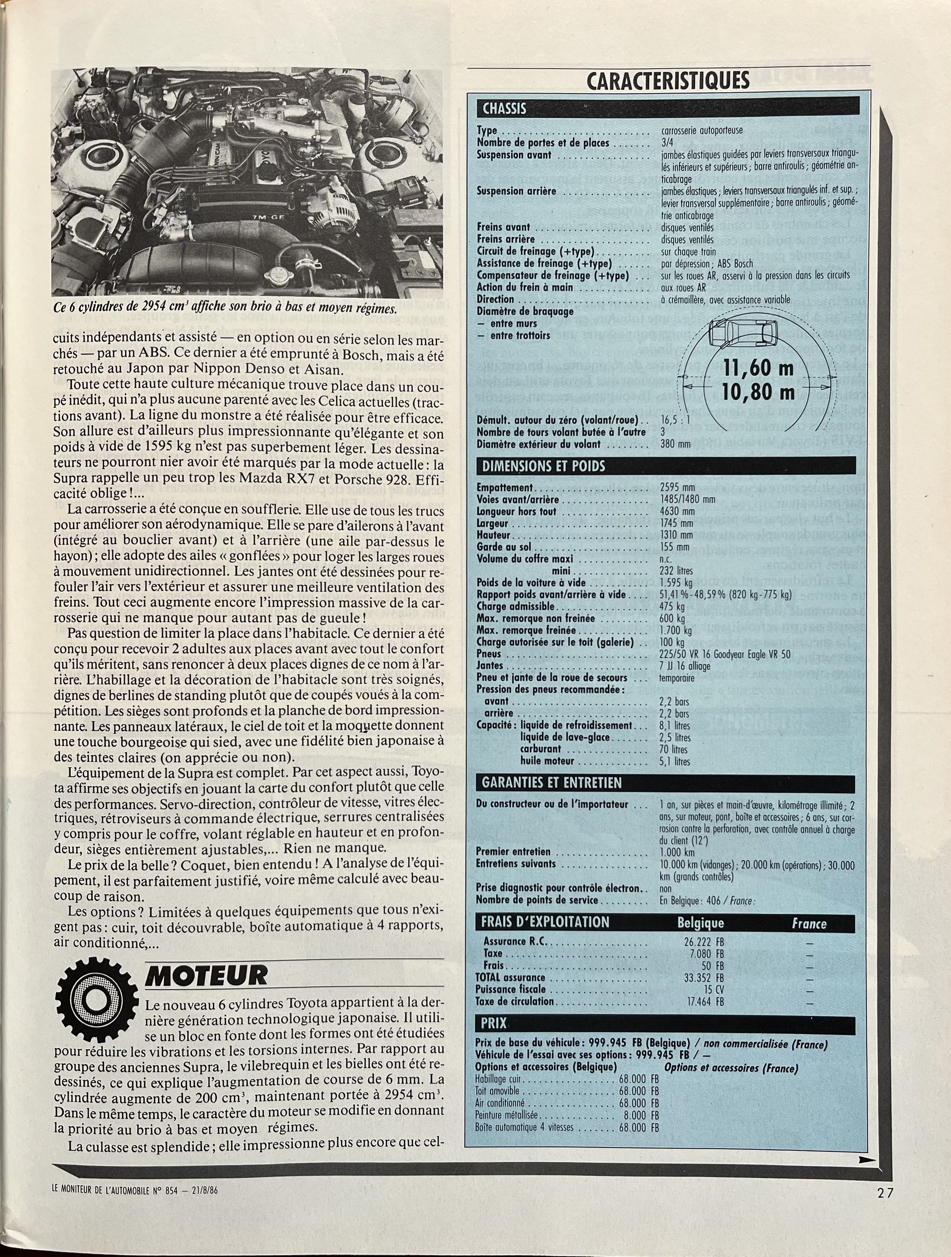 Le Moniteur de l’Automobile 854 Toyota Supra 3.0 DOHC ![]() |