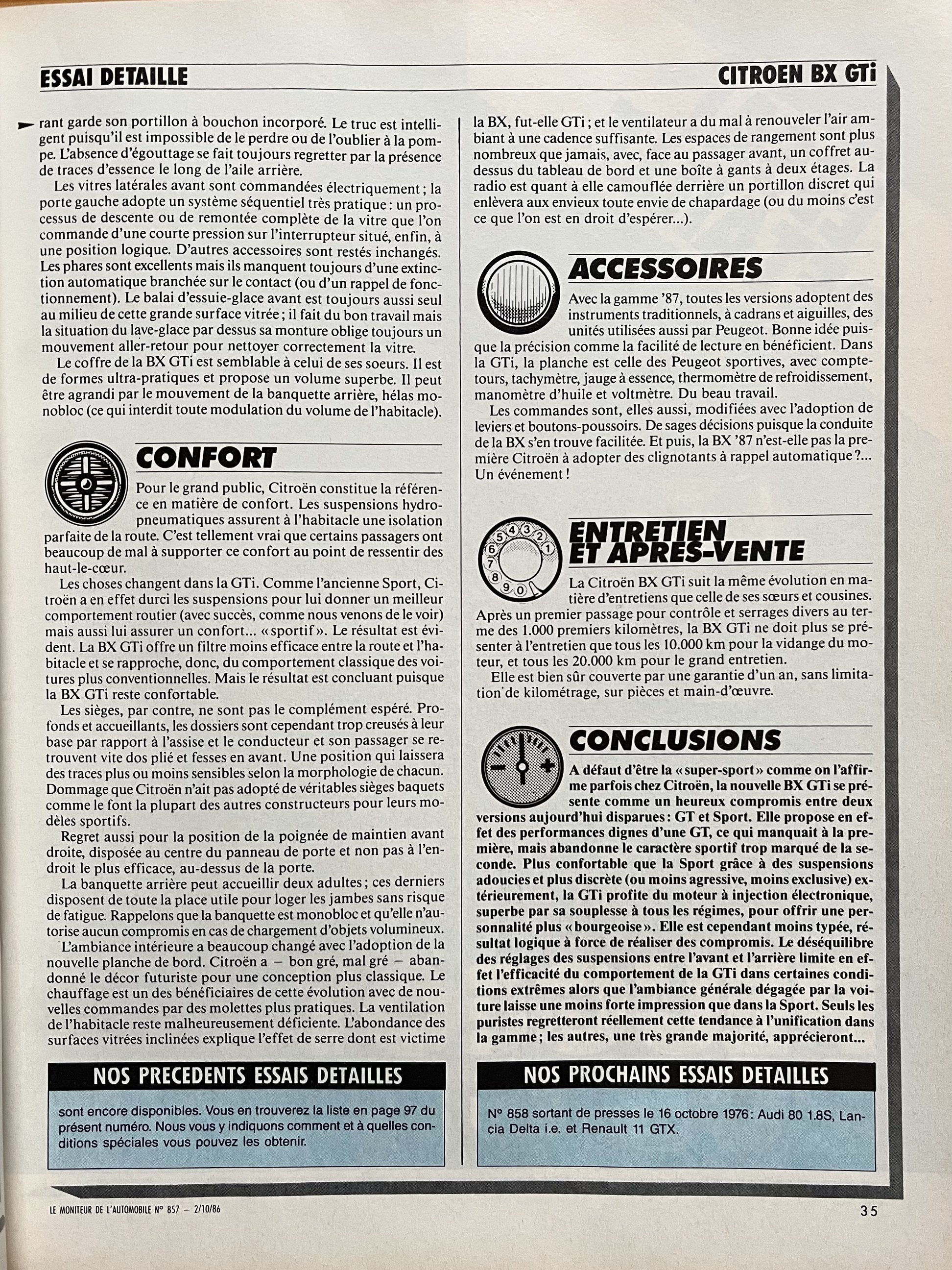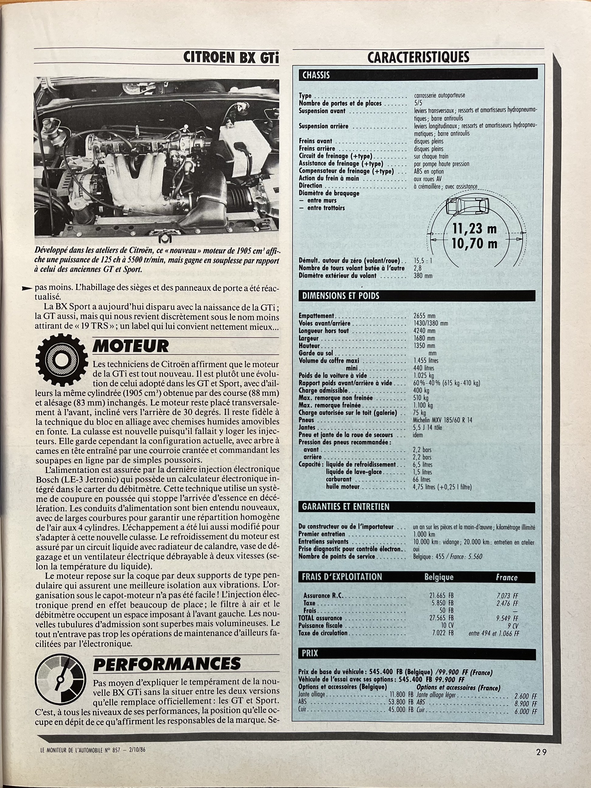 Le Moniteur de l’Automobile 857 Citroën BX GTI (205 et 505 sont déjà en ligne) ![]() |