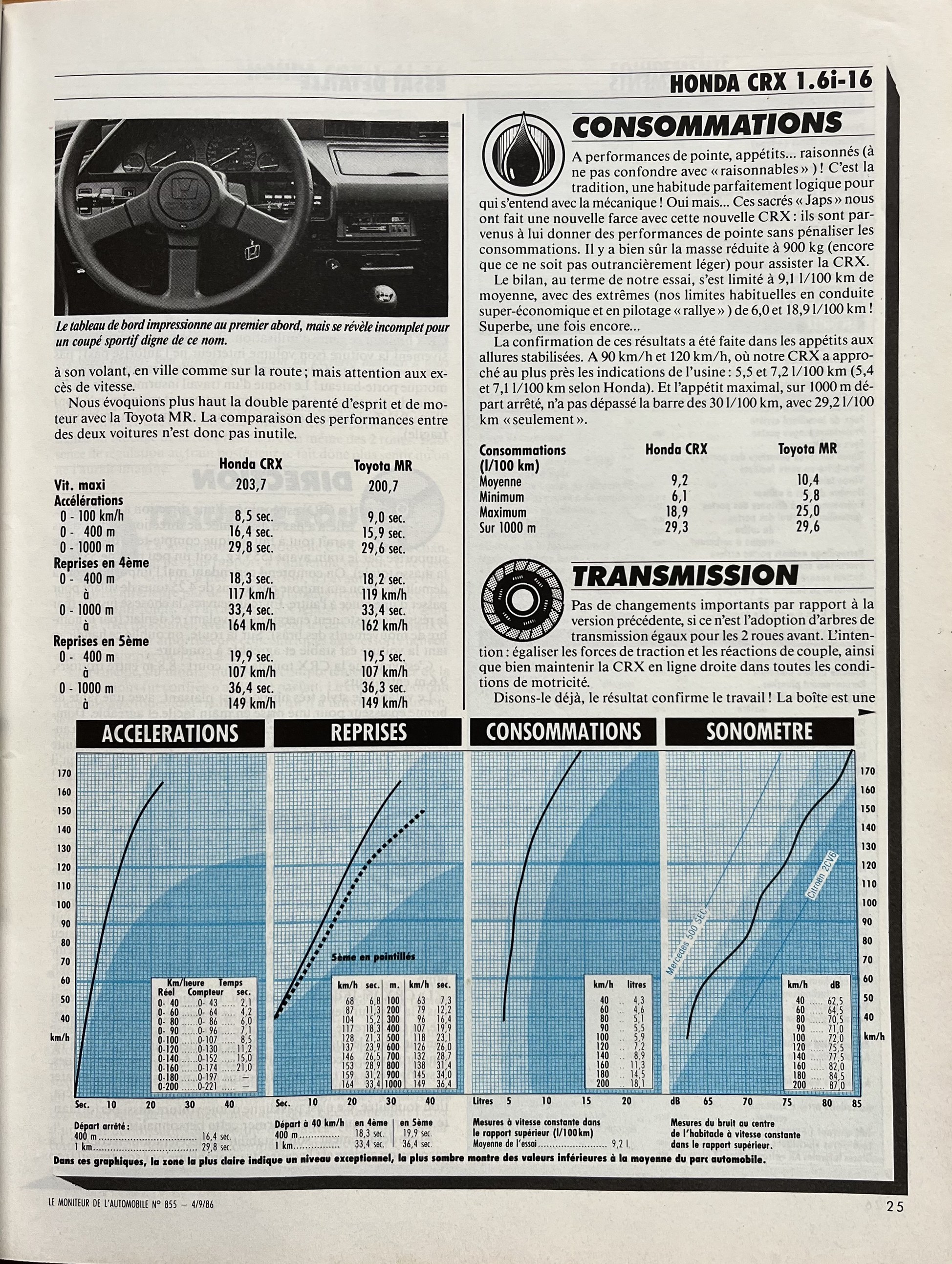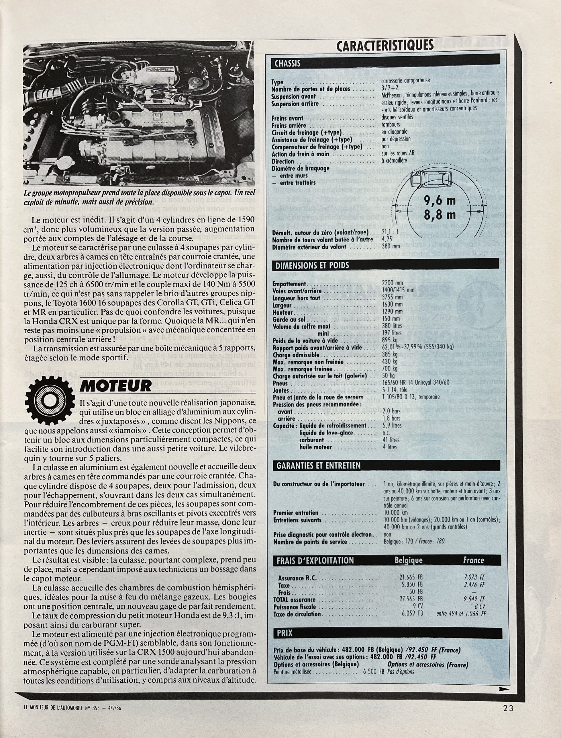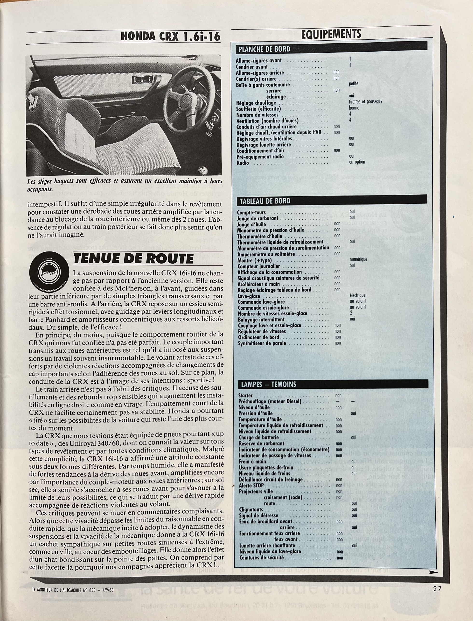 Le Moniteur de l’Automobile 855 Honda CRX 1.6i-16 ![]() |
