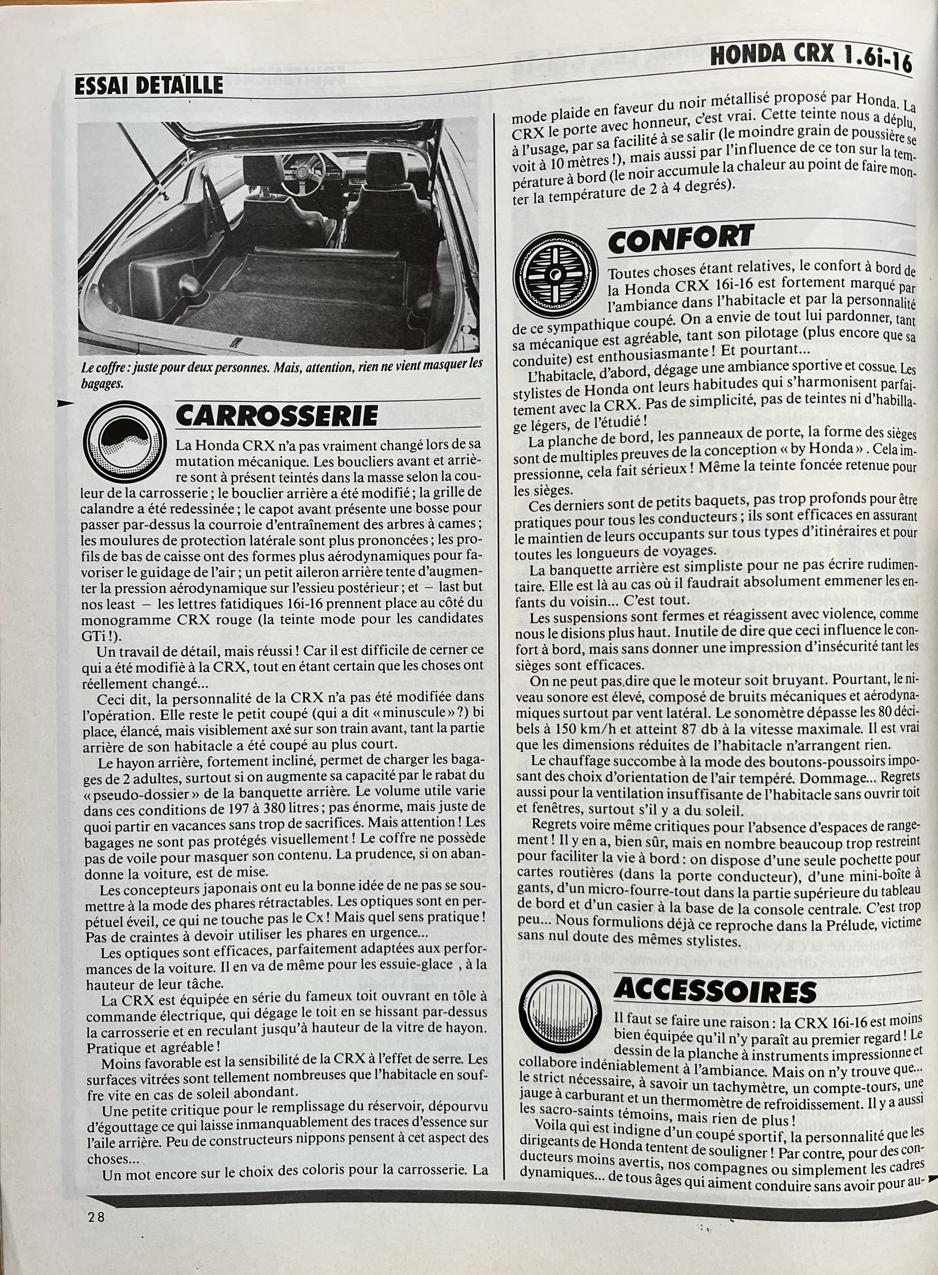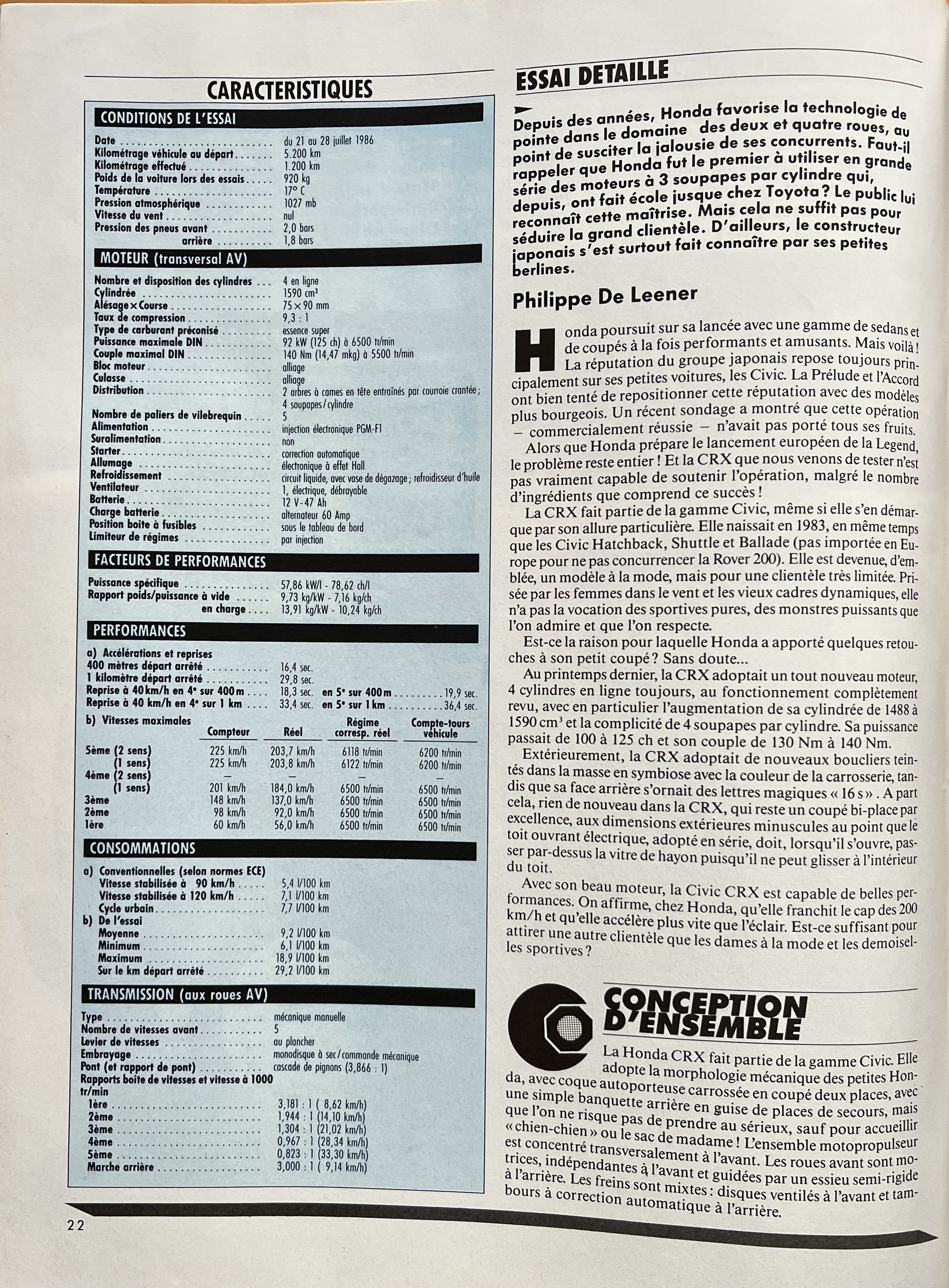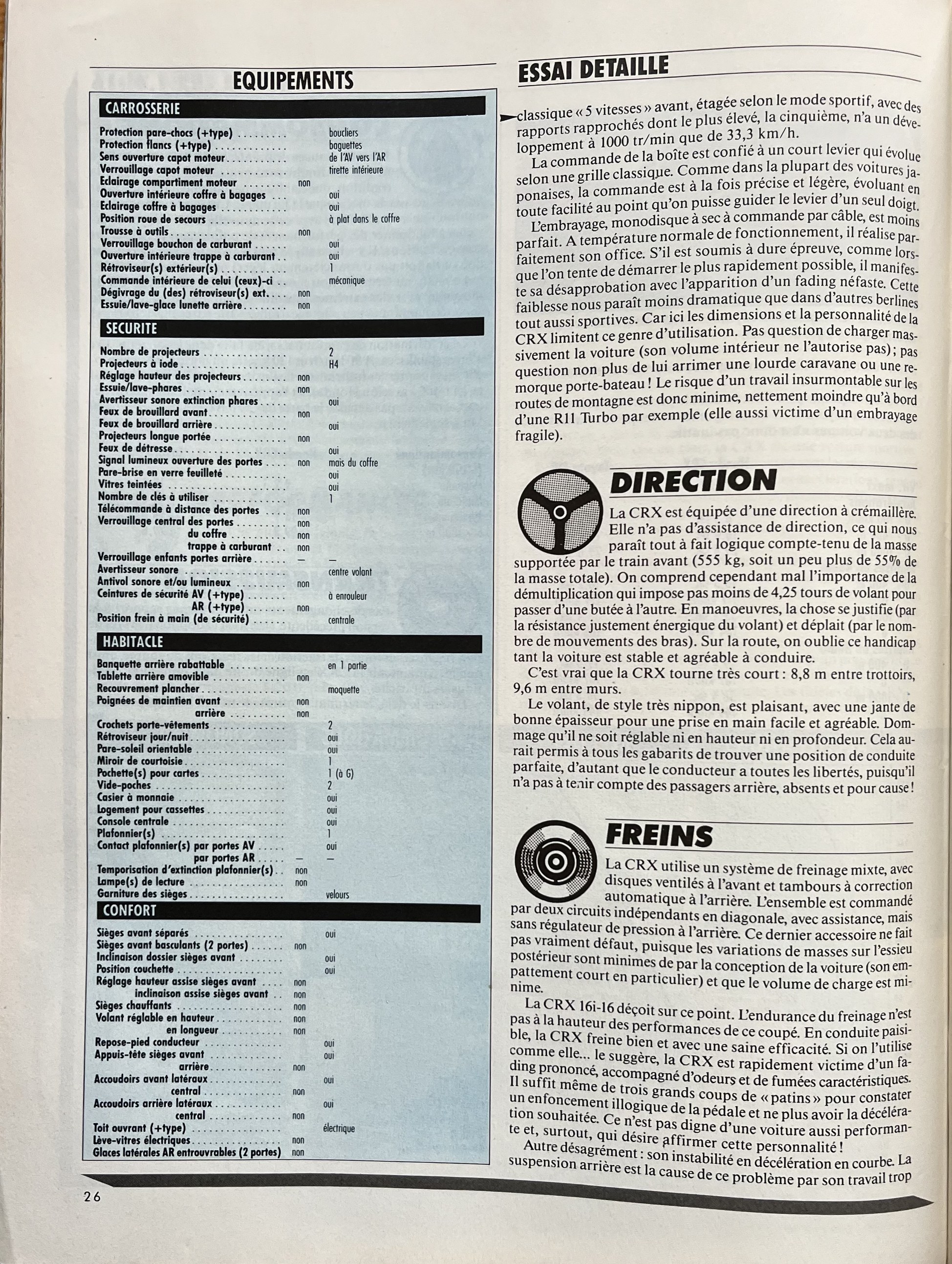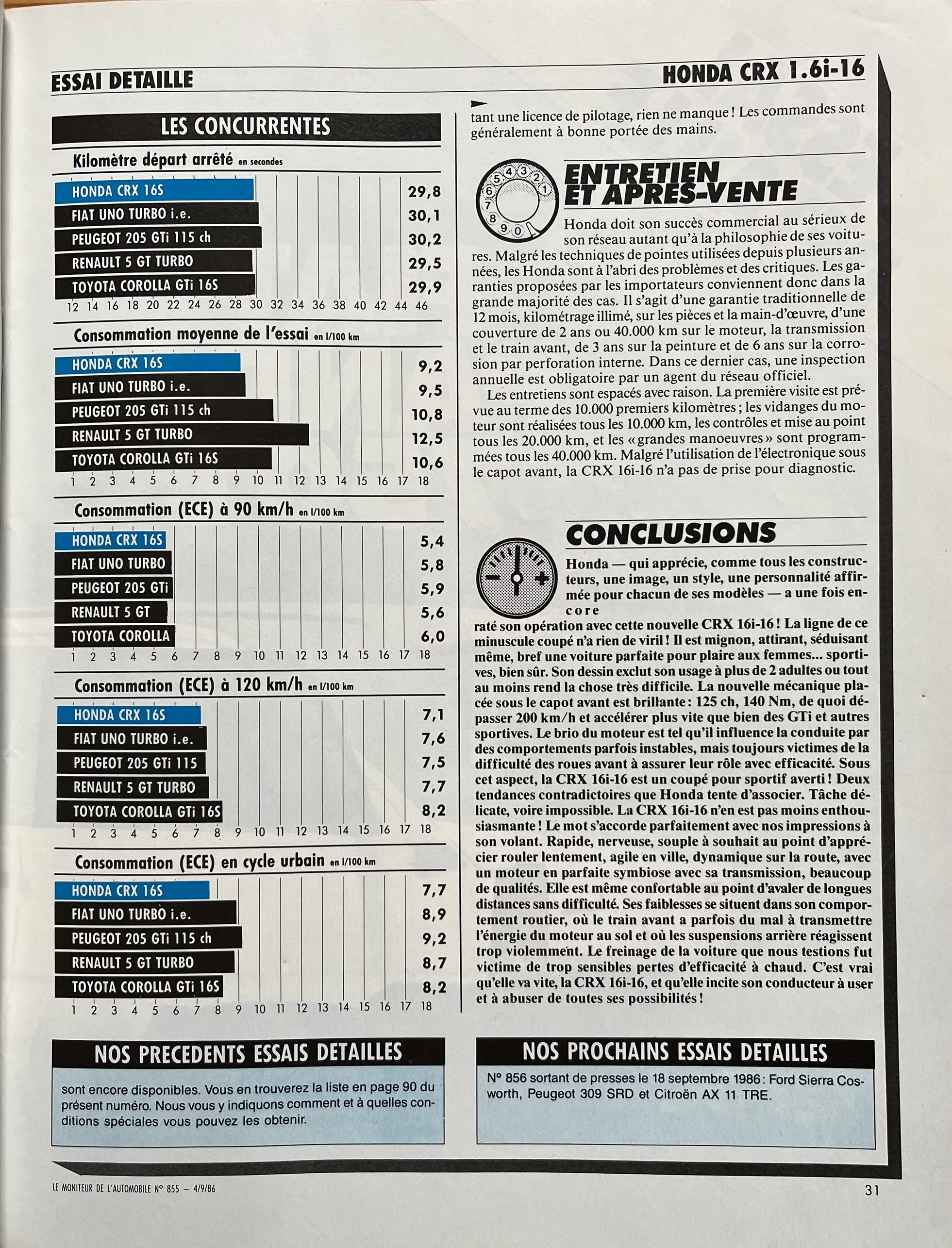 Le Moniteur de l’Automobile 855 Honda CRX 1.6i-16 ![]() |