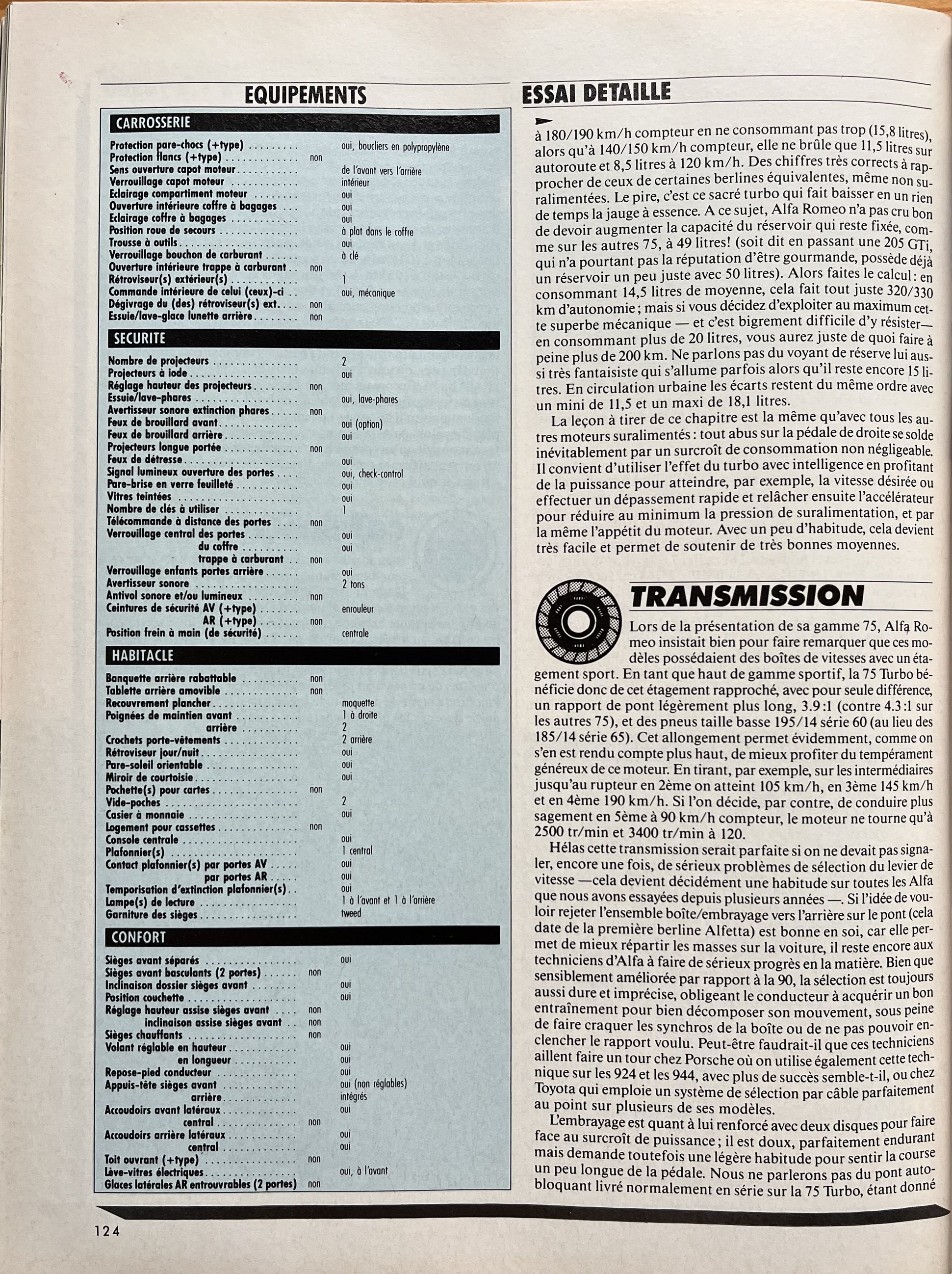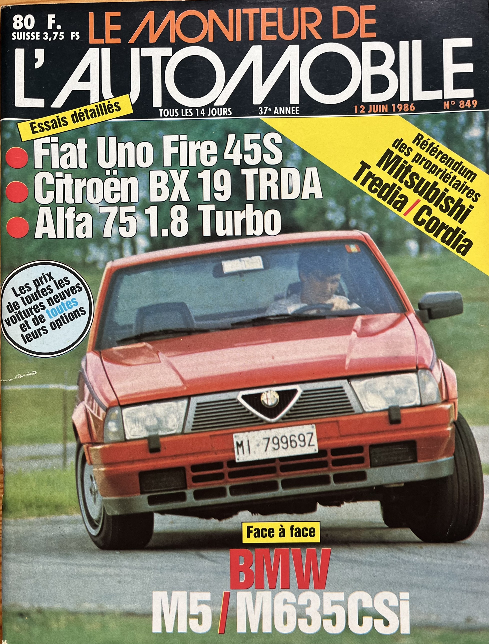 Le Moniteur de l’Automobile 849 BMW m5 - m635 csi Citroën Bx 19 Trd automatique Alfa Romeo 75 1.8 turbo ![]() |