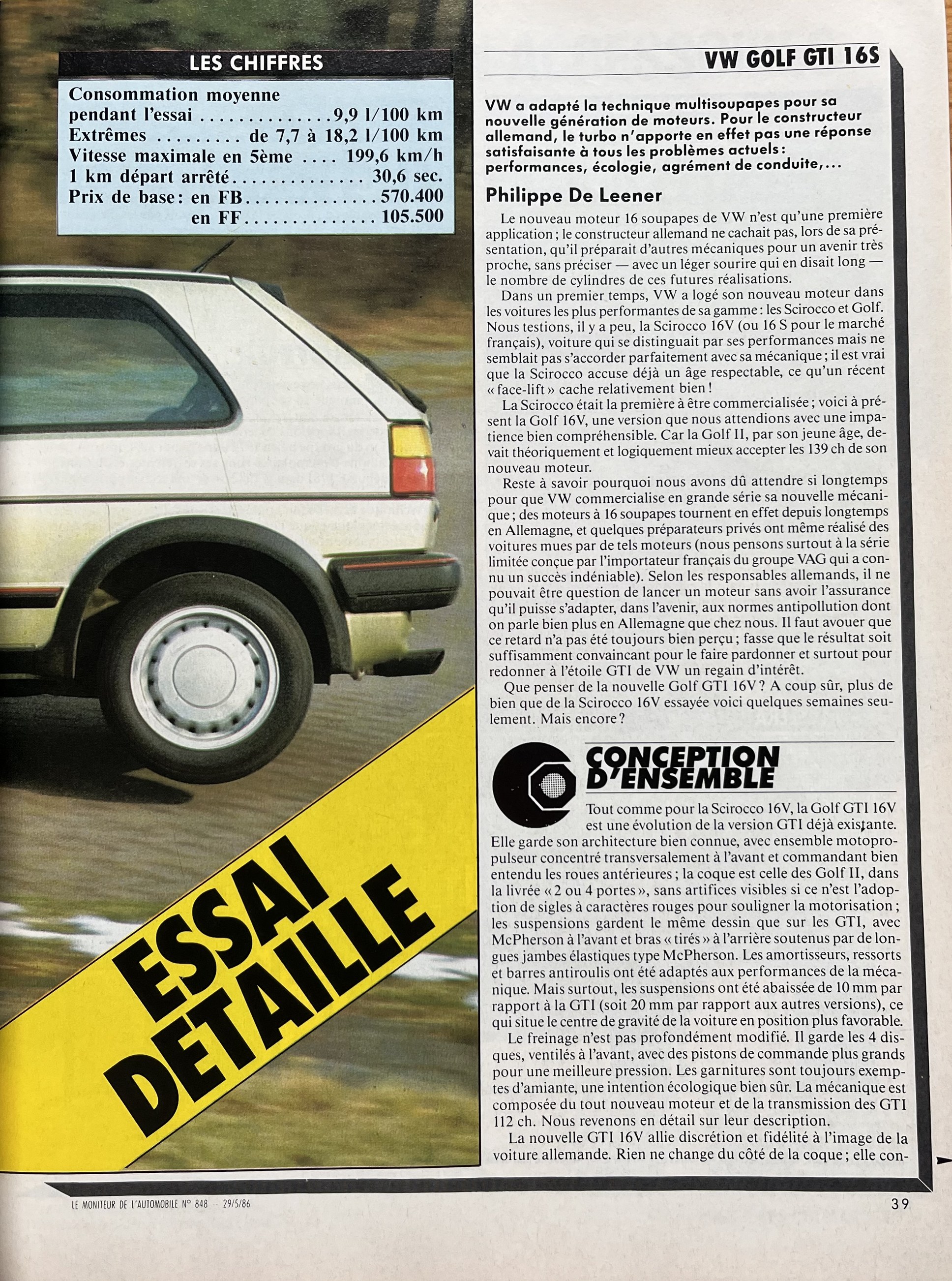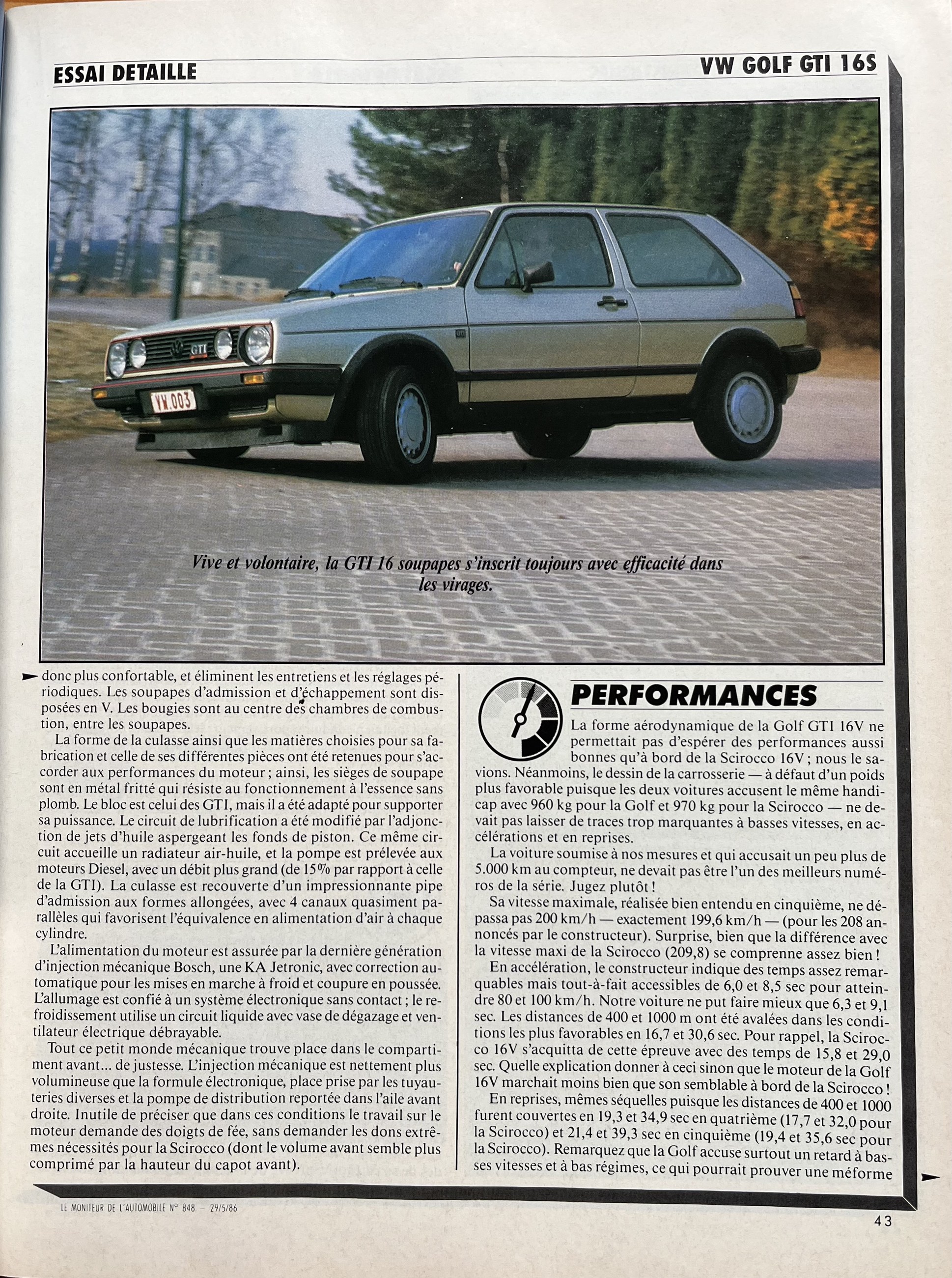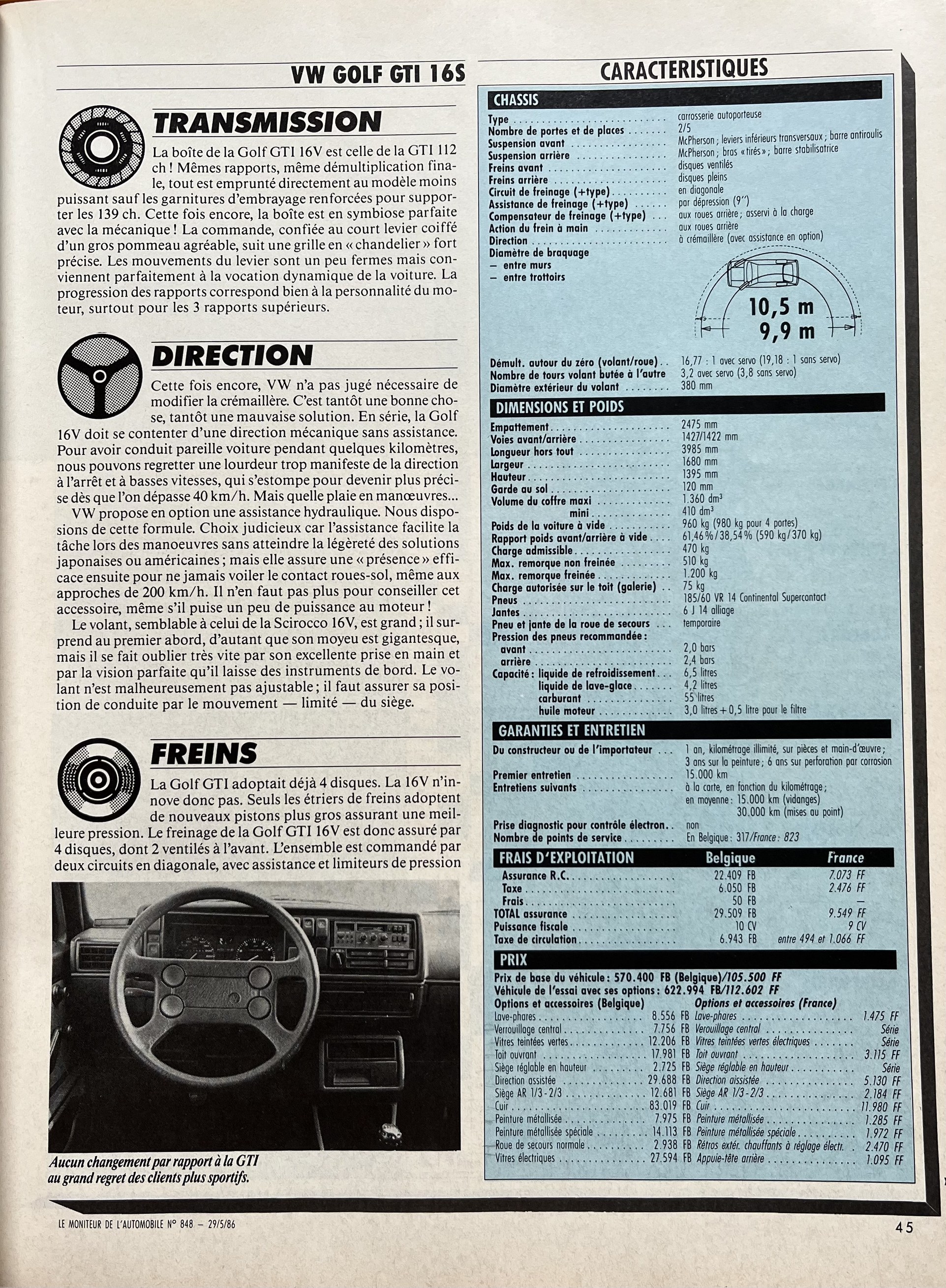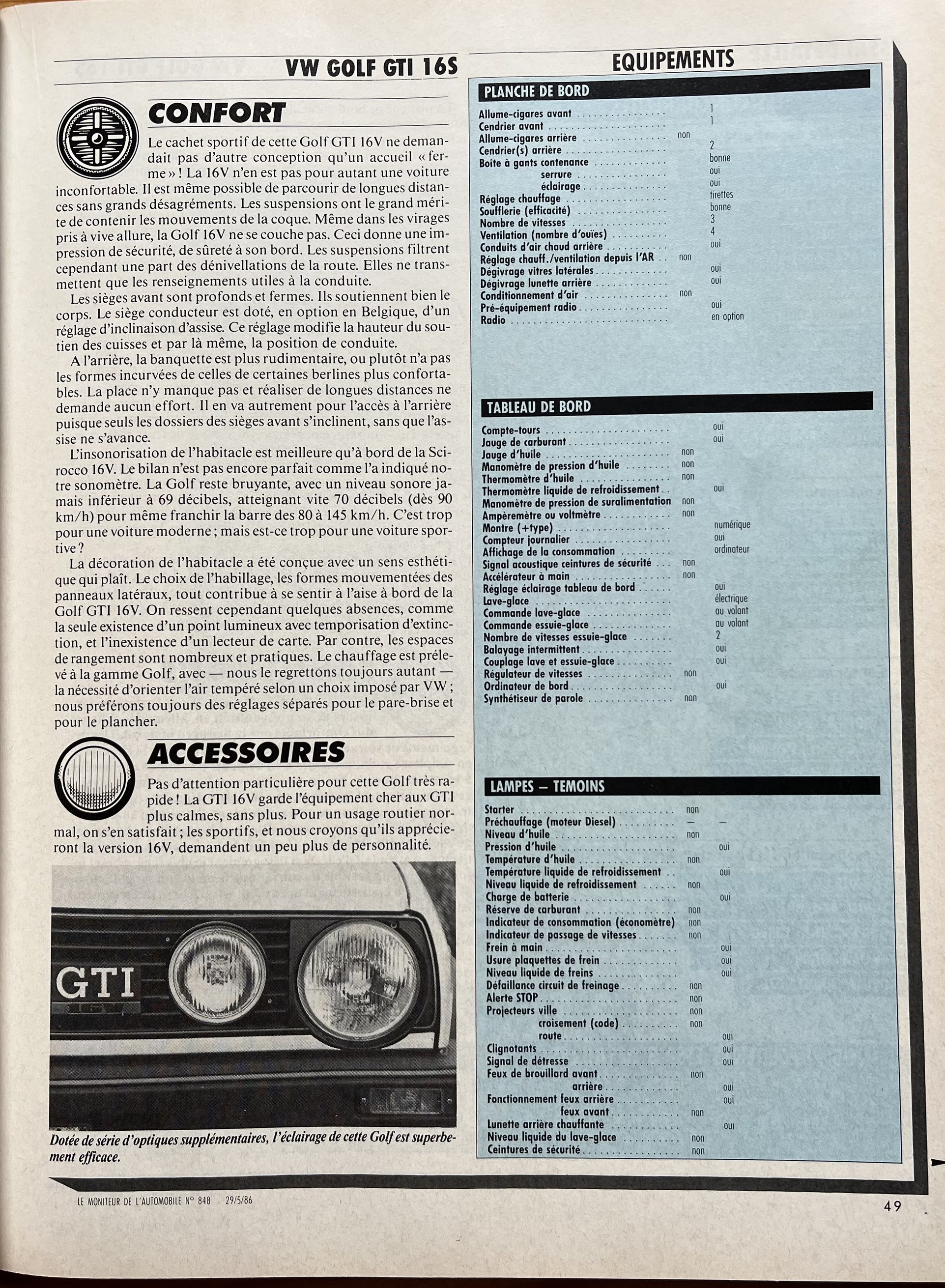 Le Moniteur de l’Automobile 848 Vw Golf Gti 16s Renault 9 Turbo ![]() |