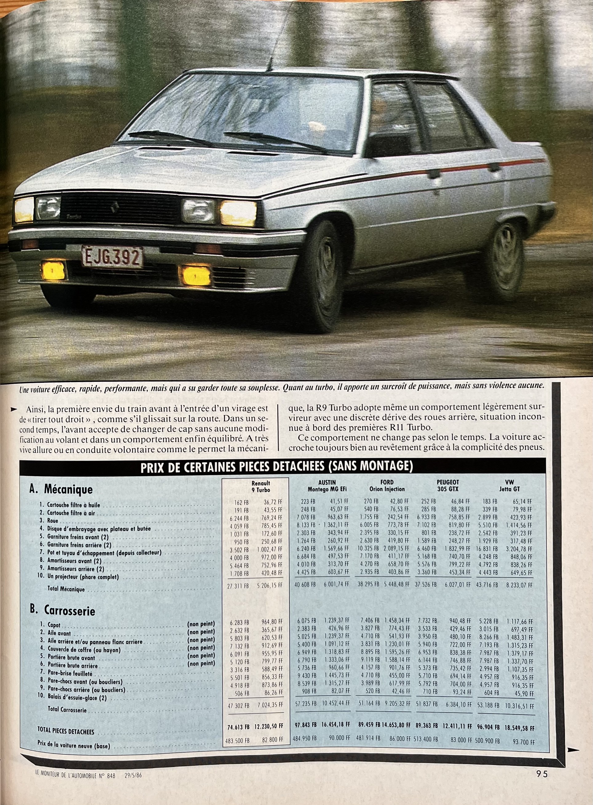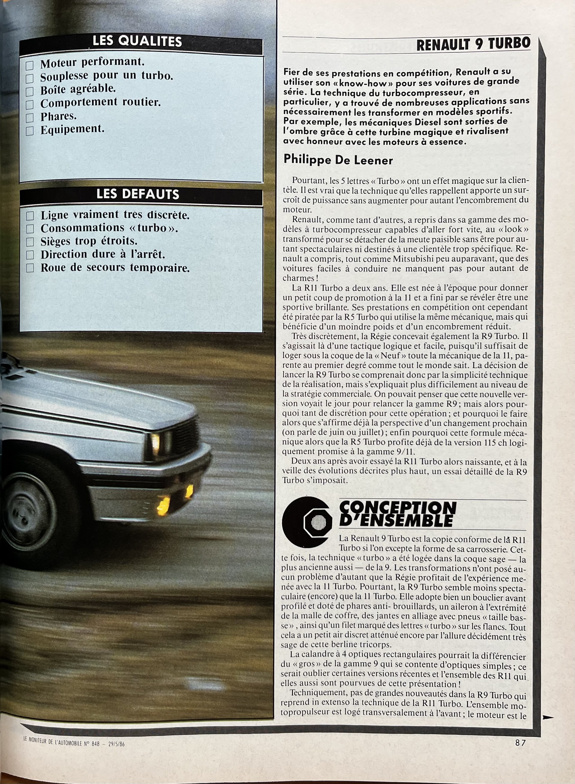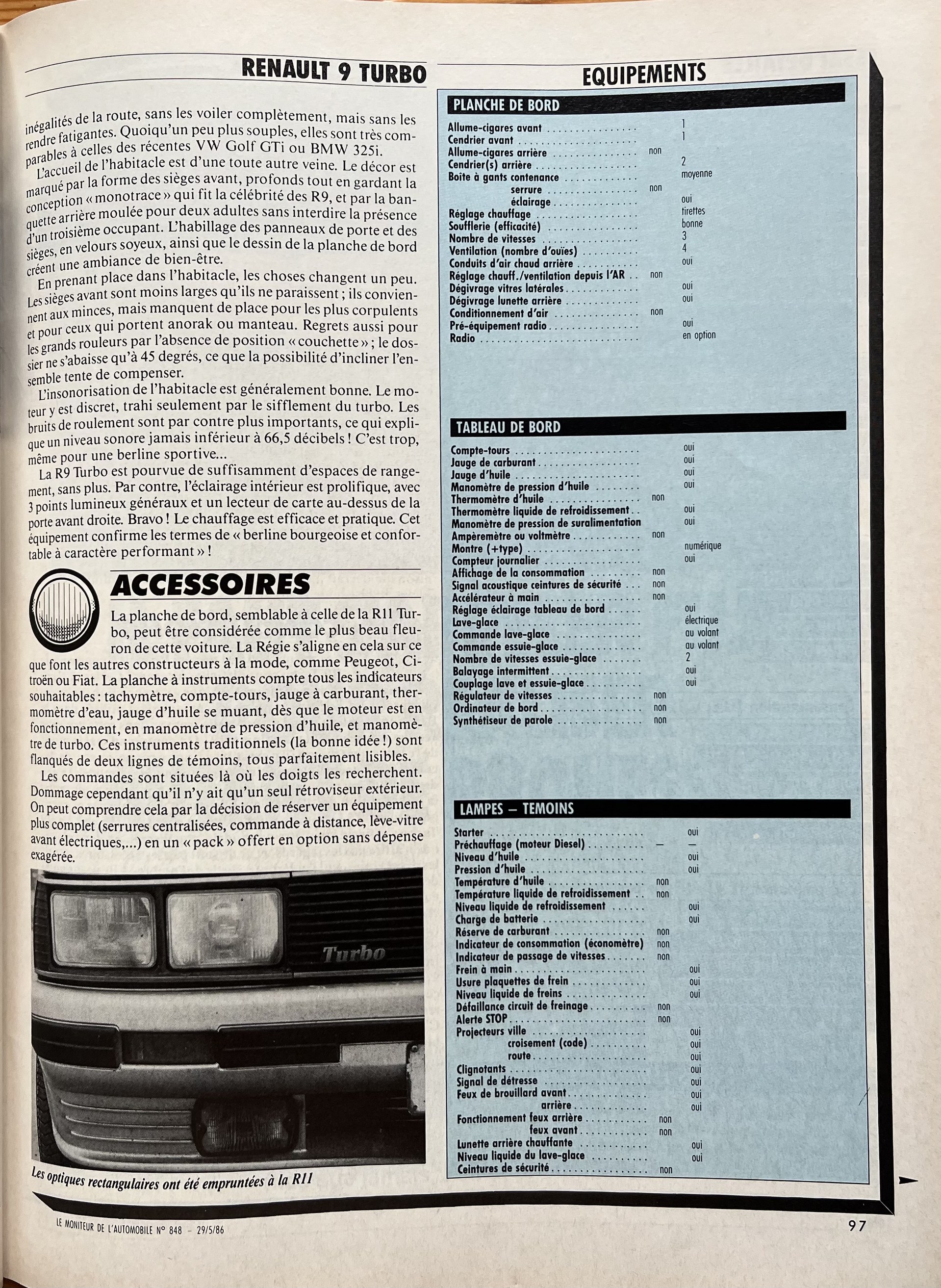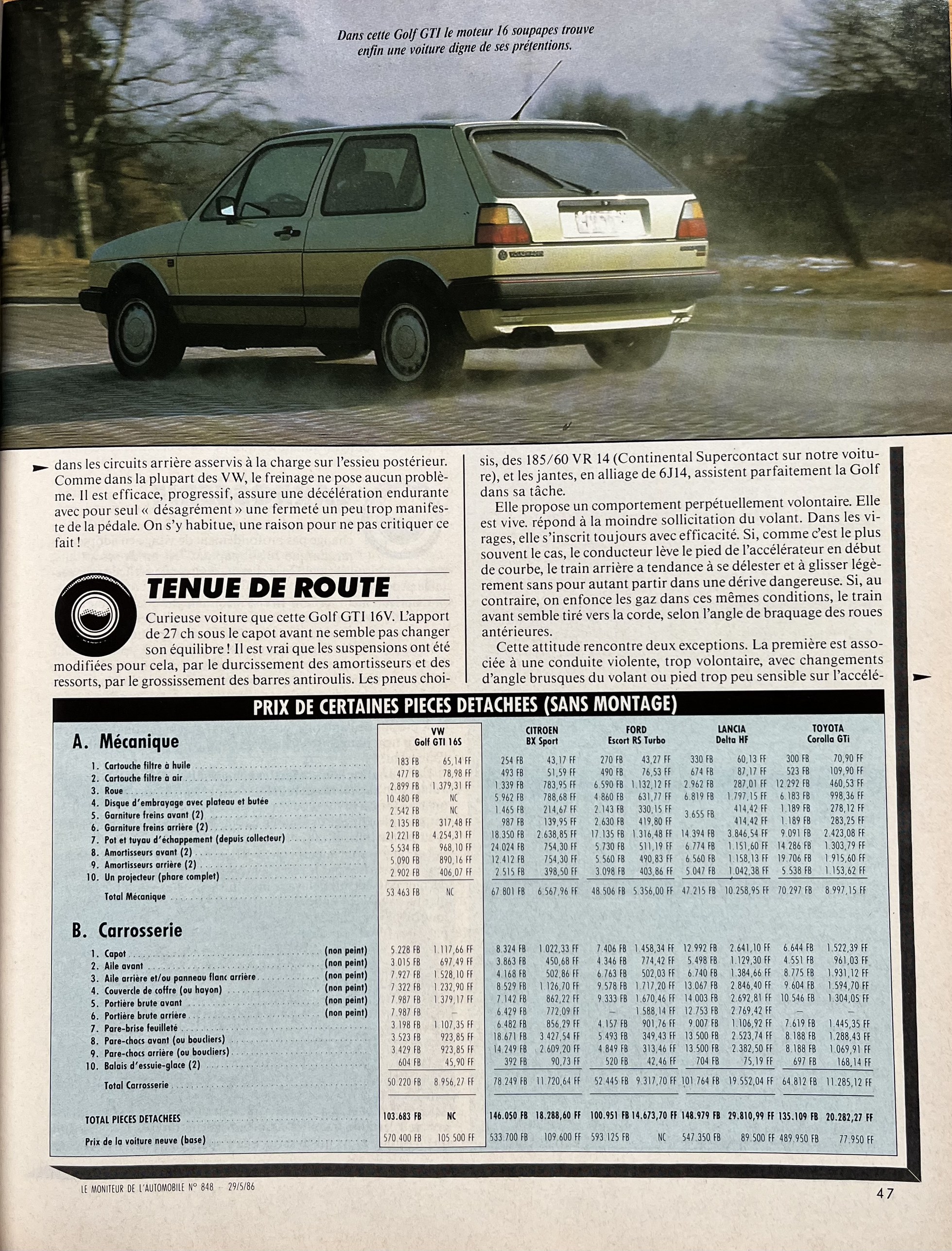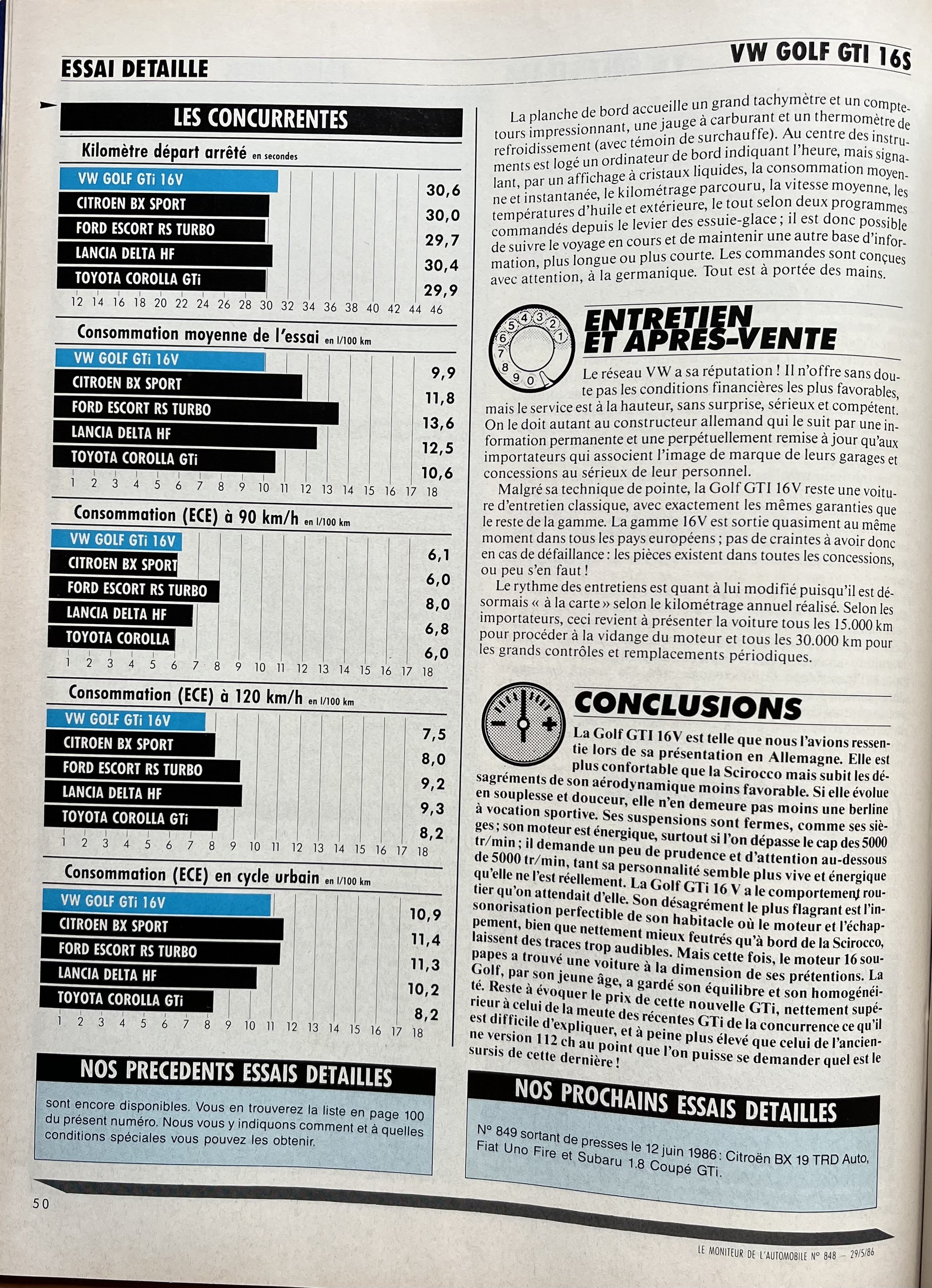 Le Moniteur de l’Automobile 848 Vw Golf Gti 16s Renault 9 Turbo ![]() |