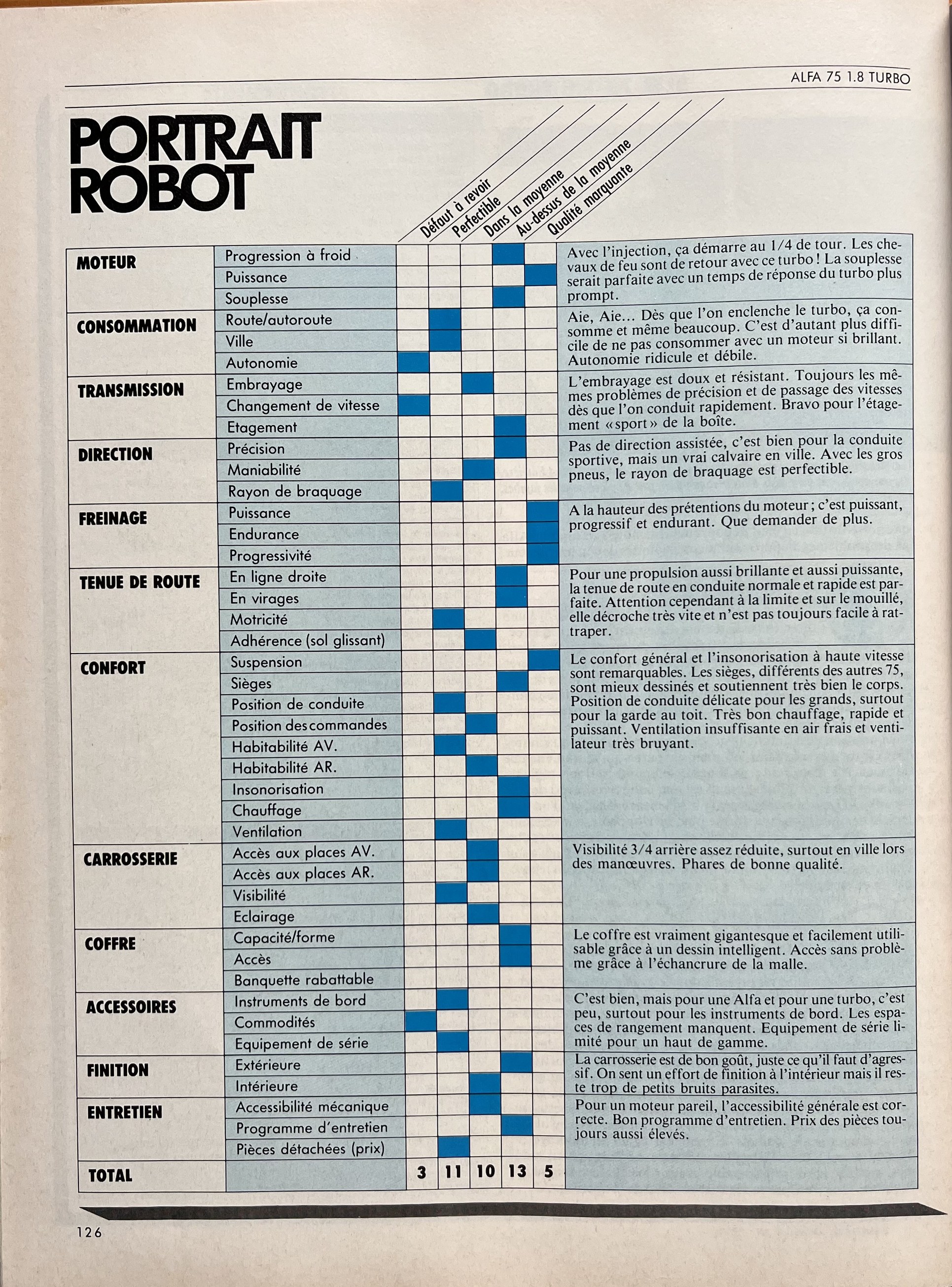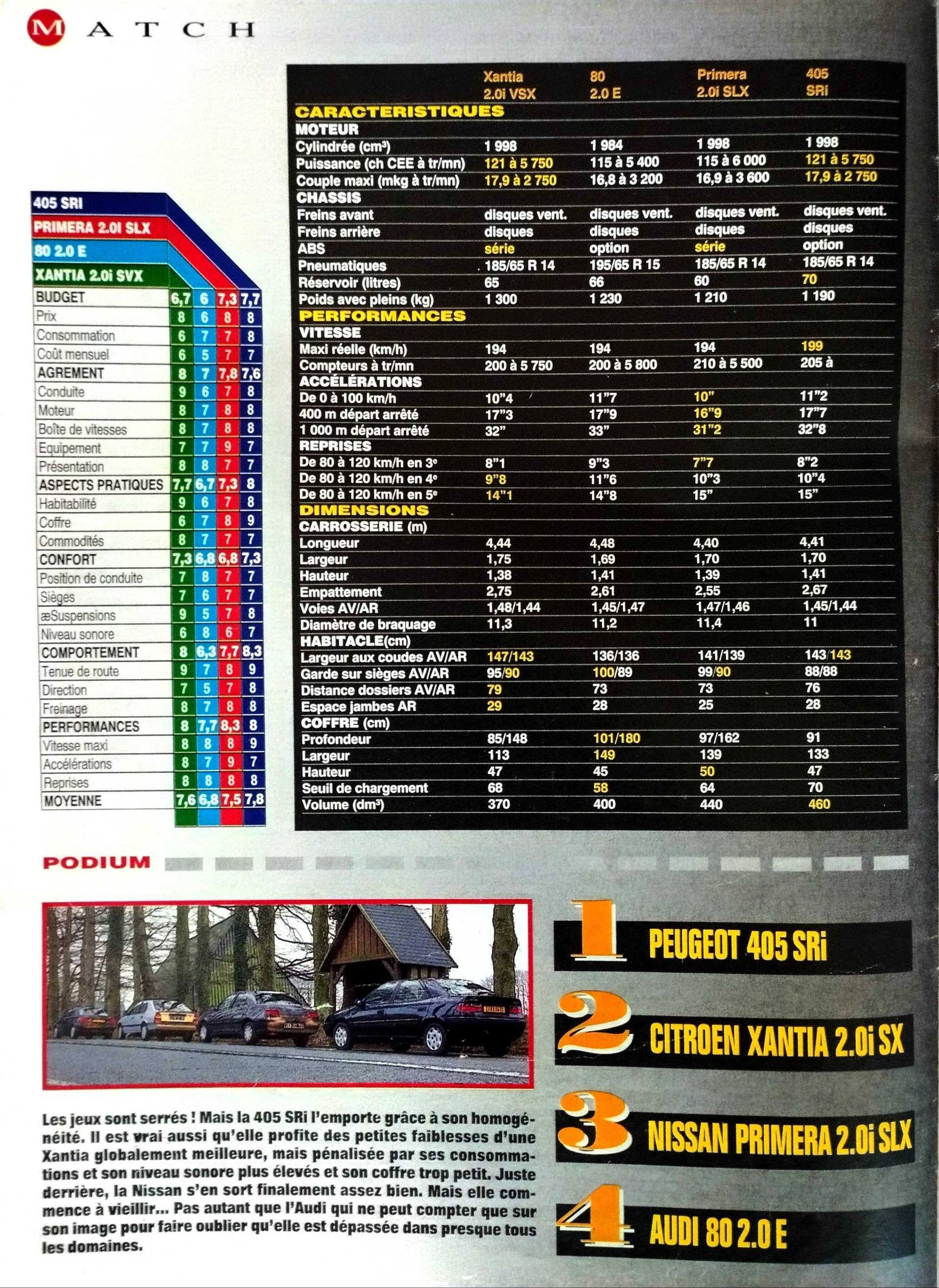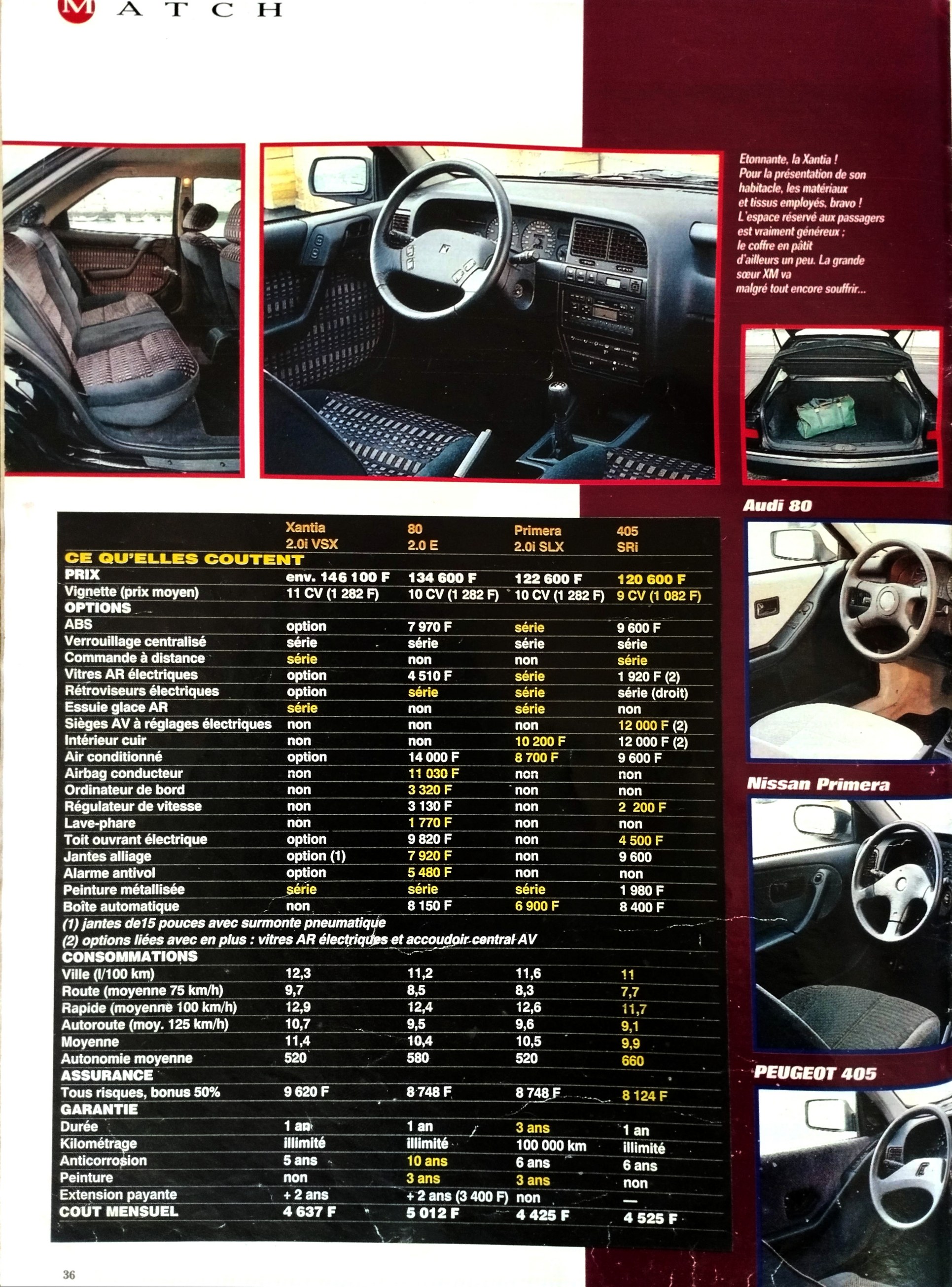 En regardant le bilan, on voit que si tu retires les perfs, la Xantia est devant partout. |