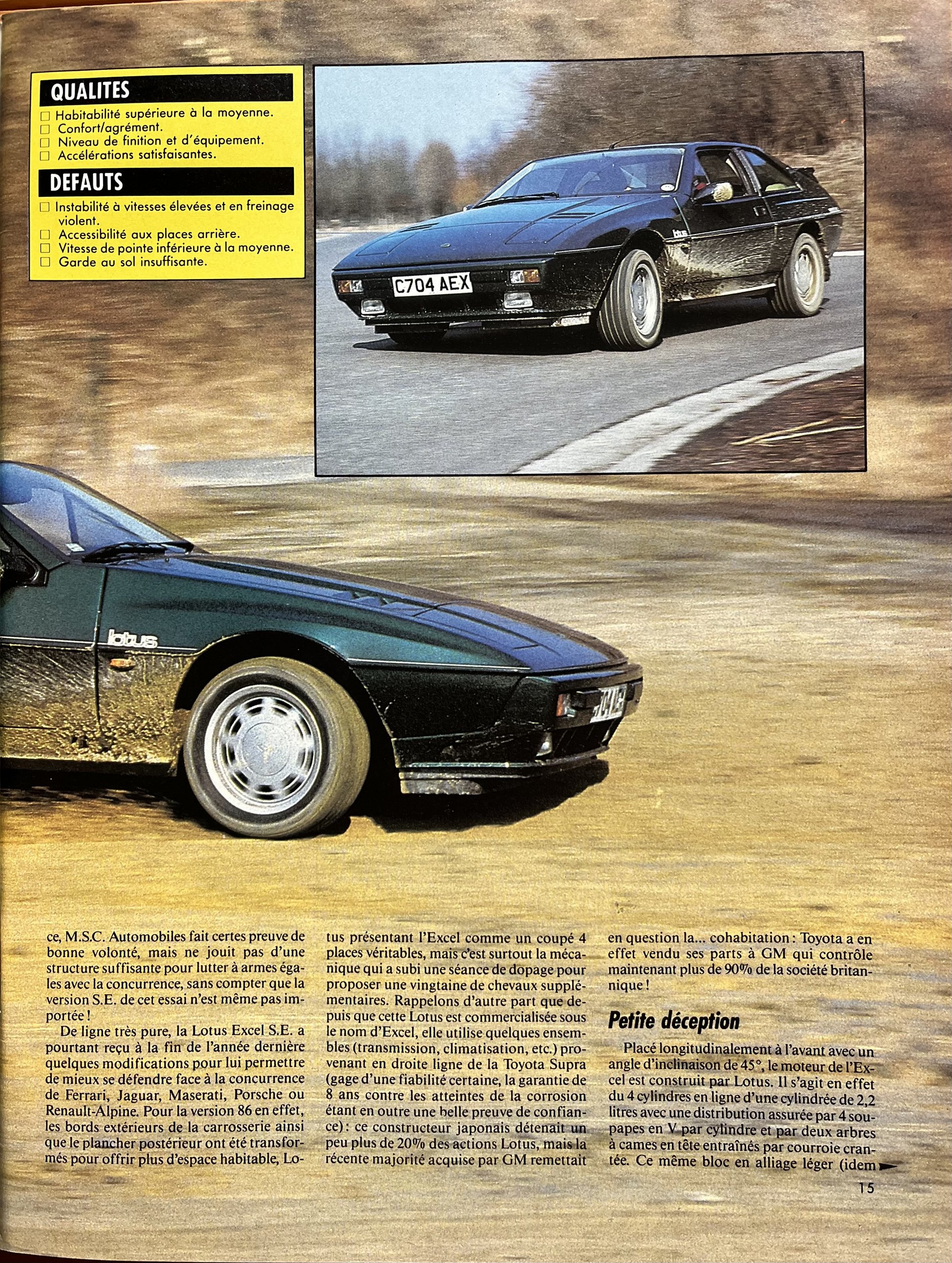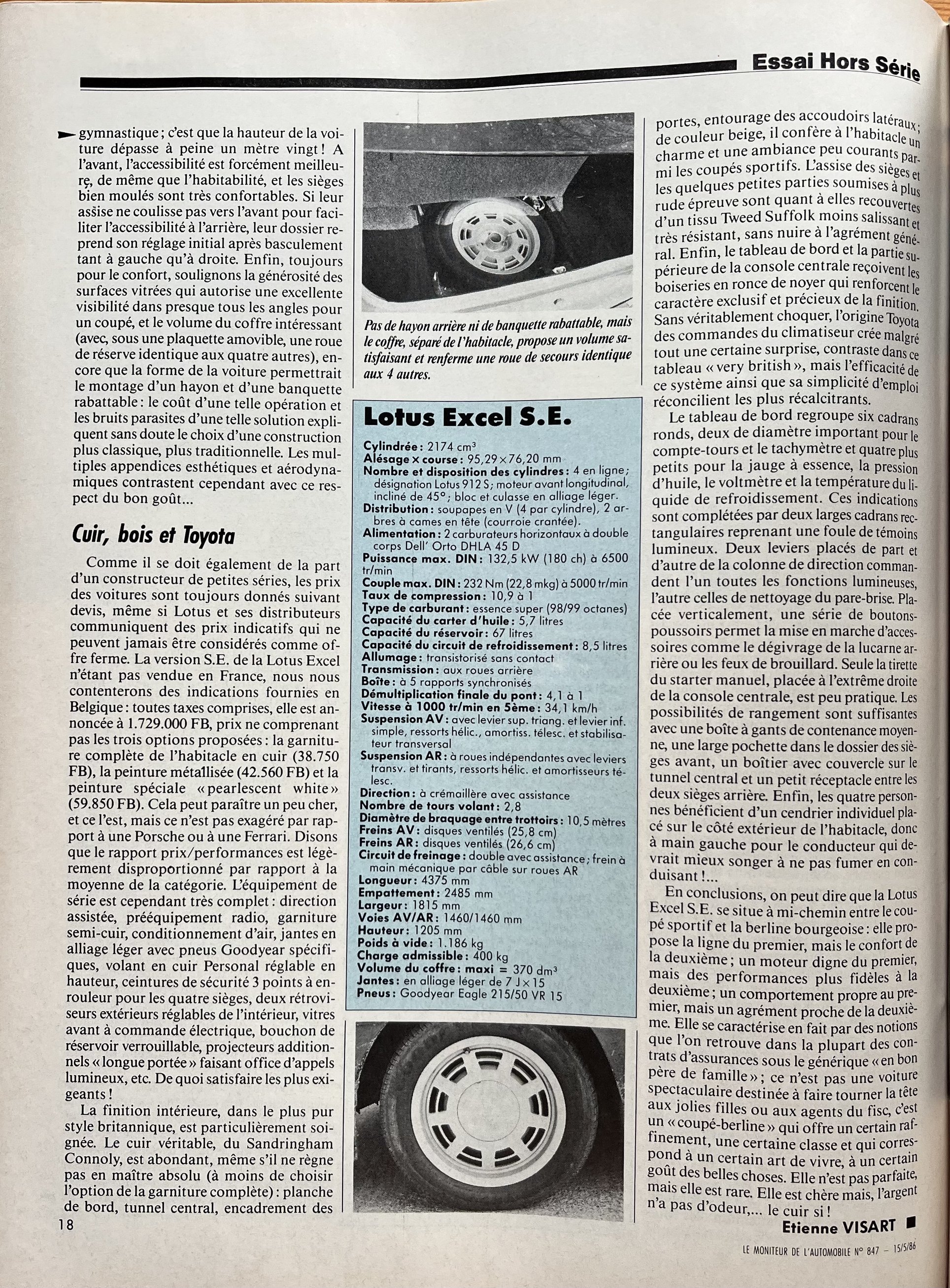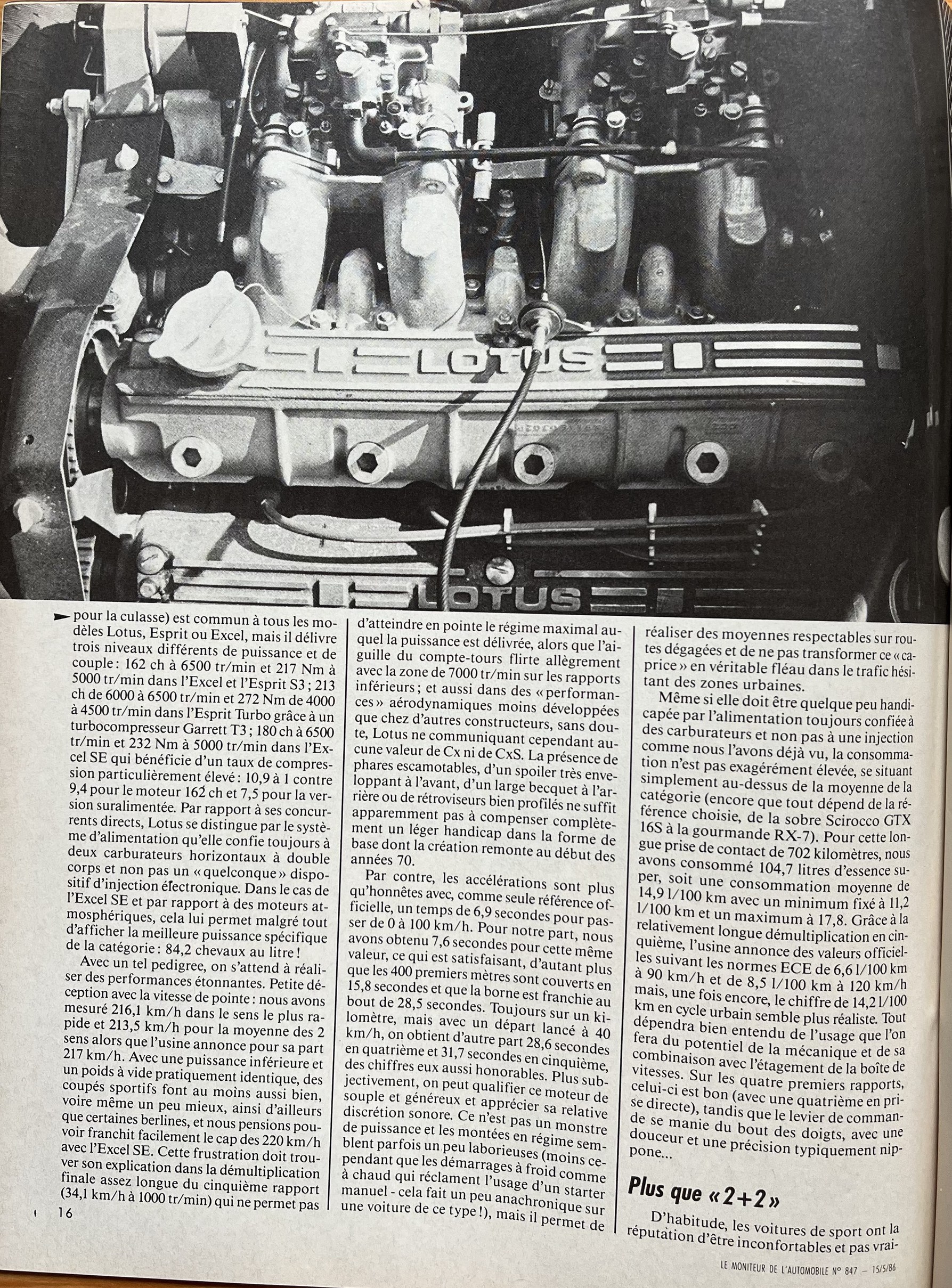Le Moniteur de l’Automobile 848 Lotus Excel s.e Saab 900 turbo 8 ![]() |