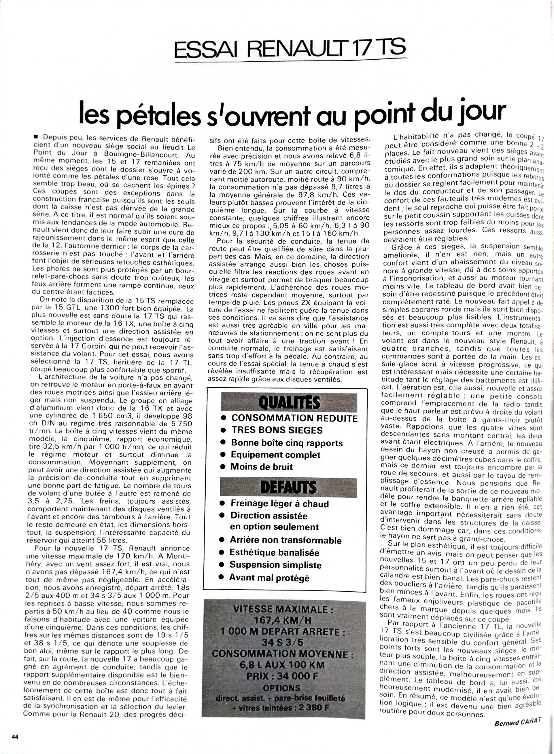 Auto-journal N°9 - 15 Mai 1976 Essai - Renault 17 TS ![]() |