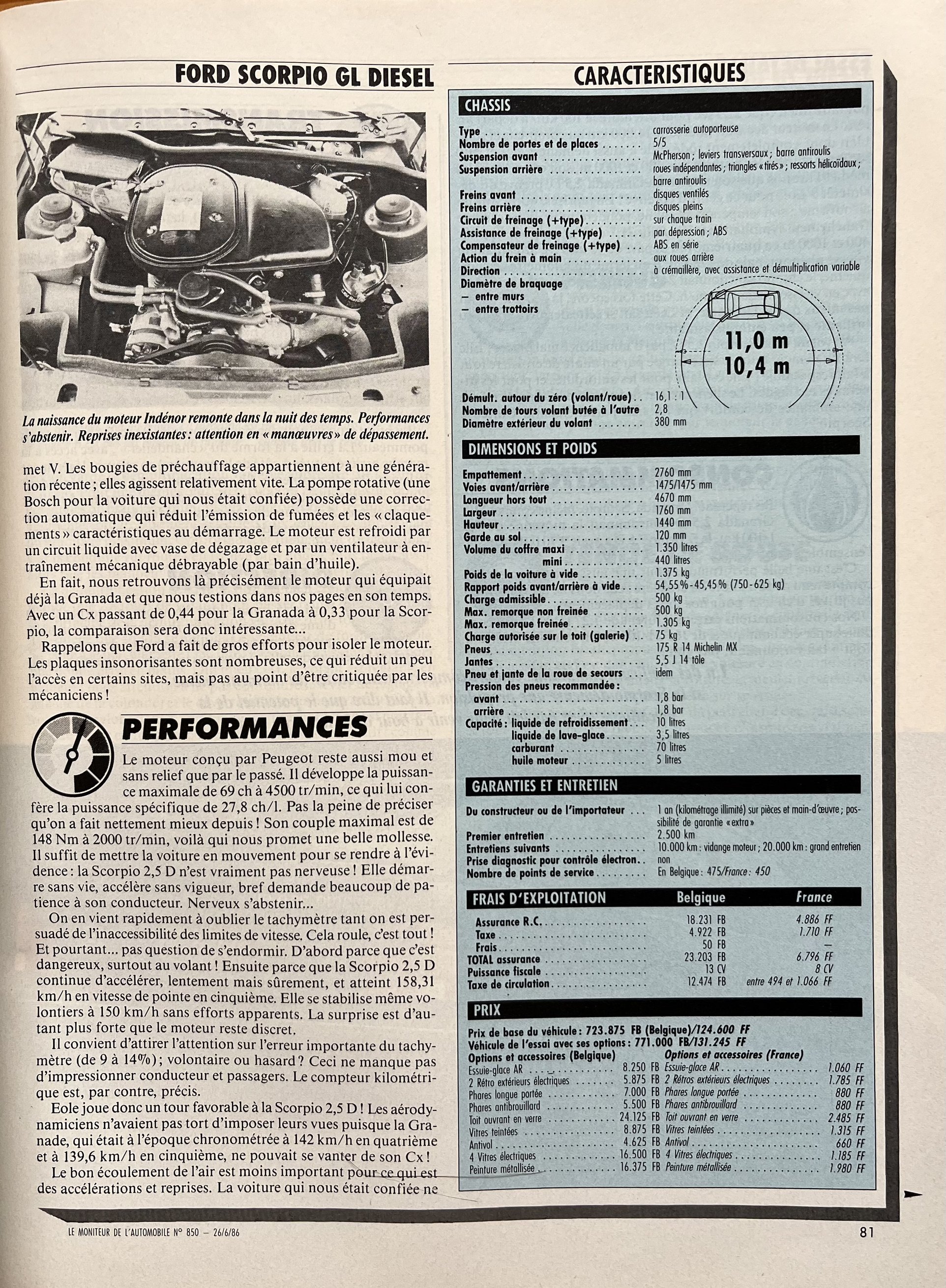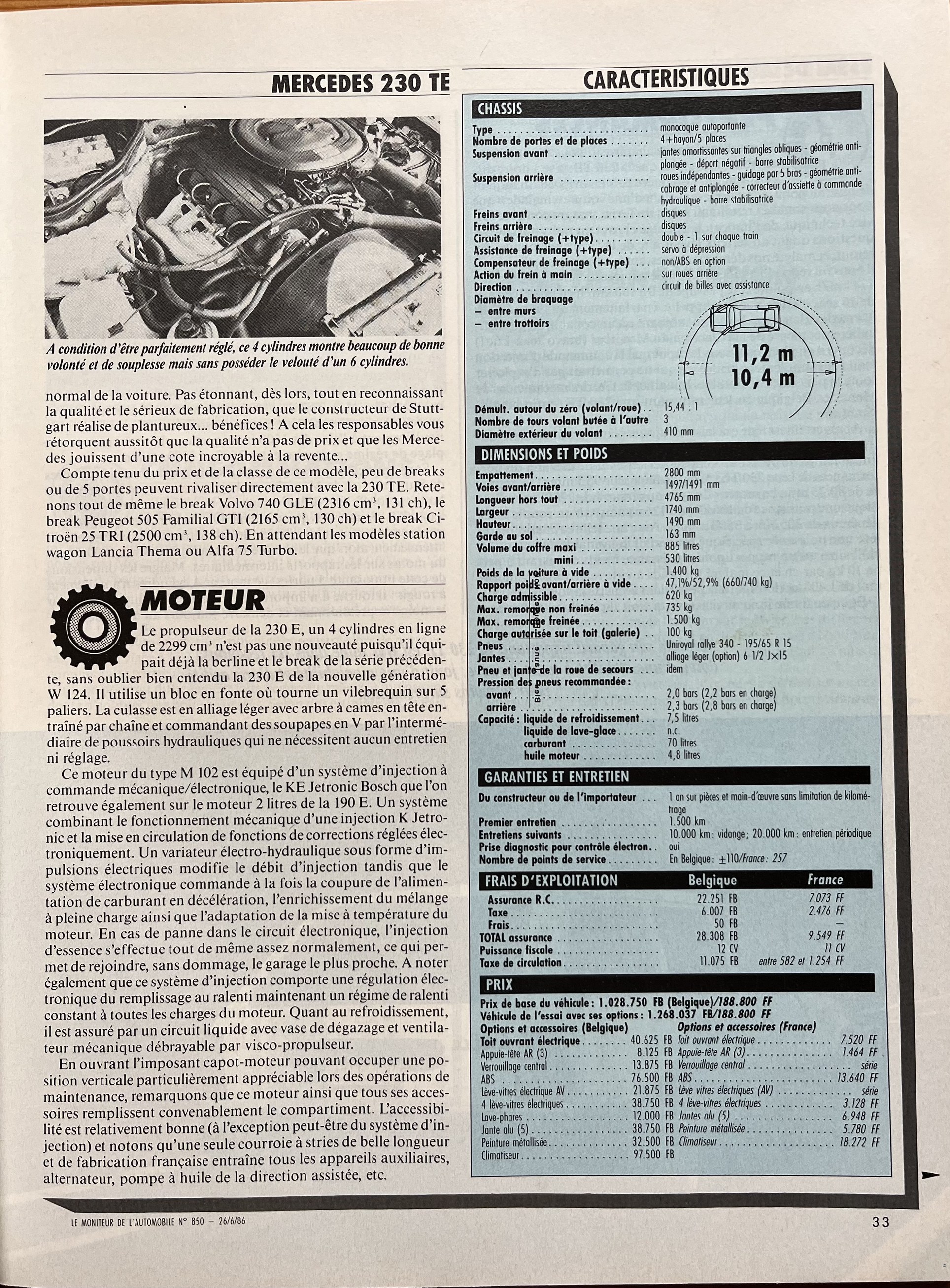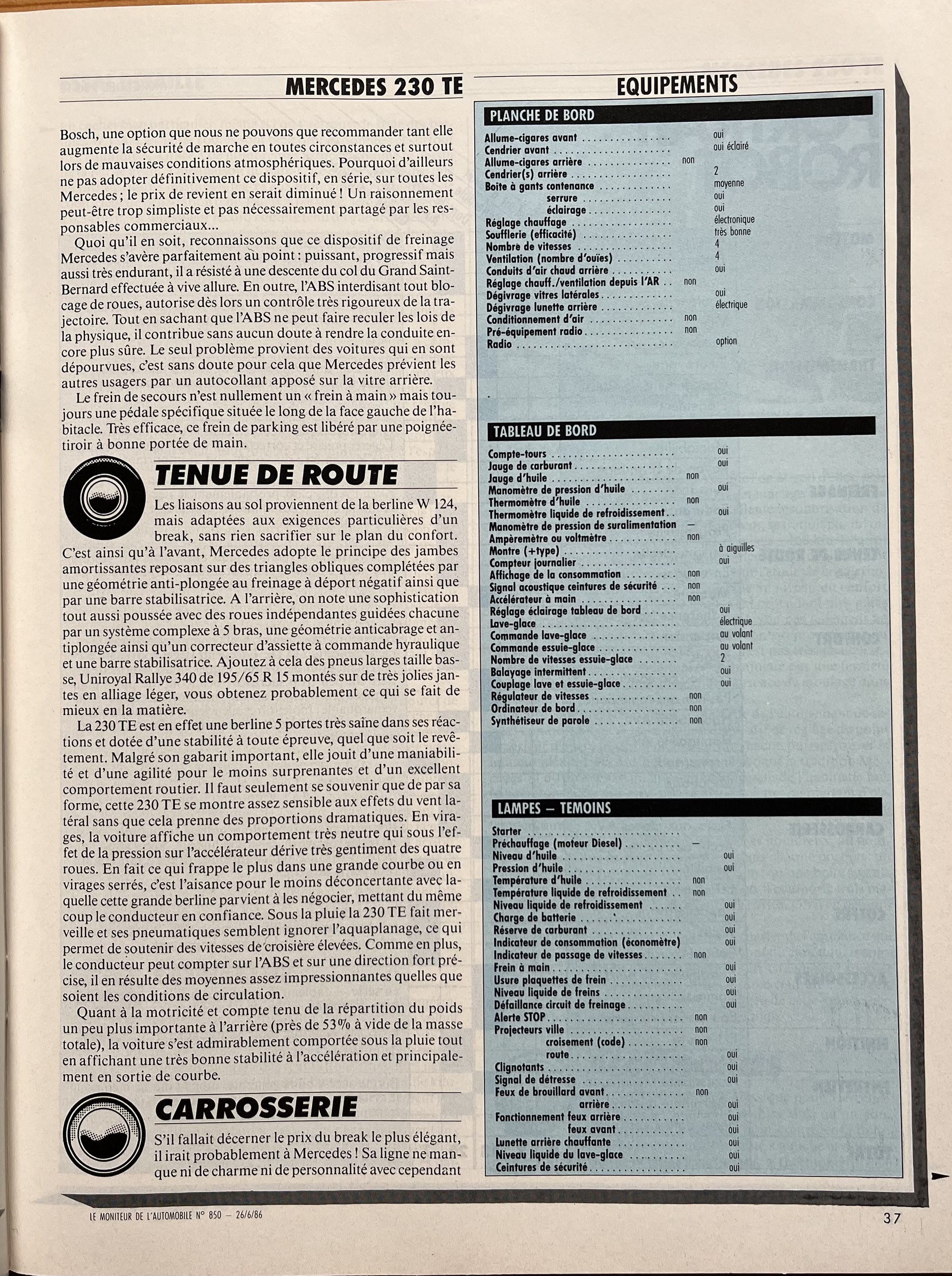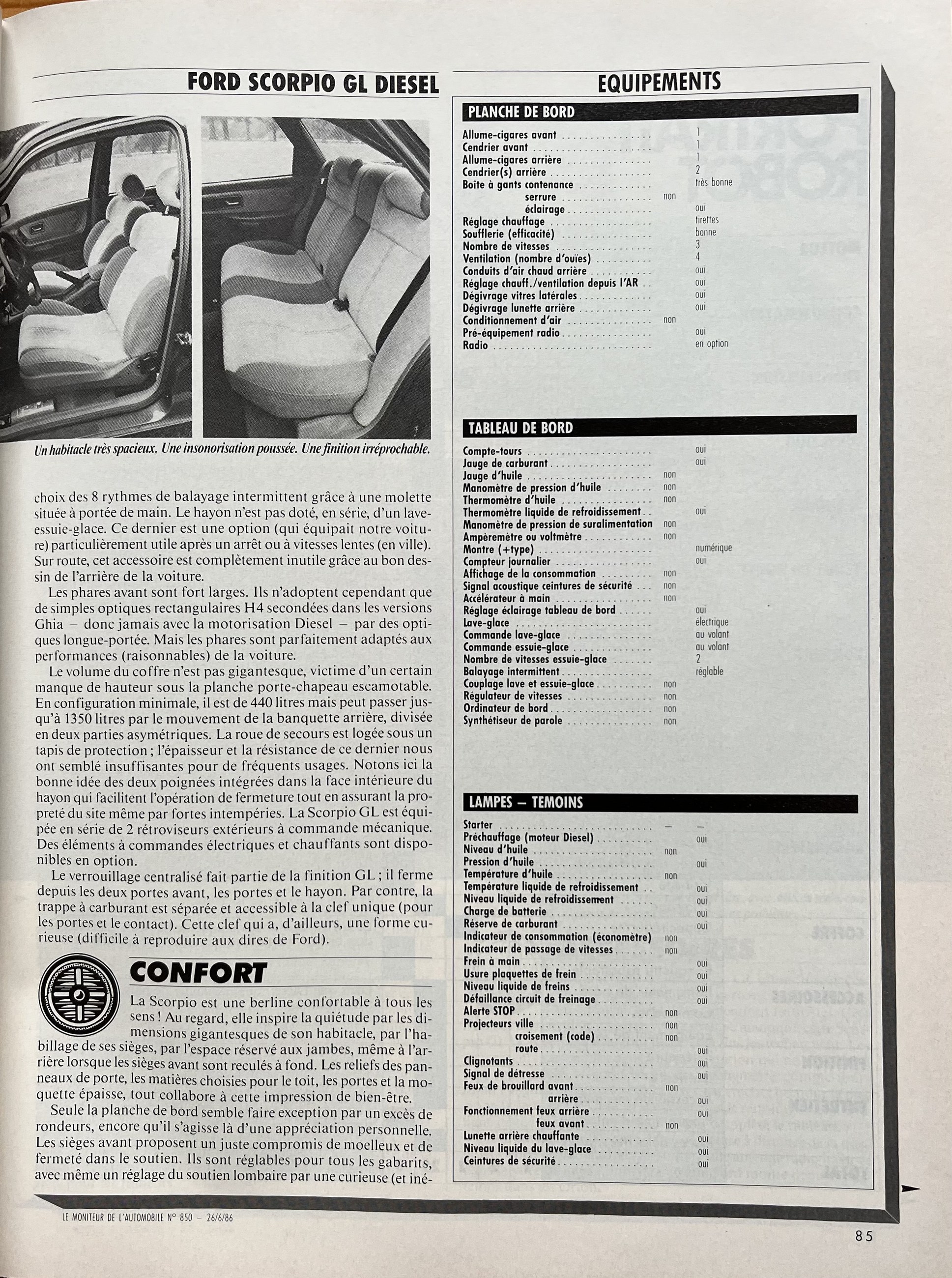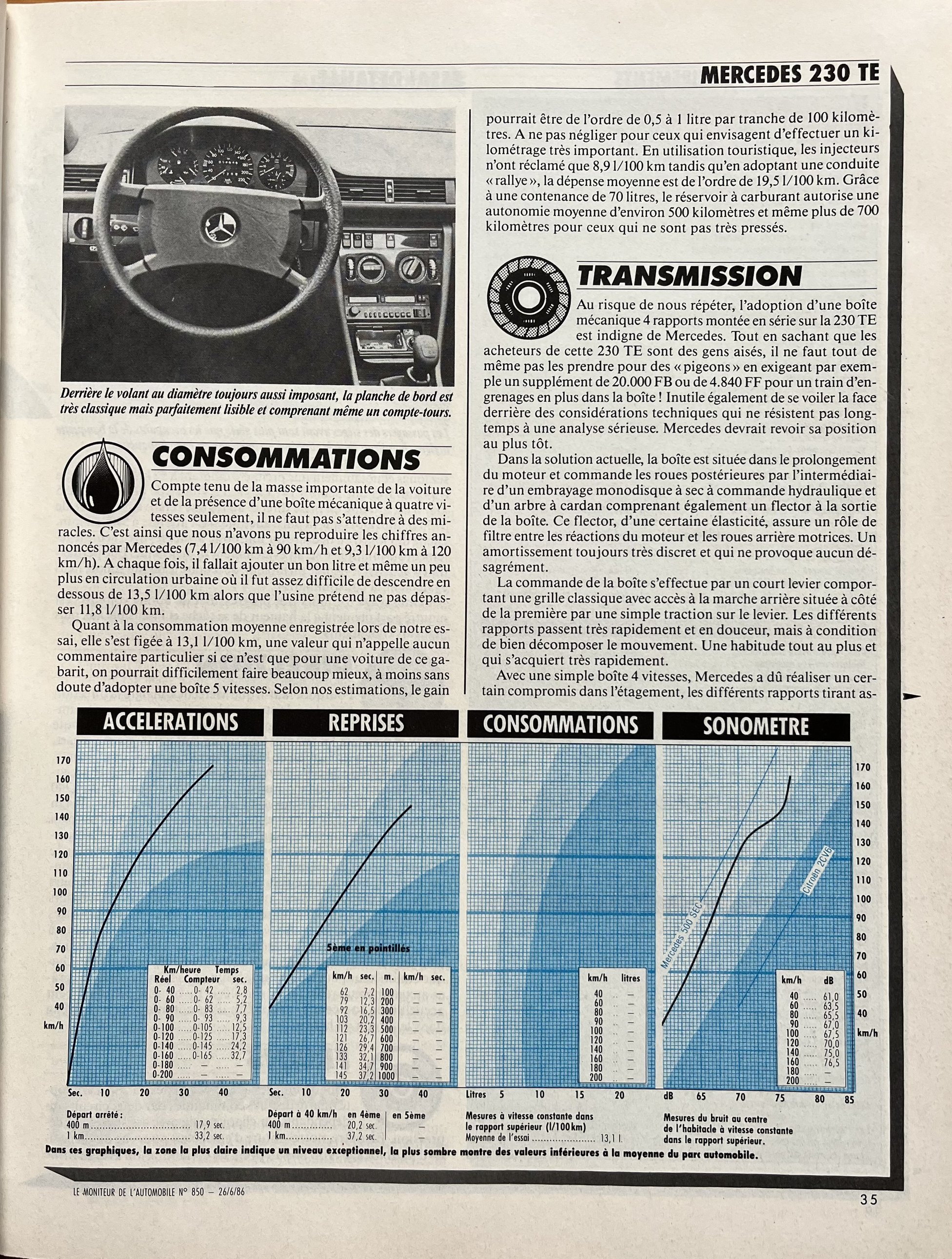 Le Moniteur de l’Automobile 850 Mercedes 230 TE Ford Scorpio GL 2,5 diesel ![]() |