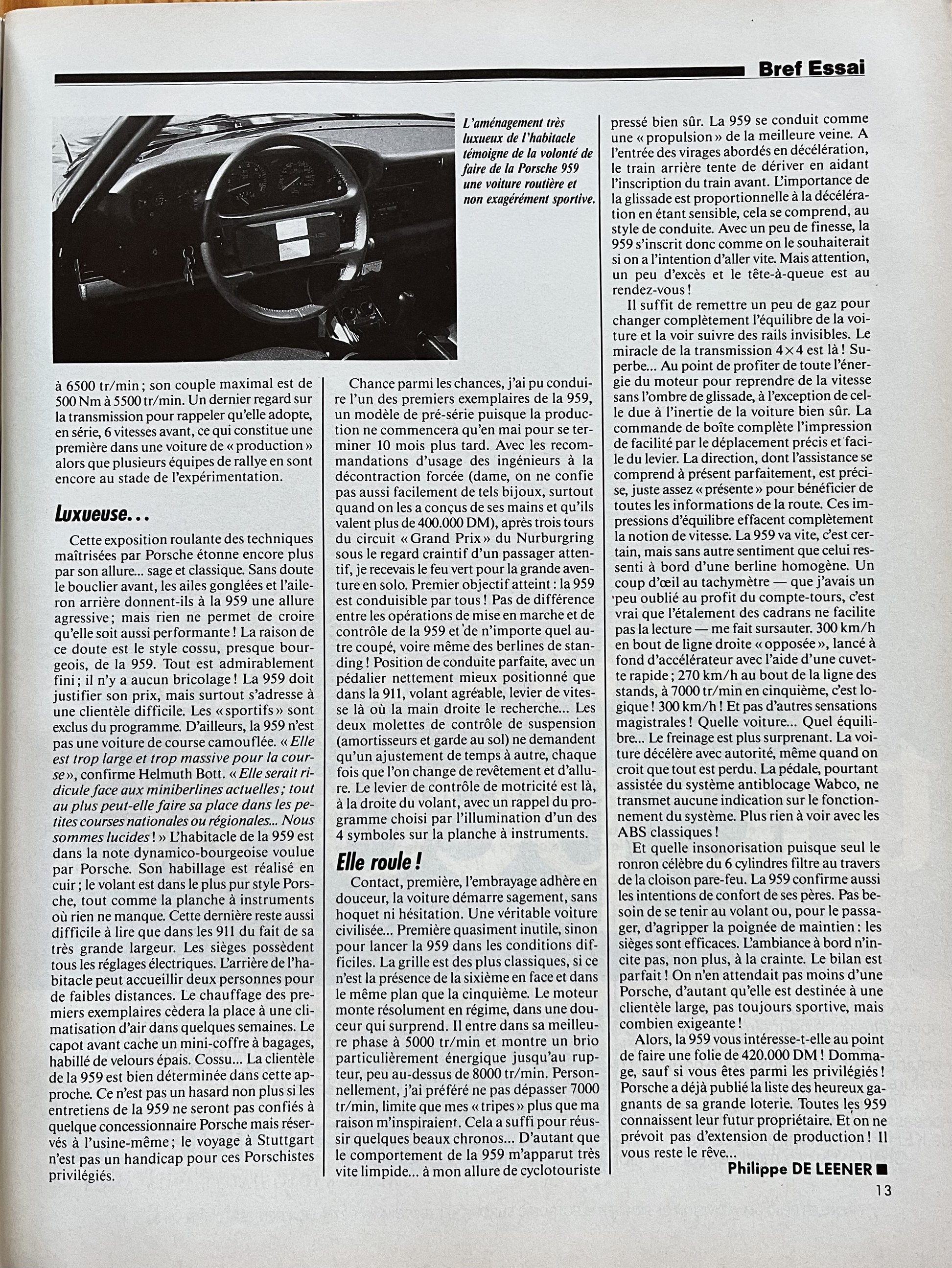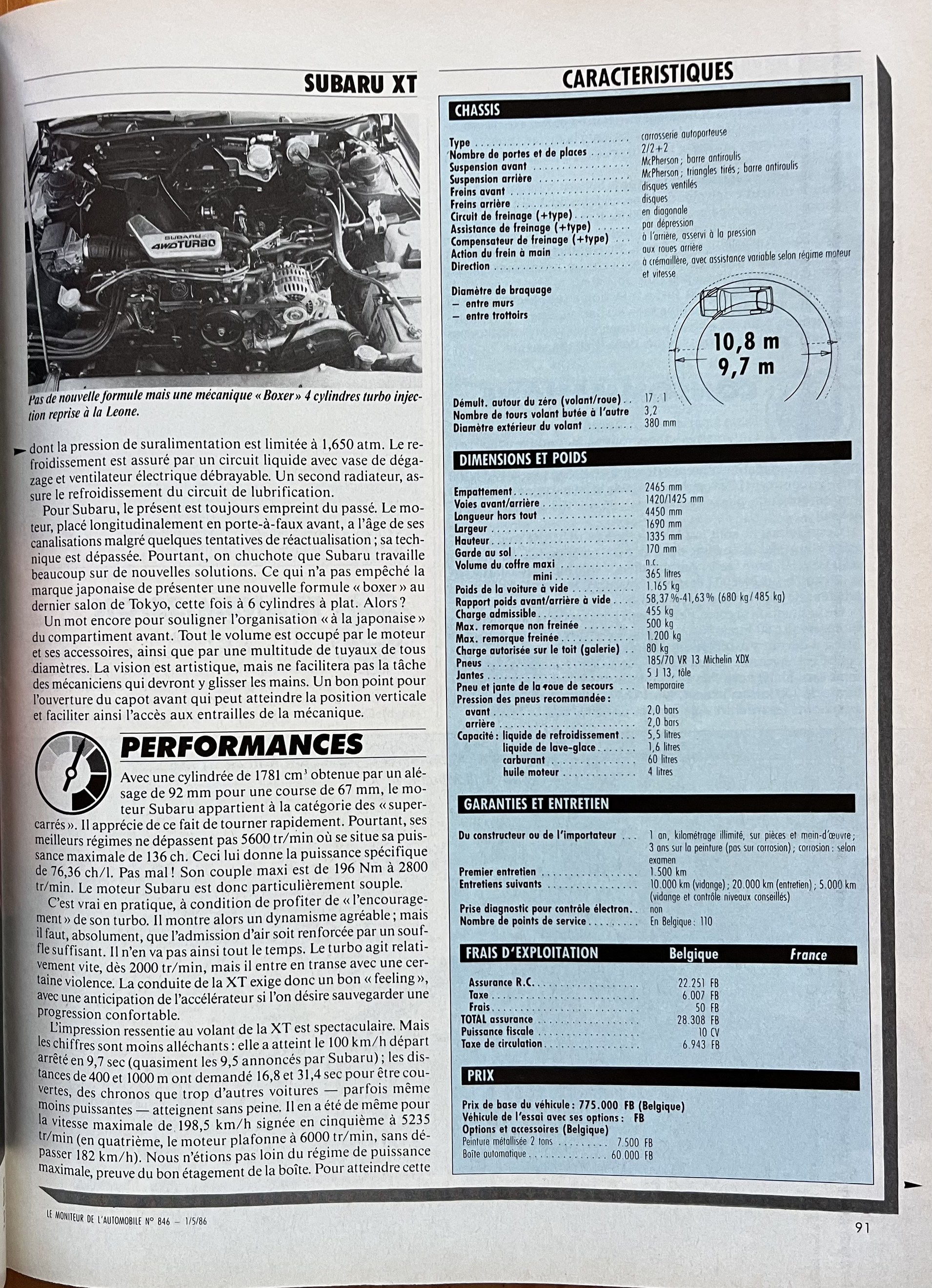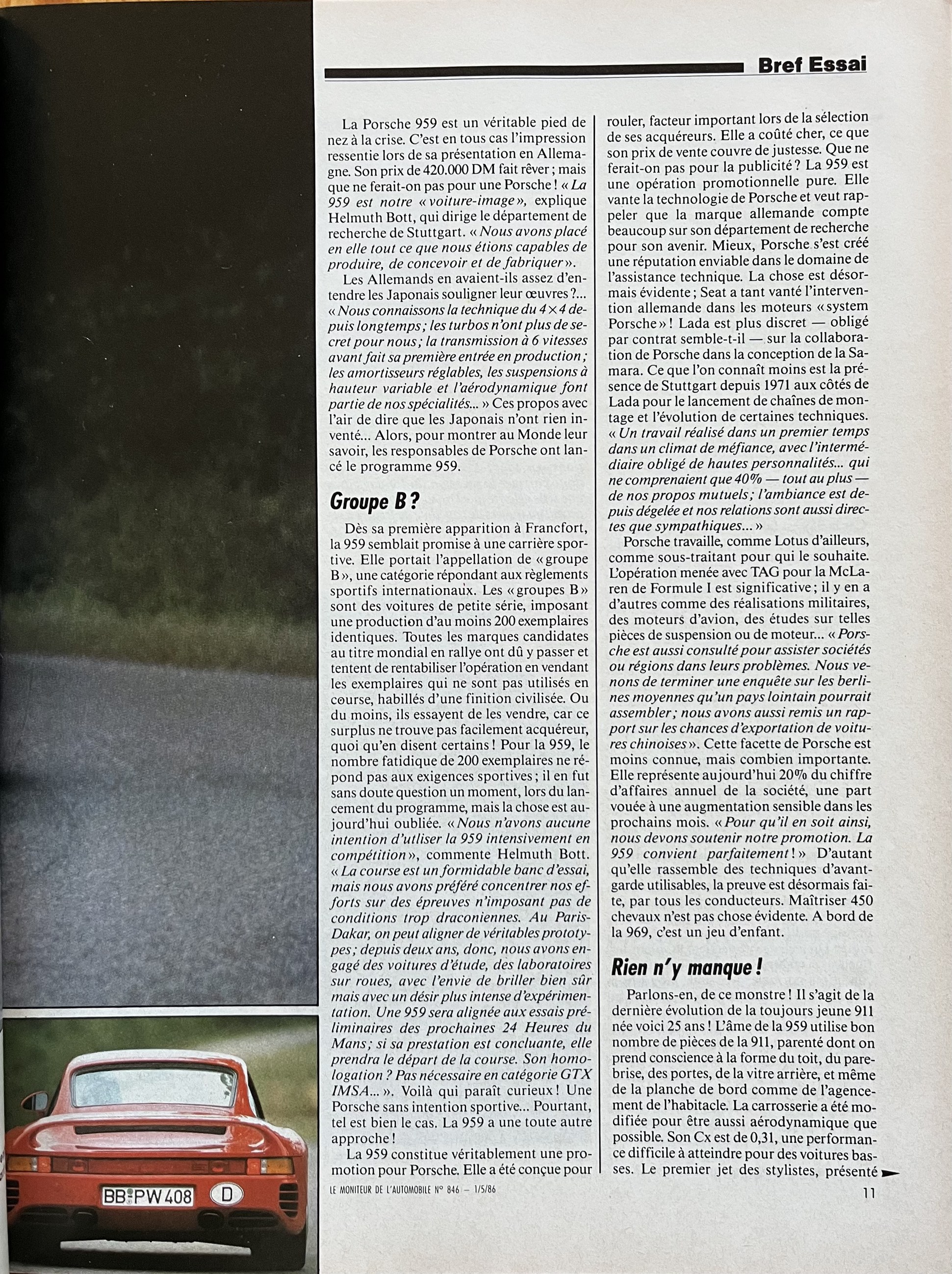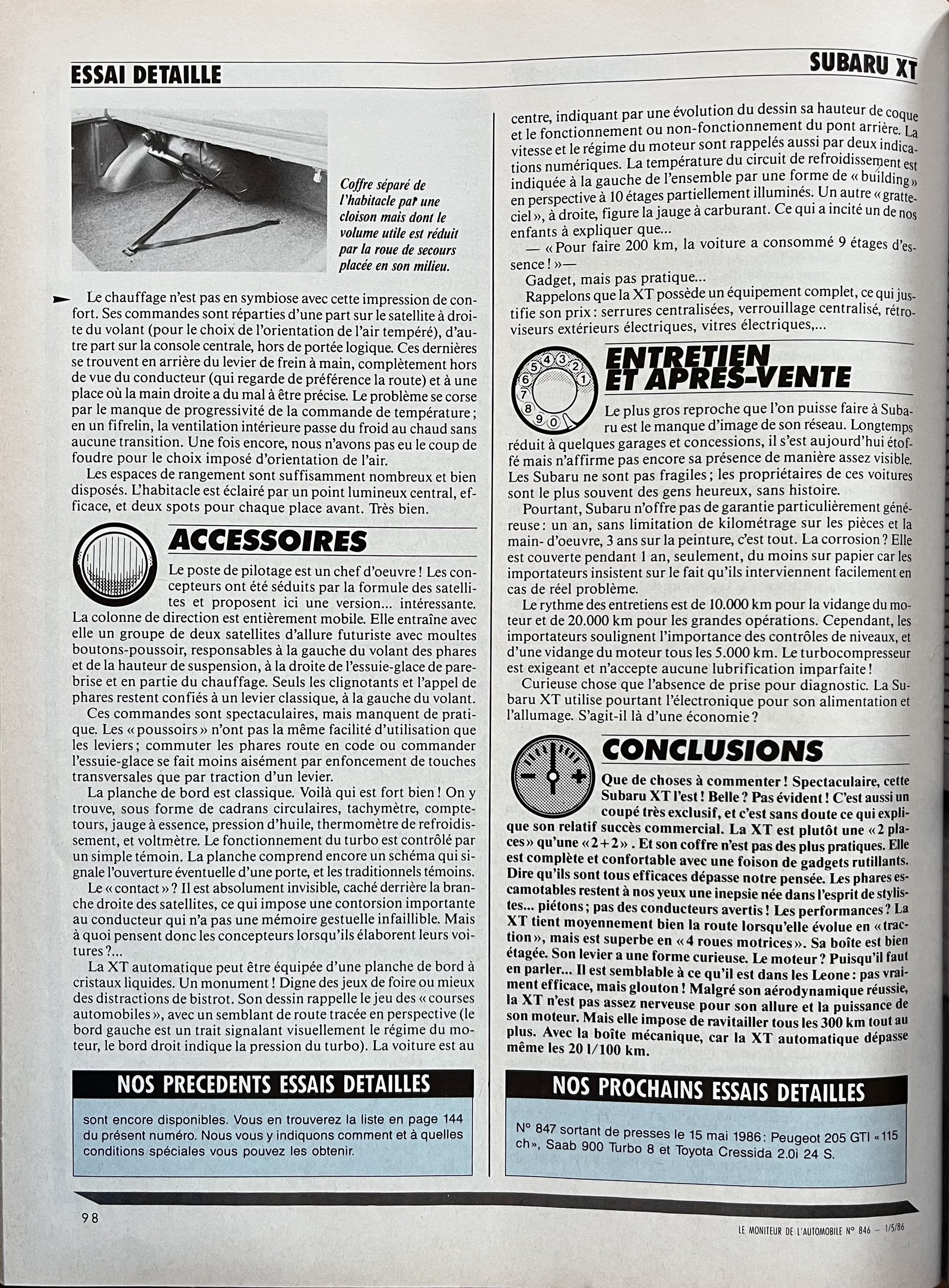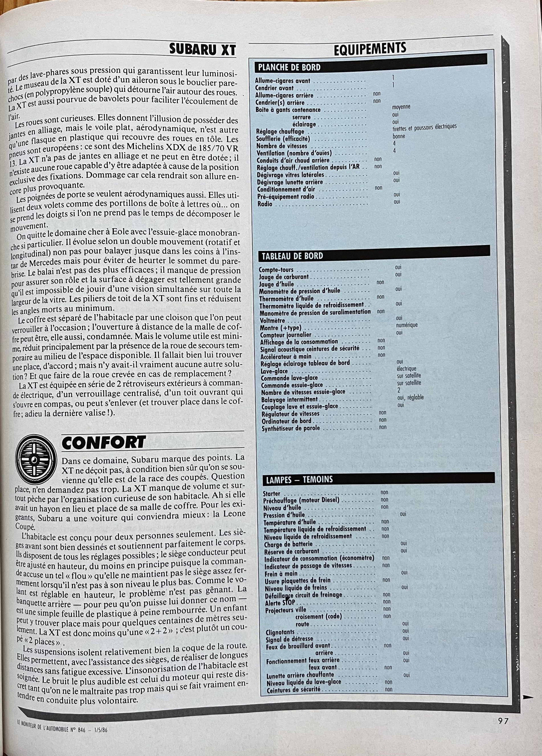 Le Moniteur de l’Automobile 846 Porsche 959 Subaru Xt ![]() |