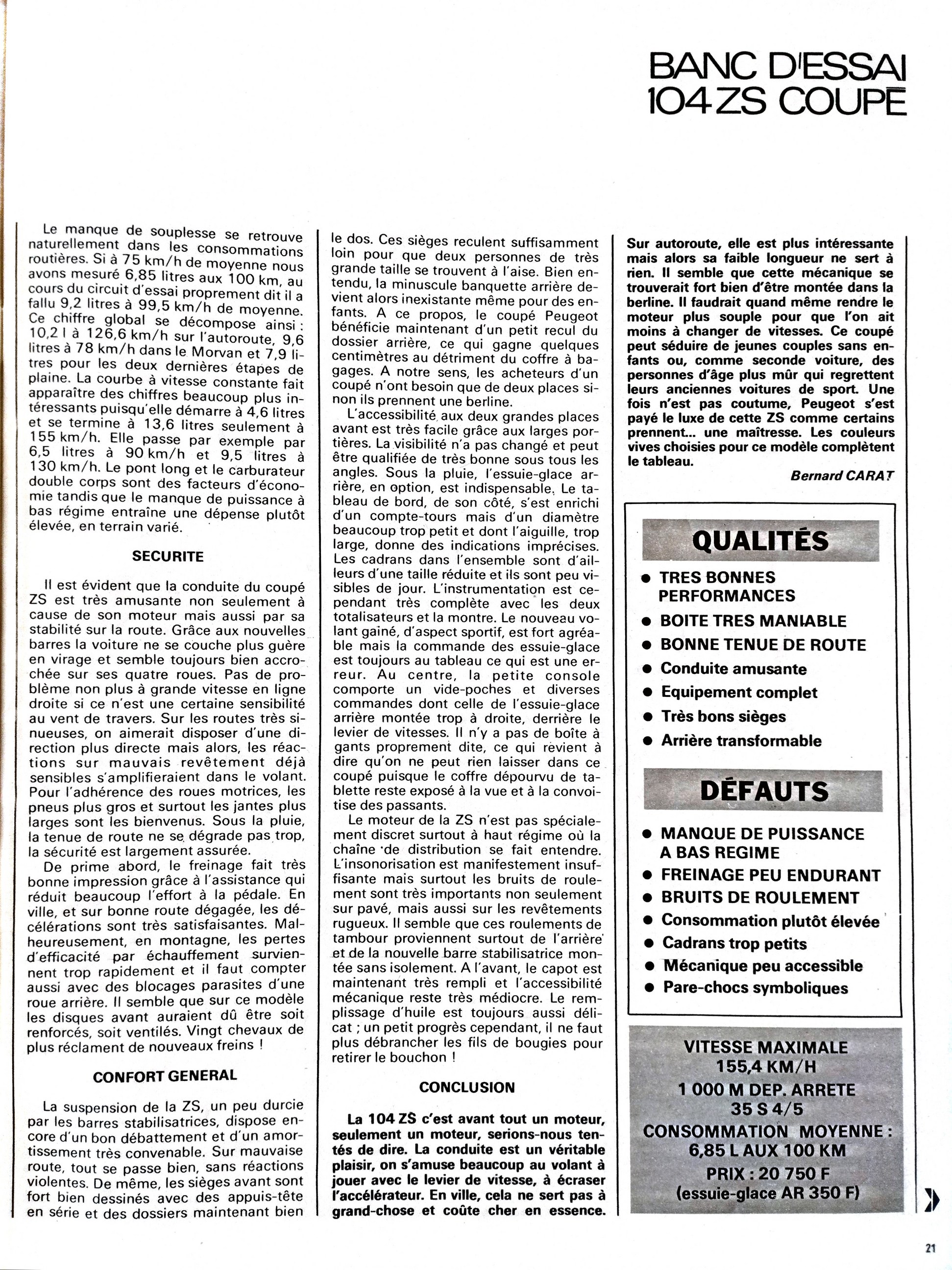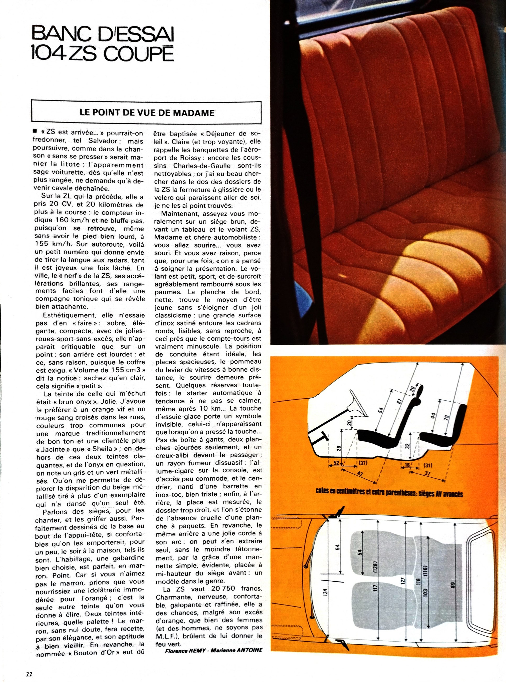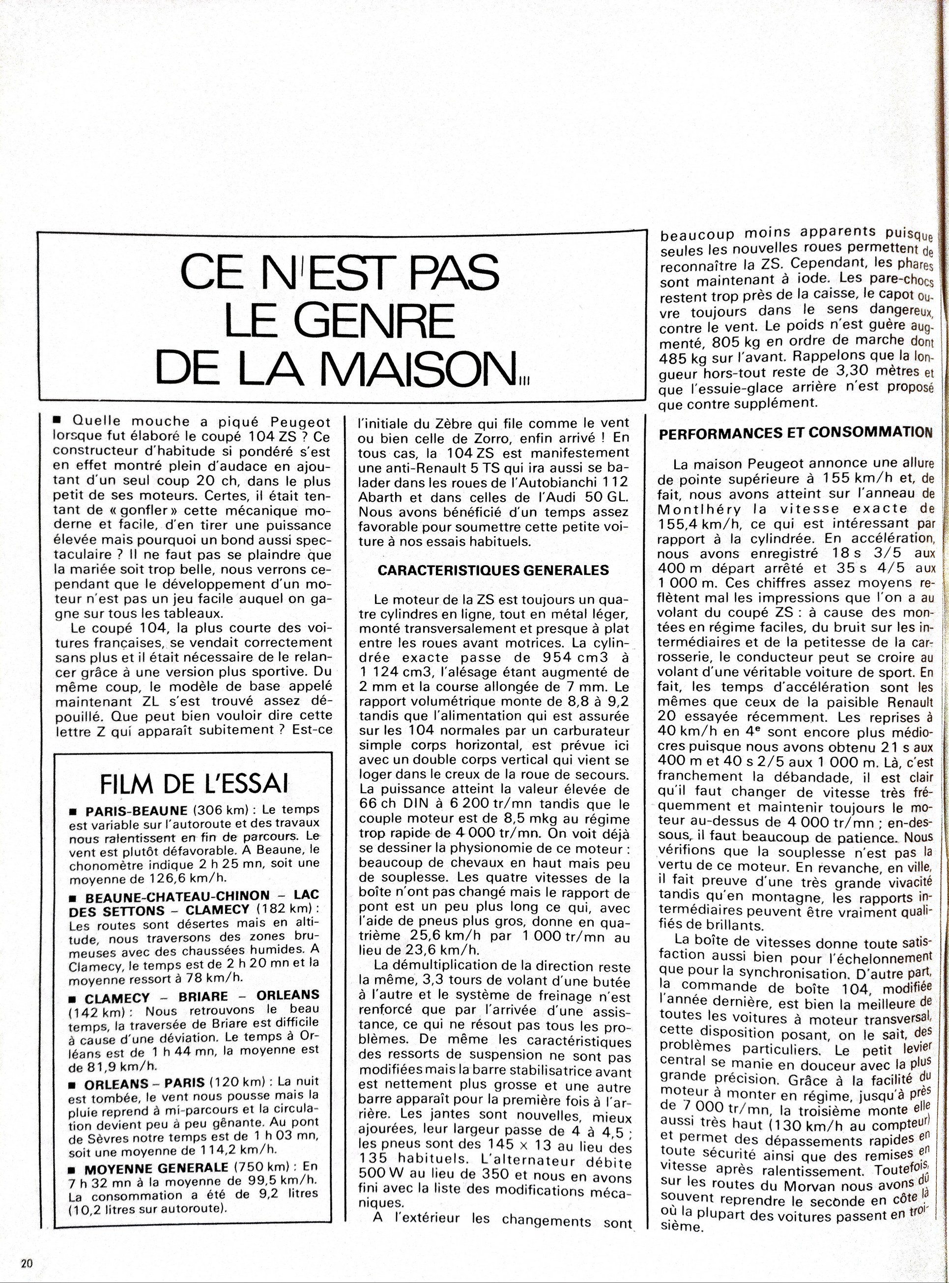 Auto-journal N°1 - 15 Janvier 1976 Essai - Peugeot 104 ZS ![]() |