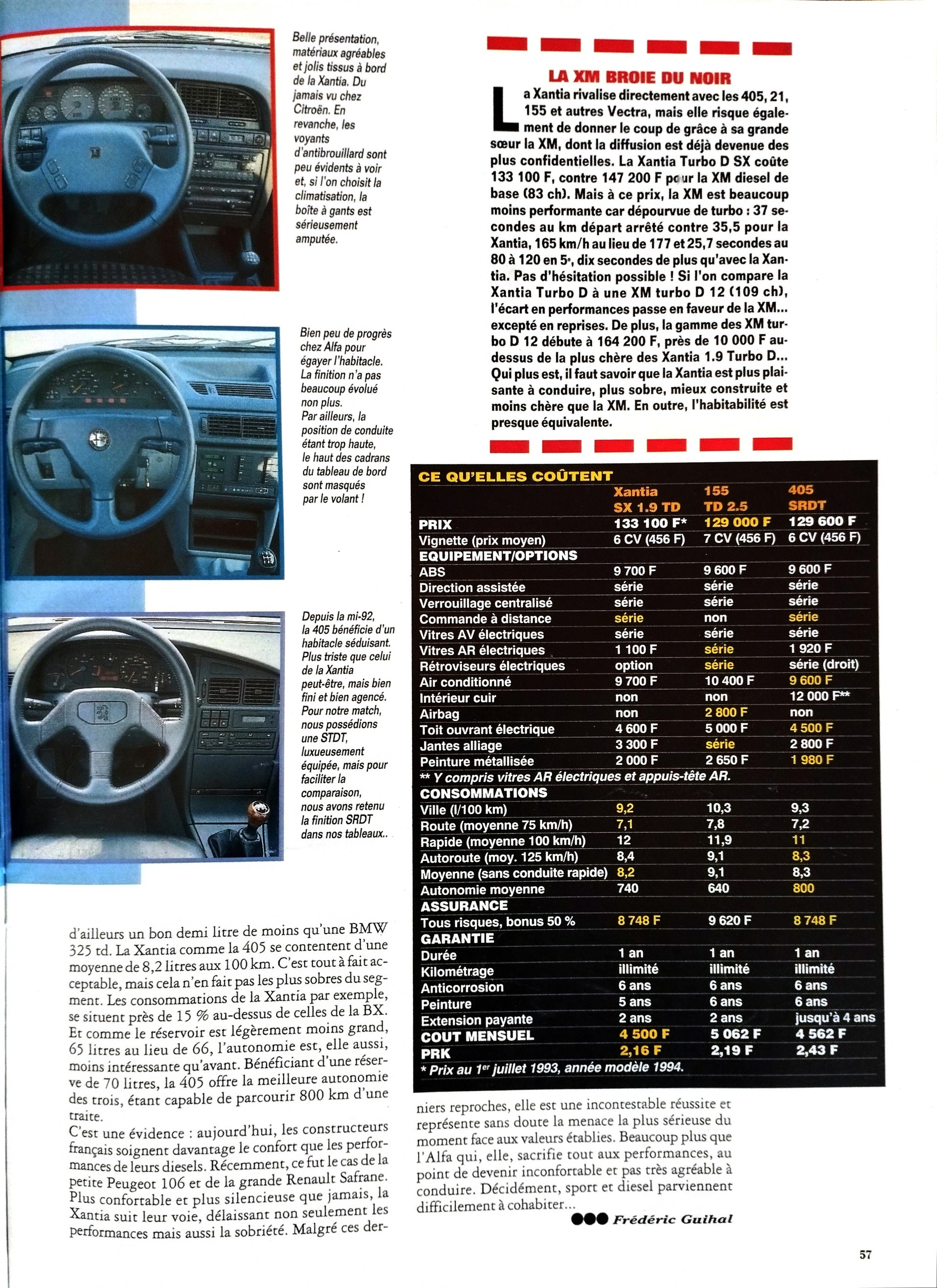 Action Automobile N°378 - Juin 1993 Comparatif - Alfa Roméo 155 TD 2.5 - Citroën Xantia Turbo D SX - Peugeot 405 SRDT ![]() |