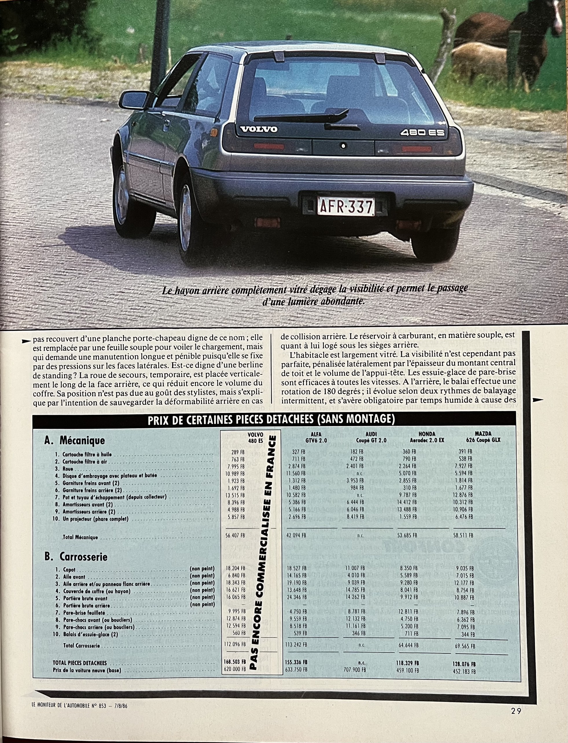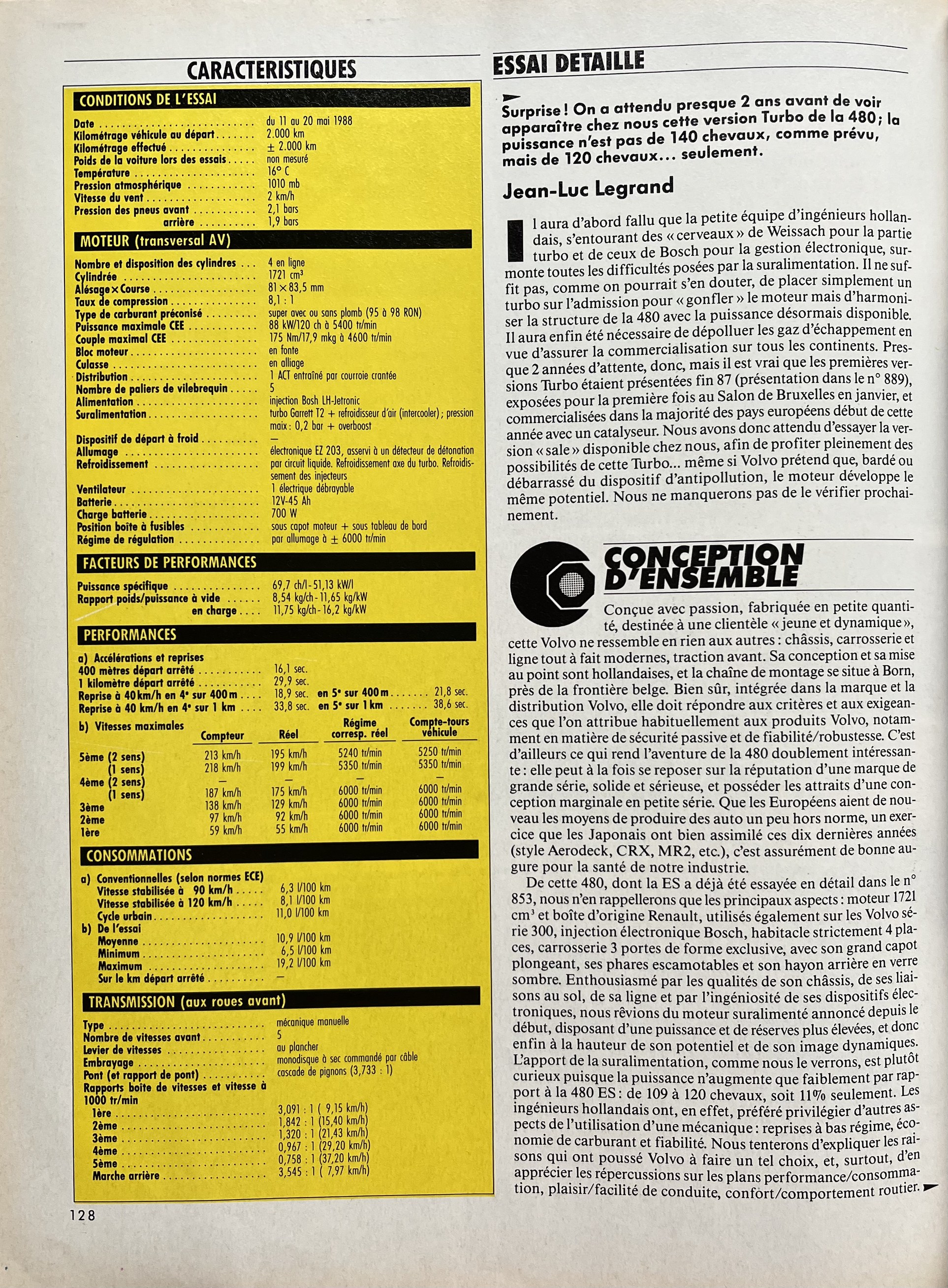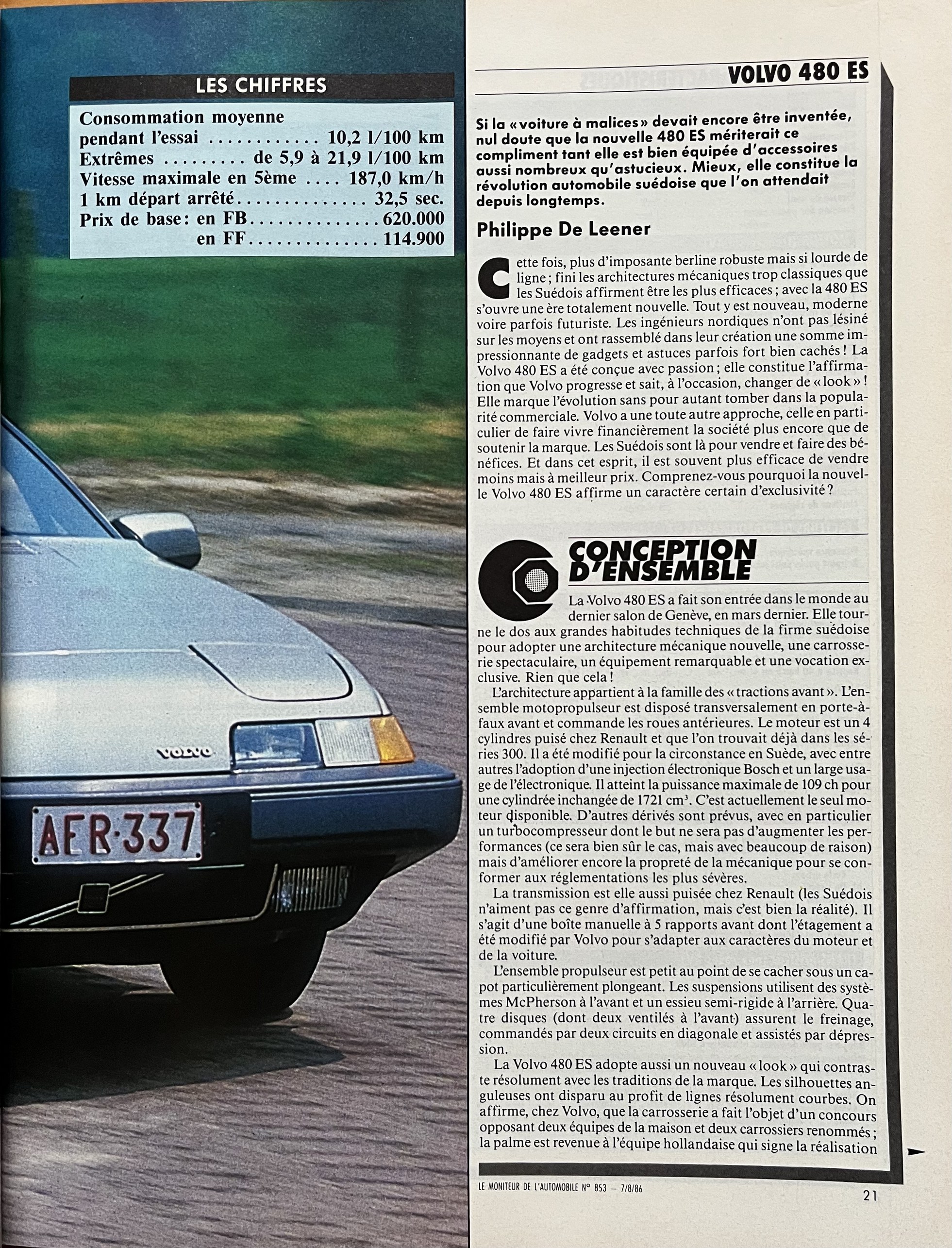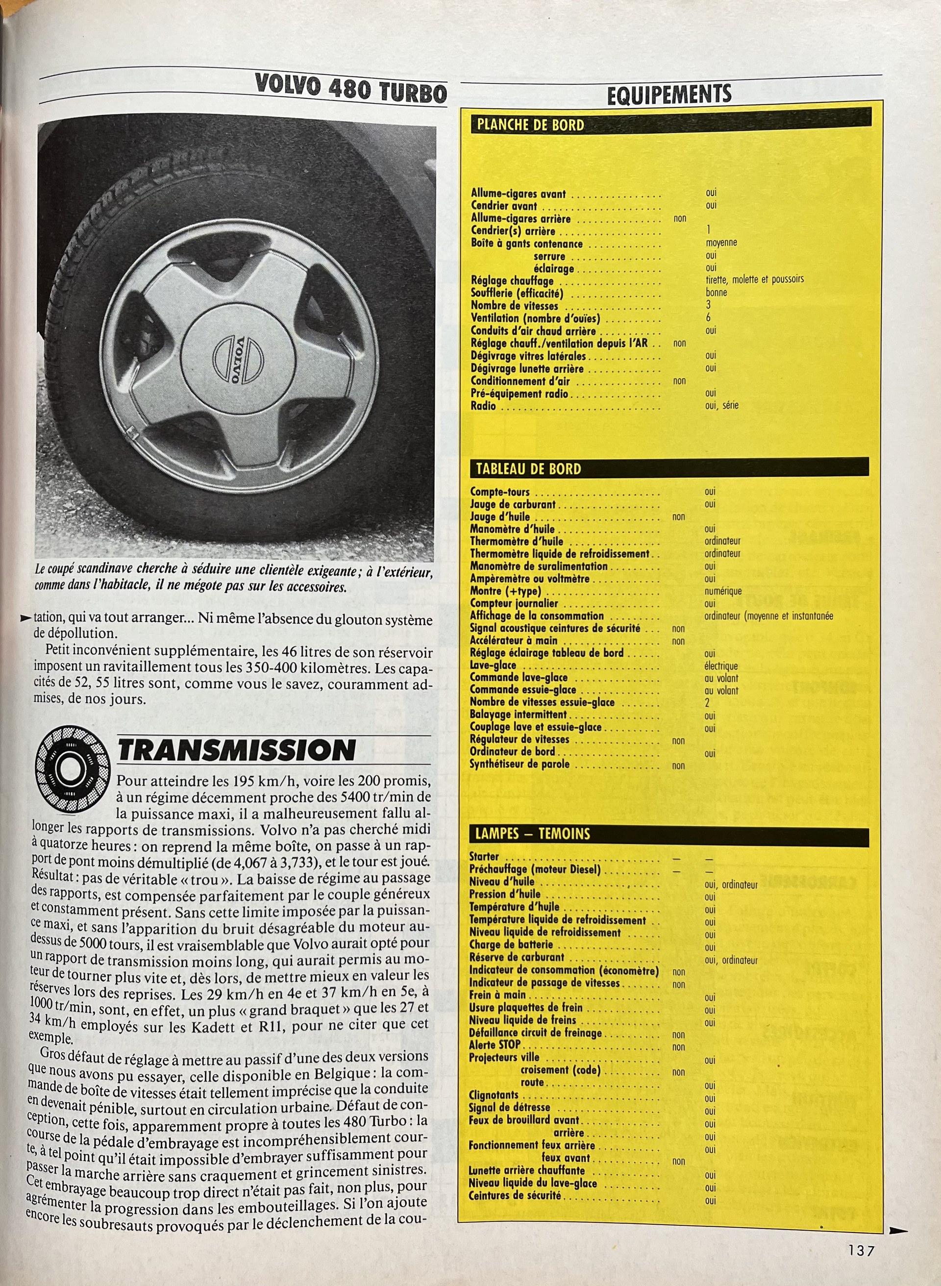 Le Moniteur de l’Automobile 901 Volvo 480 Turbo ![]() |