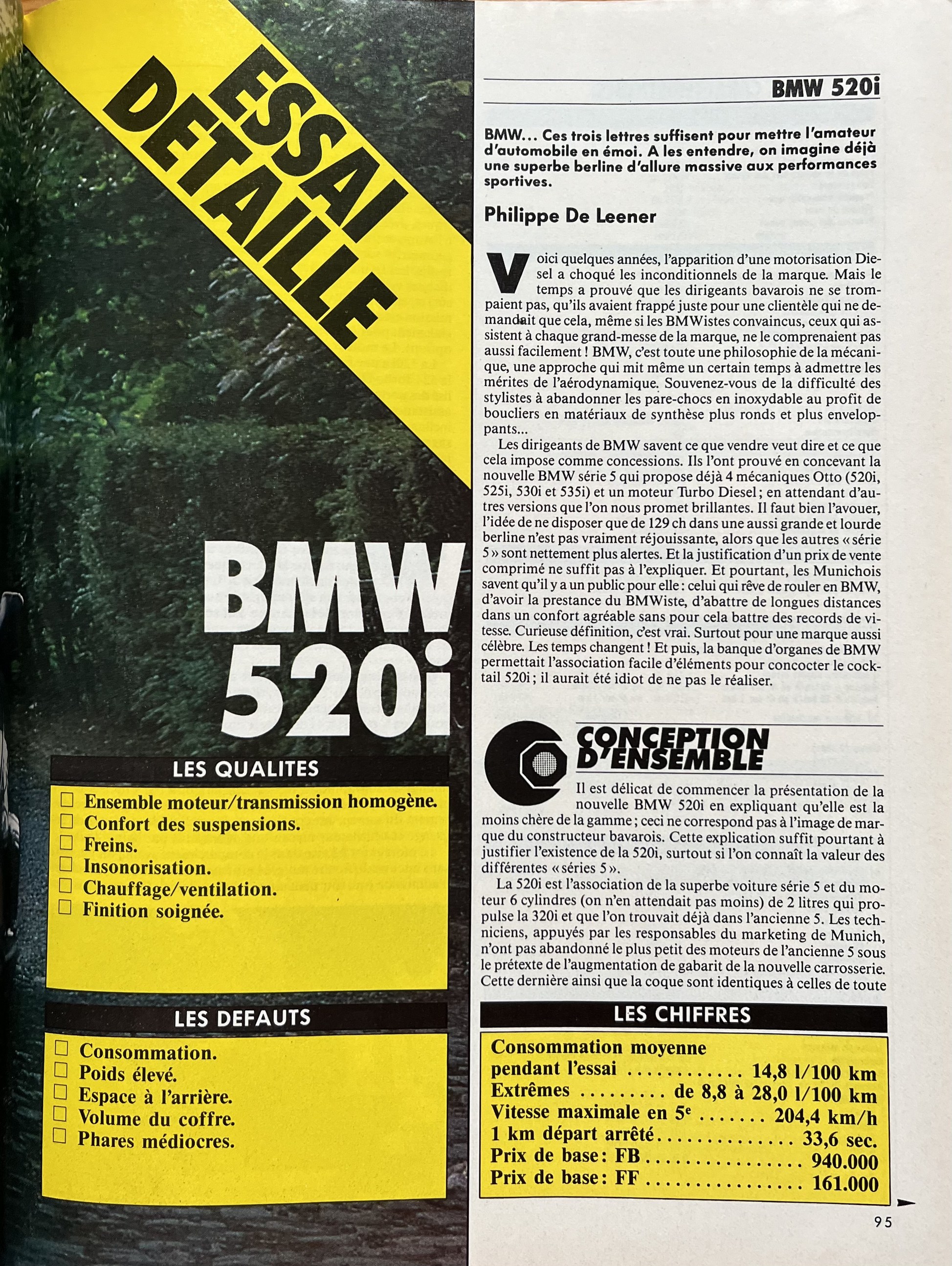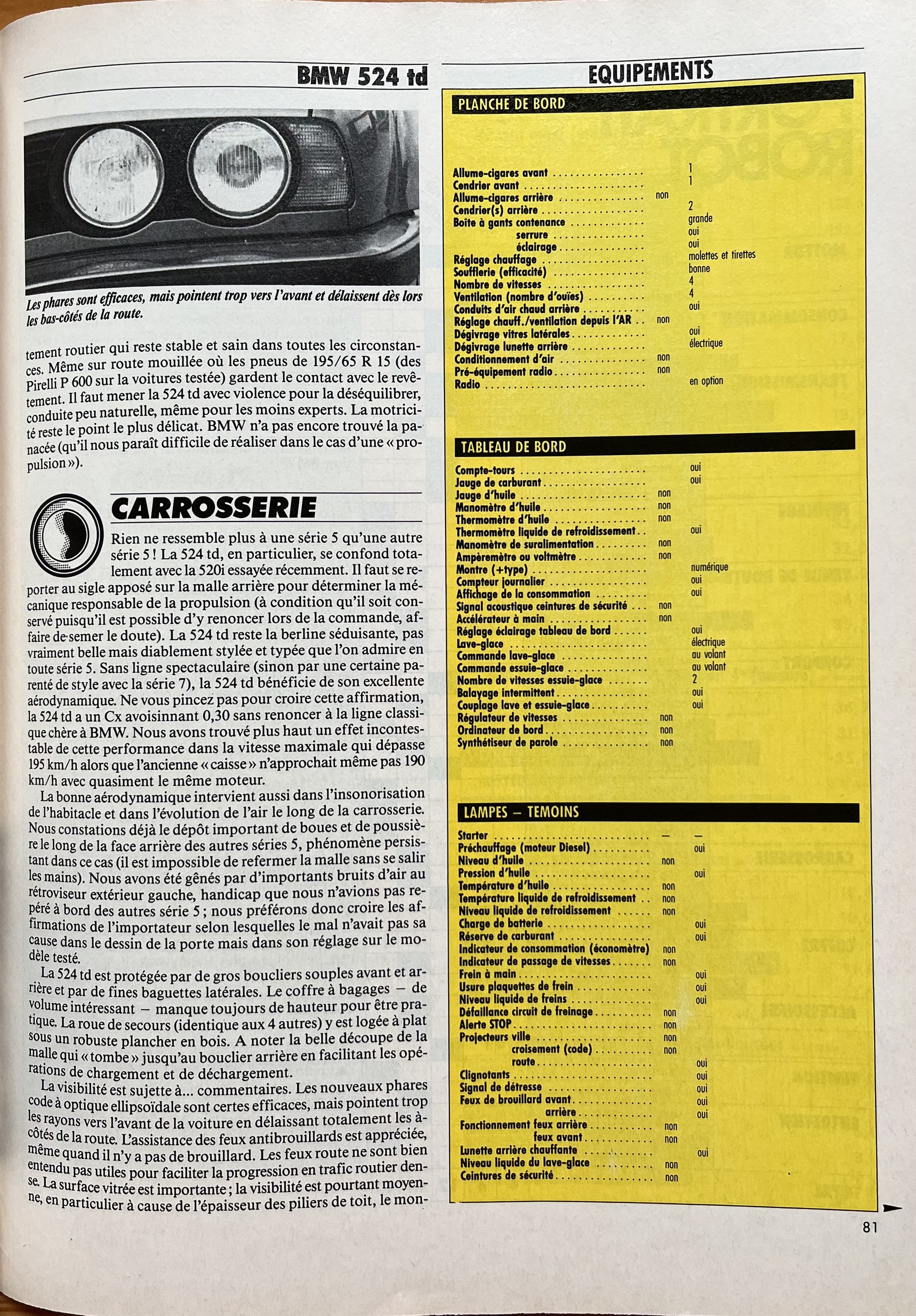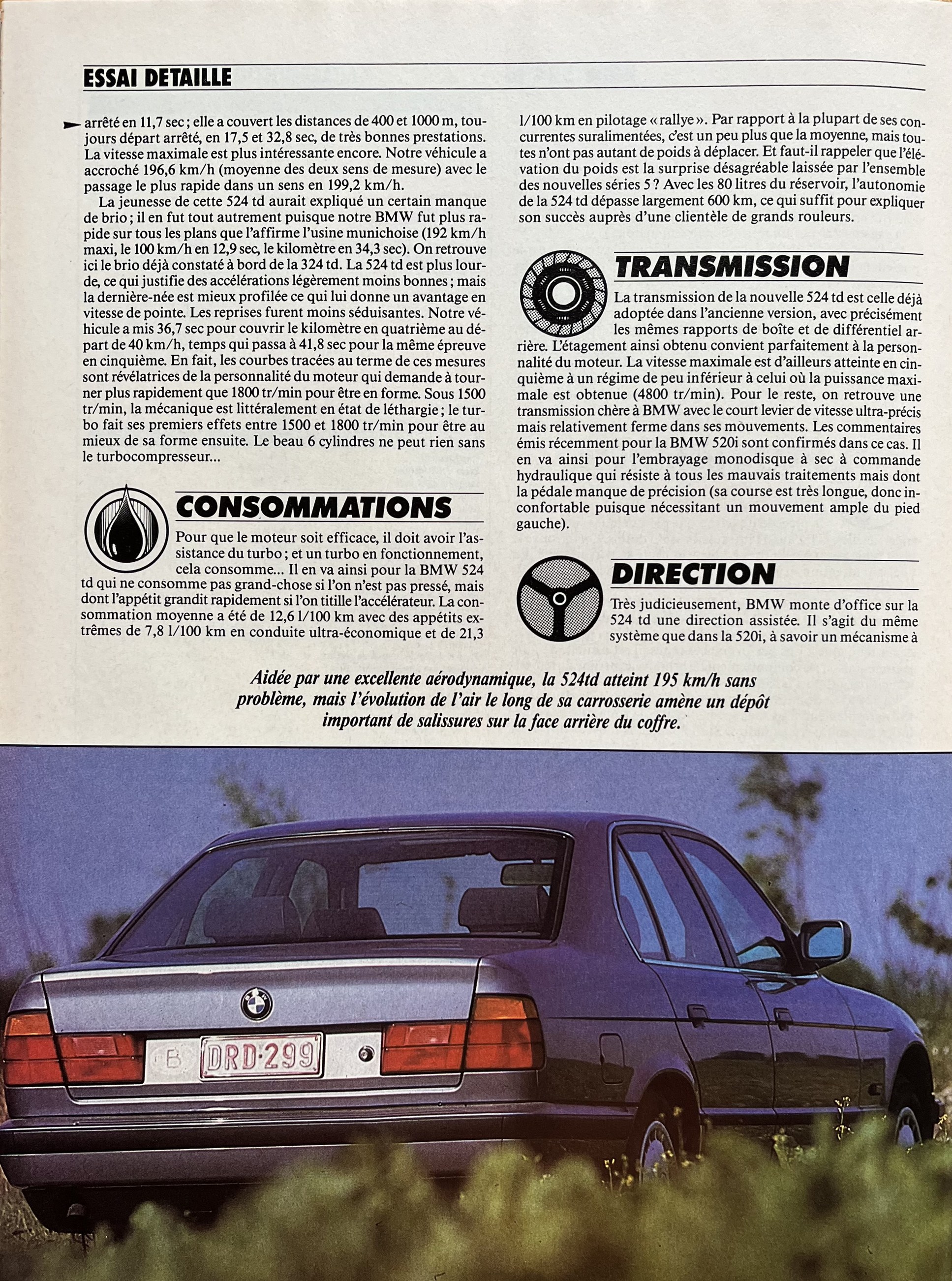 Citation de Nanard911 : « Citation de Kilowatt : « @Nanard911 Gran merci pour le test de la BMW 524 td, Renault 19! Pourquoi ont-ils dit que c'était le quatrième essai de Série 5 ce mois-ci ? Vous avez publié les photos des 520 et 524. Y en avait-il d'autres ? » @Kilowatt je n’ai pas republié 525i et 535i. À retrouver via moteur de recherche en bas du dernier message publié sur ce sujet. » Merci! @Nanard911 |