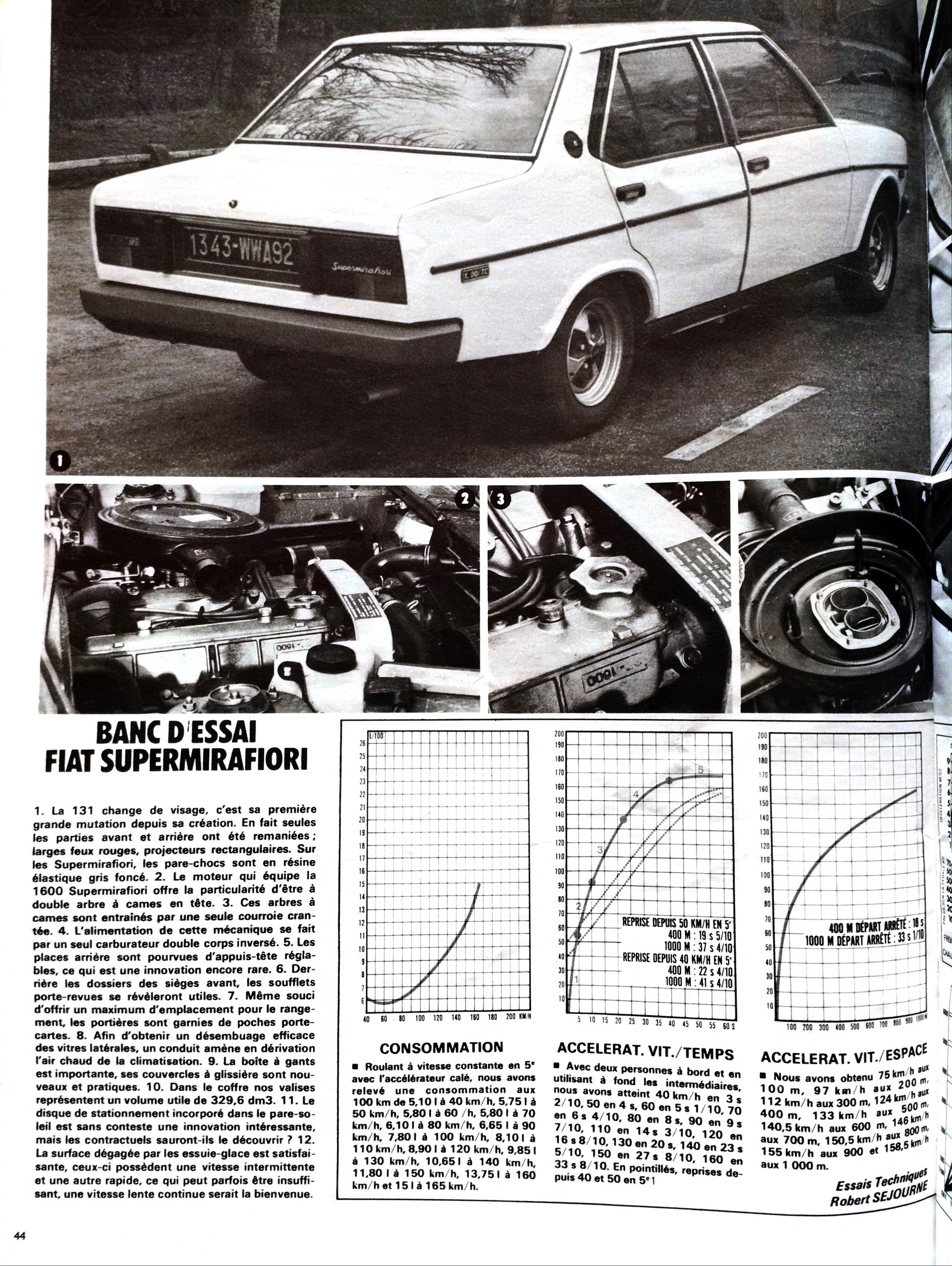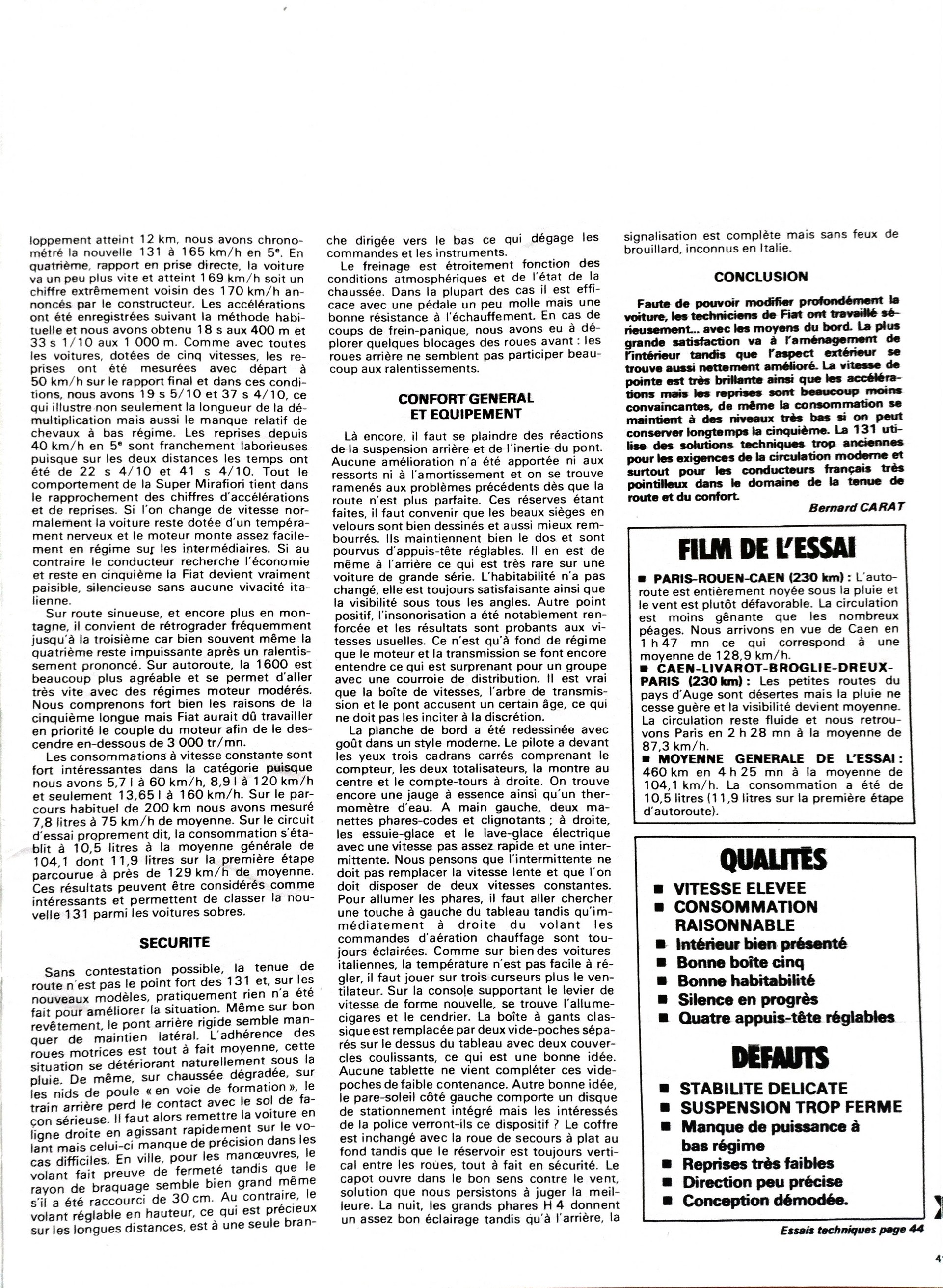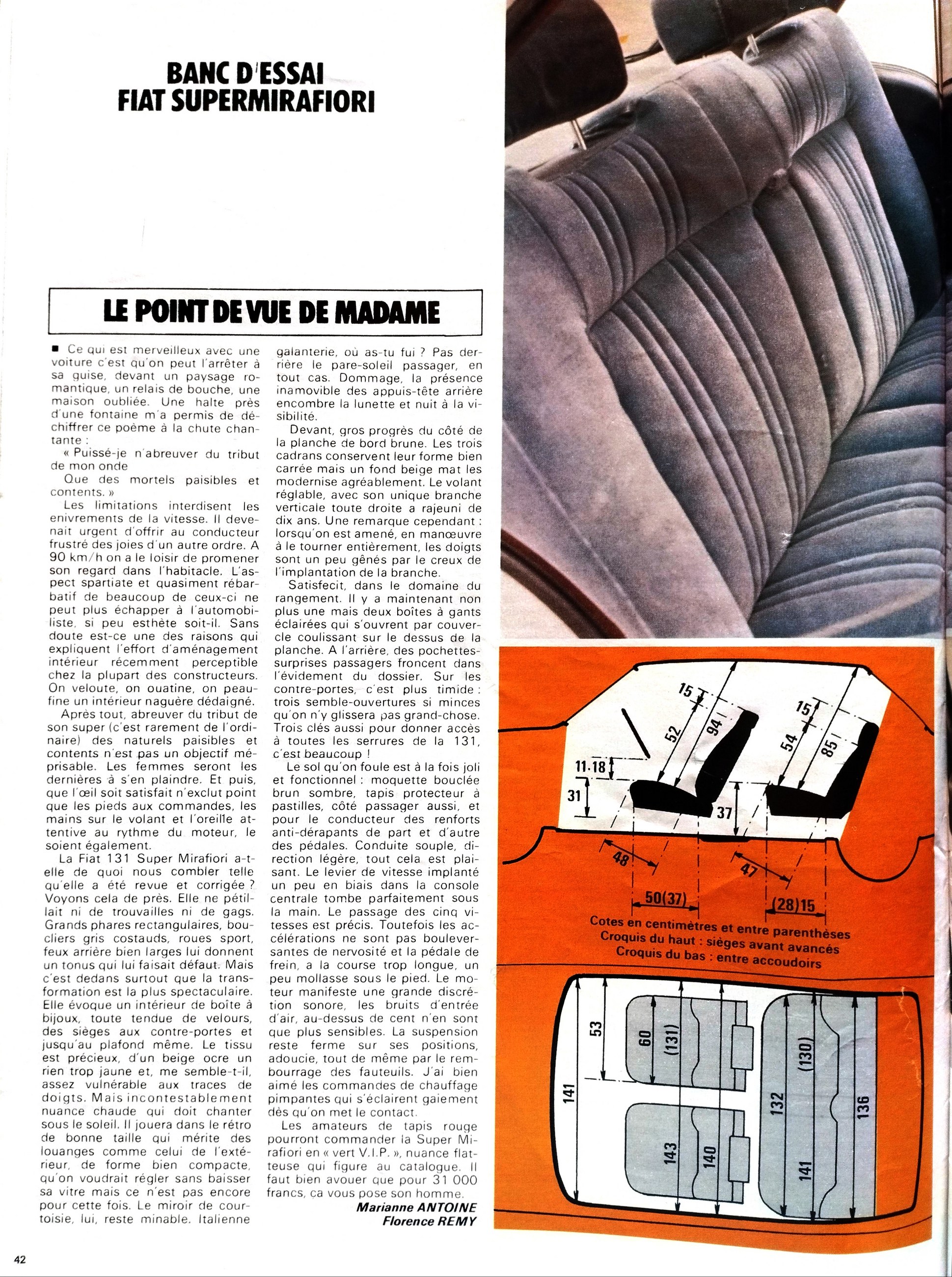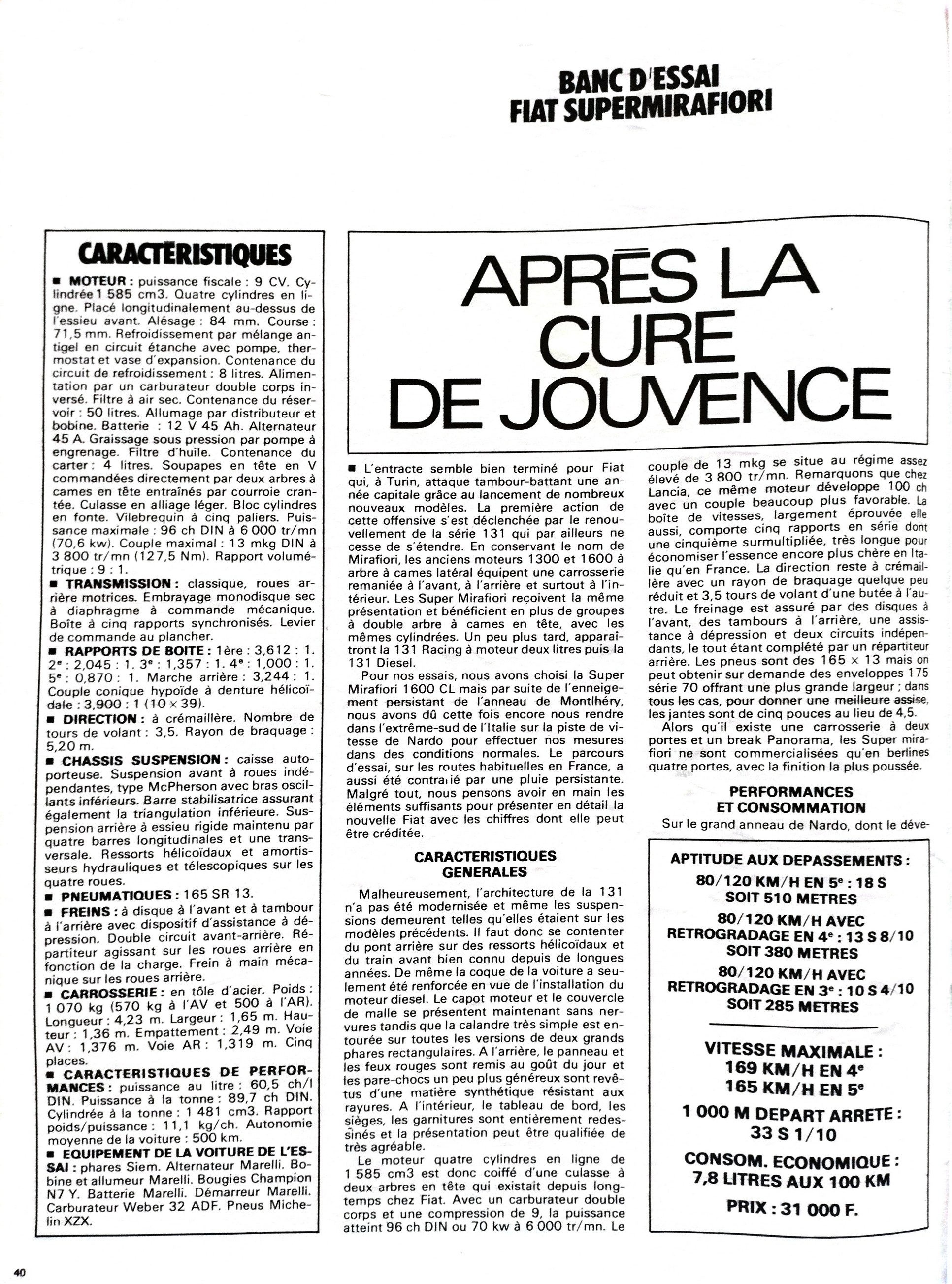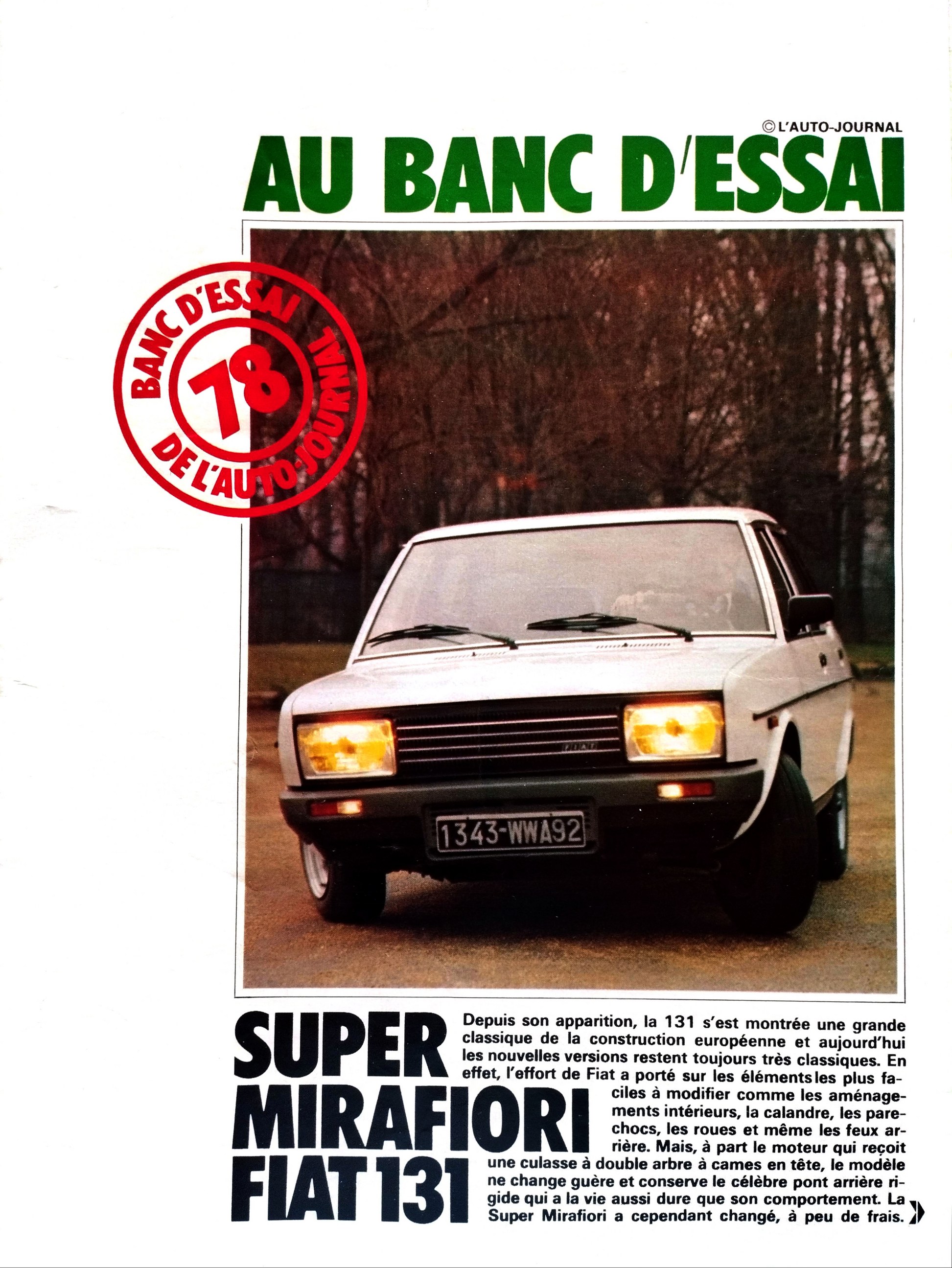 Auto-journal N°6 - 1er Avril 1978 Essai - Fiat 131 Super Mirafiori ![]() |