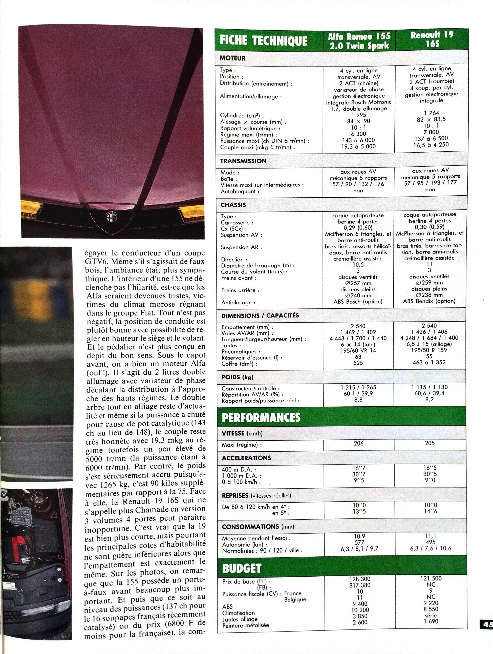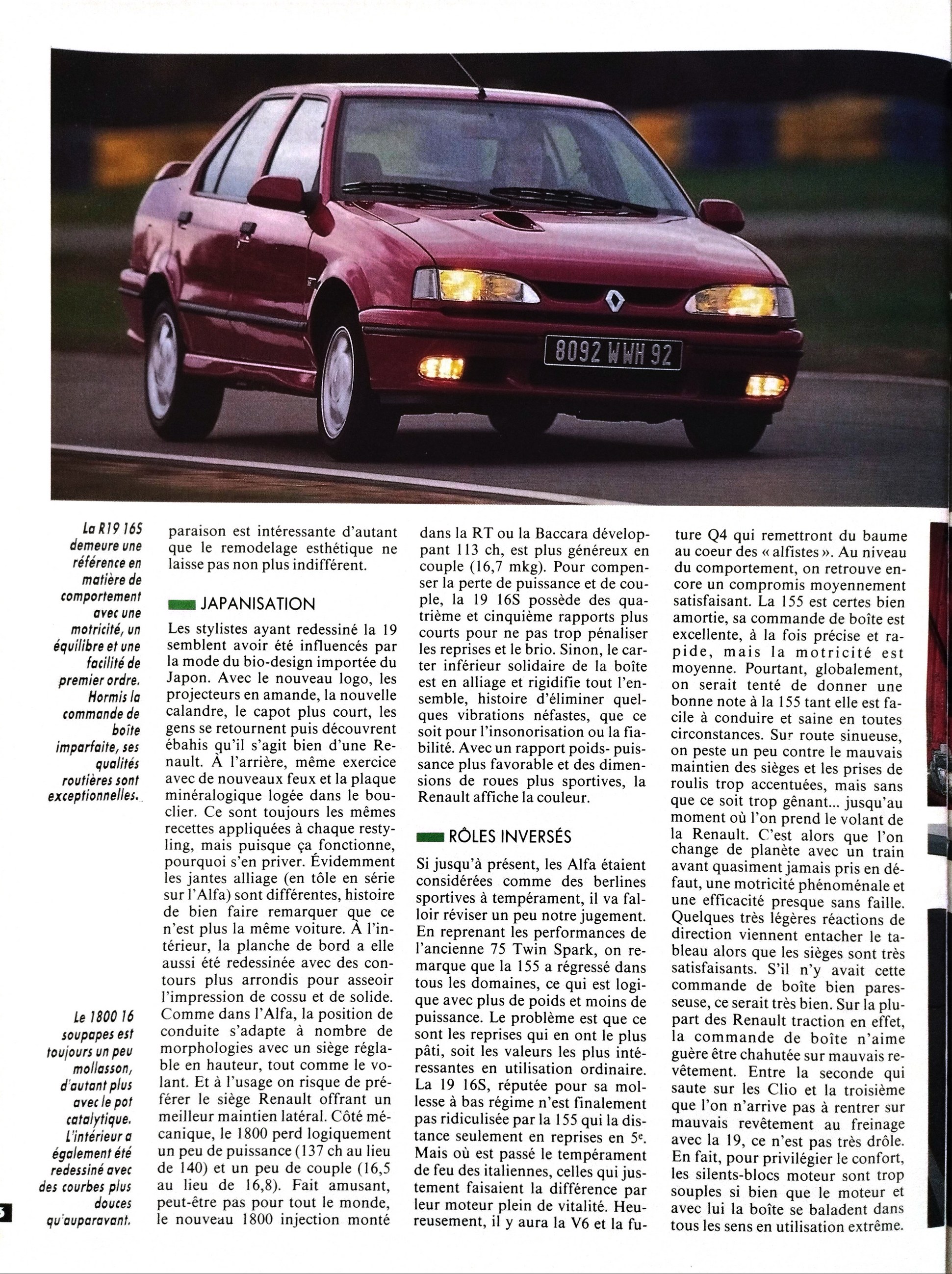 Auto Hebdo N°826 - 23 Avril 1992 Match - Alfa Romeo 155 Twin Spark 2.0 - Renault 19 Chamade 16S Rare un essai ou comparatif d'une 19S Chamade en phase 1 ou phase 2 comme celle-ci |