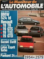 Le Moniteur de l’´Automobile 904 Renault 19 TR - GTS - TXE - GTD BMW 524 TD Lotus Esprit Turbo ![]() Dernière édition le 08/02/2026 à 10:19 par Nanard911, édité 1 fois |
