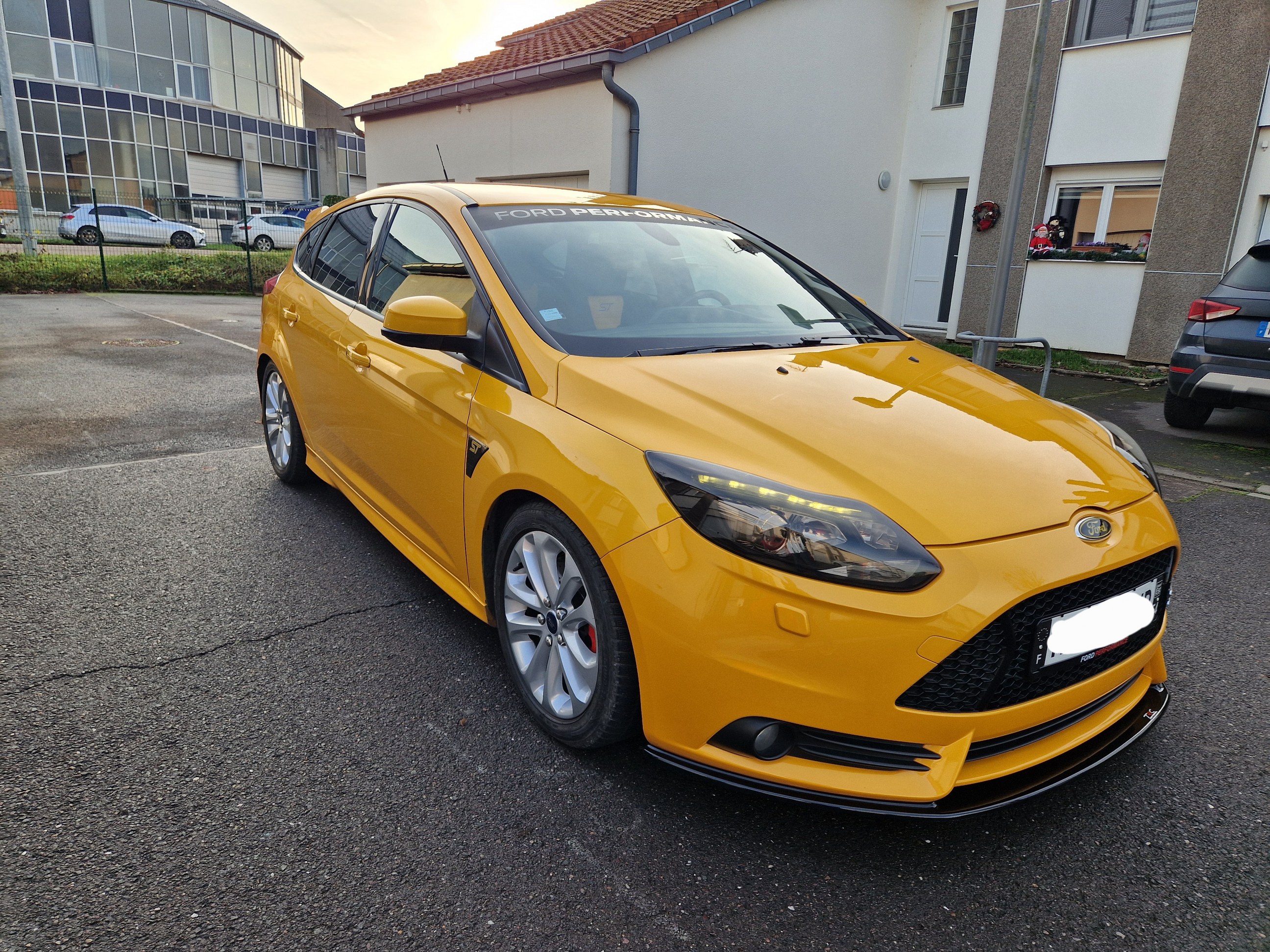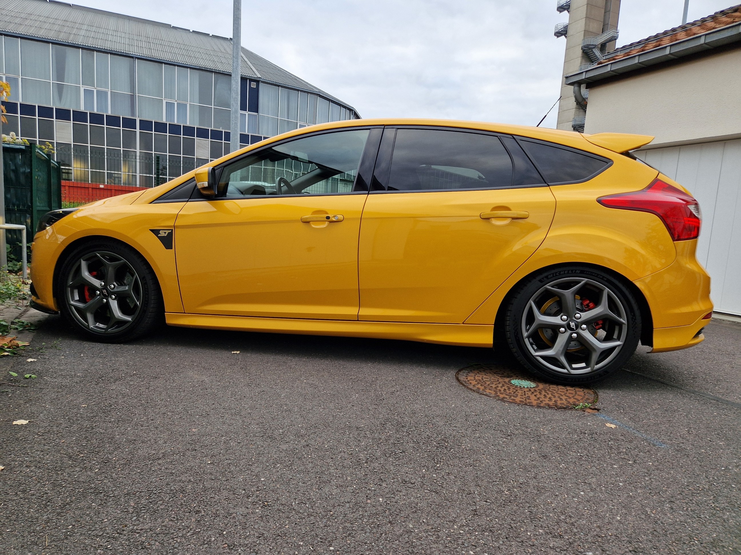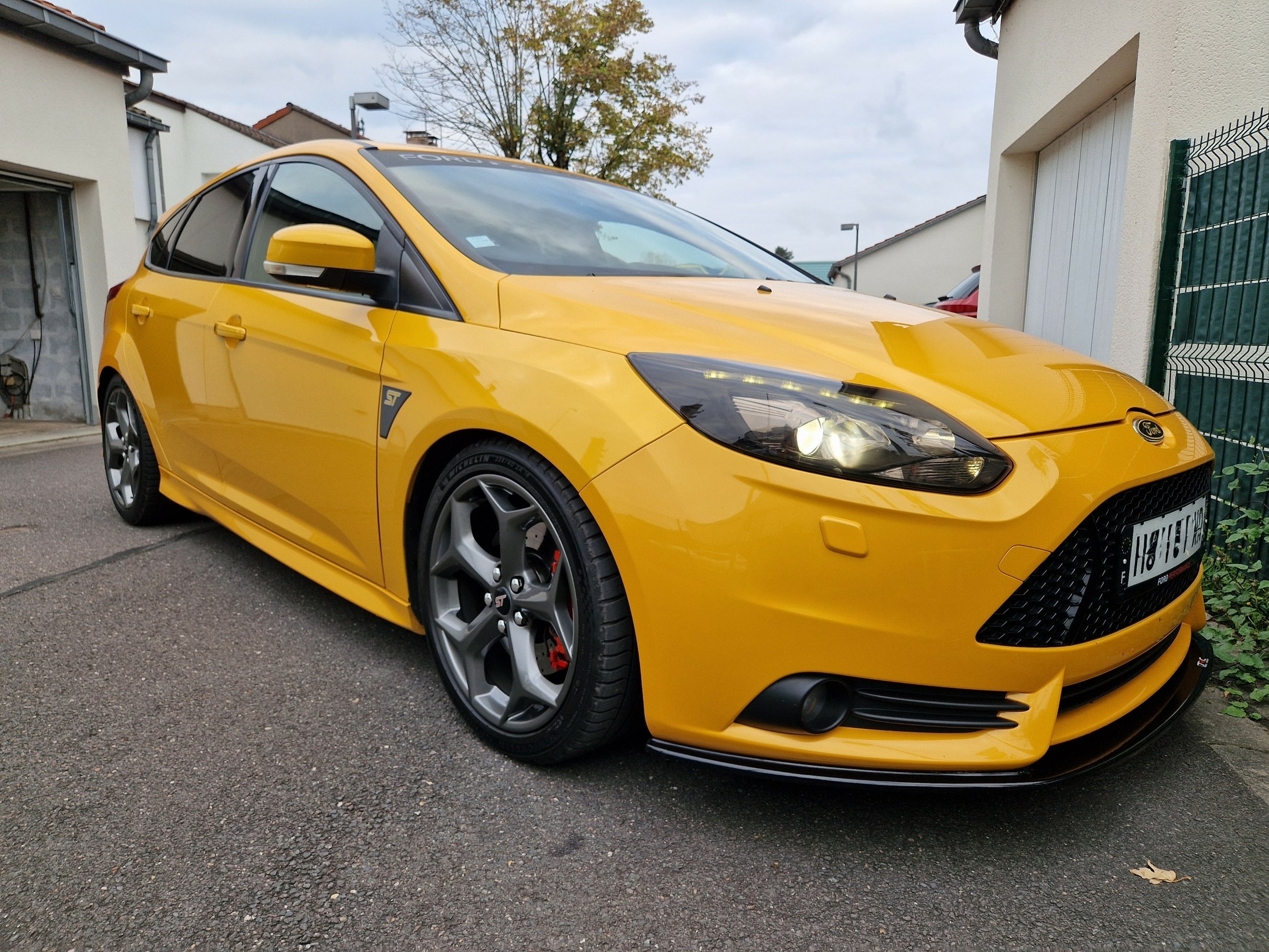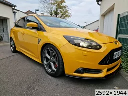 La ST SW est partie il y a 1 mois après avoir fait 40000kms à son volant en 2 ans; j'ai récupéré la remplaçante semaine dernière et oui c'est à nouveau une ST mais berline. Par rapport à la SW moins d'options mais l'essentiel est là, la teinte tangerine scream-electric gold, peinture multi-couches et nacrée, certains éléments ayant été repeints ont une légère nuance différentes, je pense que ça ne doit pas être évident à refaire comme peinture, en tout cas j'aime bien avec ses reflets et sa variation de couleurs qui tire plus sur l'orange par temps couvert et sombre et plus pétillant et jaune au soleil. Donc Focus ST d'avril 2013, 140000kms au compteur, historique limpide, entretien à jour et pas mal de choses faites: jantes refaites, freins av et ar neufs en Brembo, moyeux arrières neufs, siège conducteur refait chez un sellier, pneus Michelin PS5; le véhicule a eu le droit à un polissage et céramique. quelques modifications dessus: ressorts courts, cat-back Bull-X, durite d'admission d'air Mountune, boite à air RS et filtre sport; petites touches esthétiques lame avant, pare-soleil, logos Ford jaunes, logo ST sur les ailes. ça restera mon daily, elle fera largement le job comme la SW l'a fait mais un peu plus tape cul forcément et plus réactive je trouve aussi niveau moteur ![]() |
