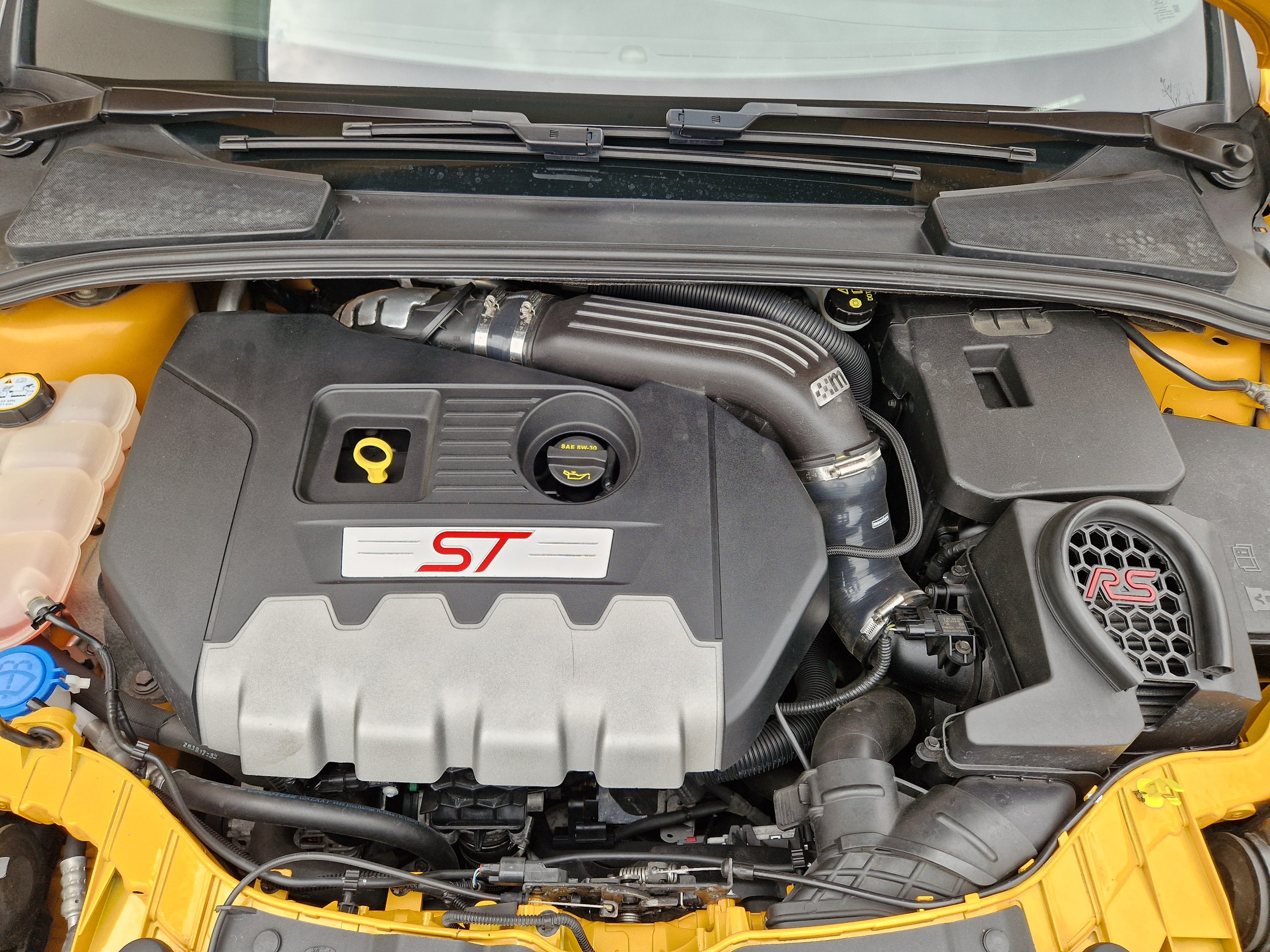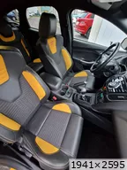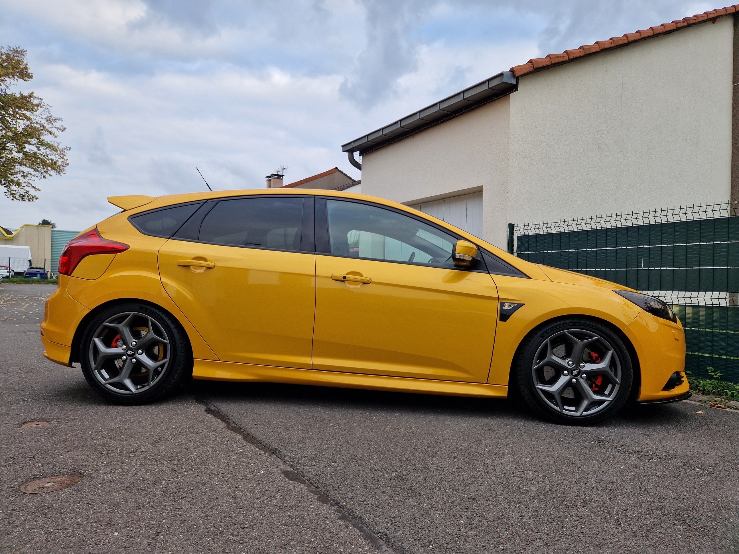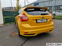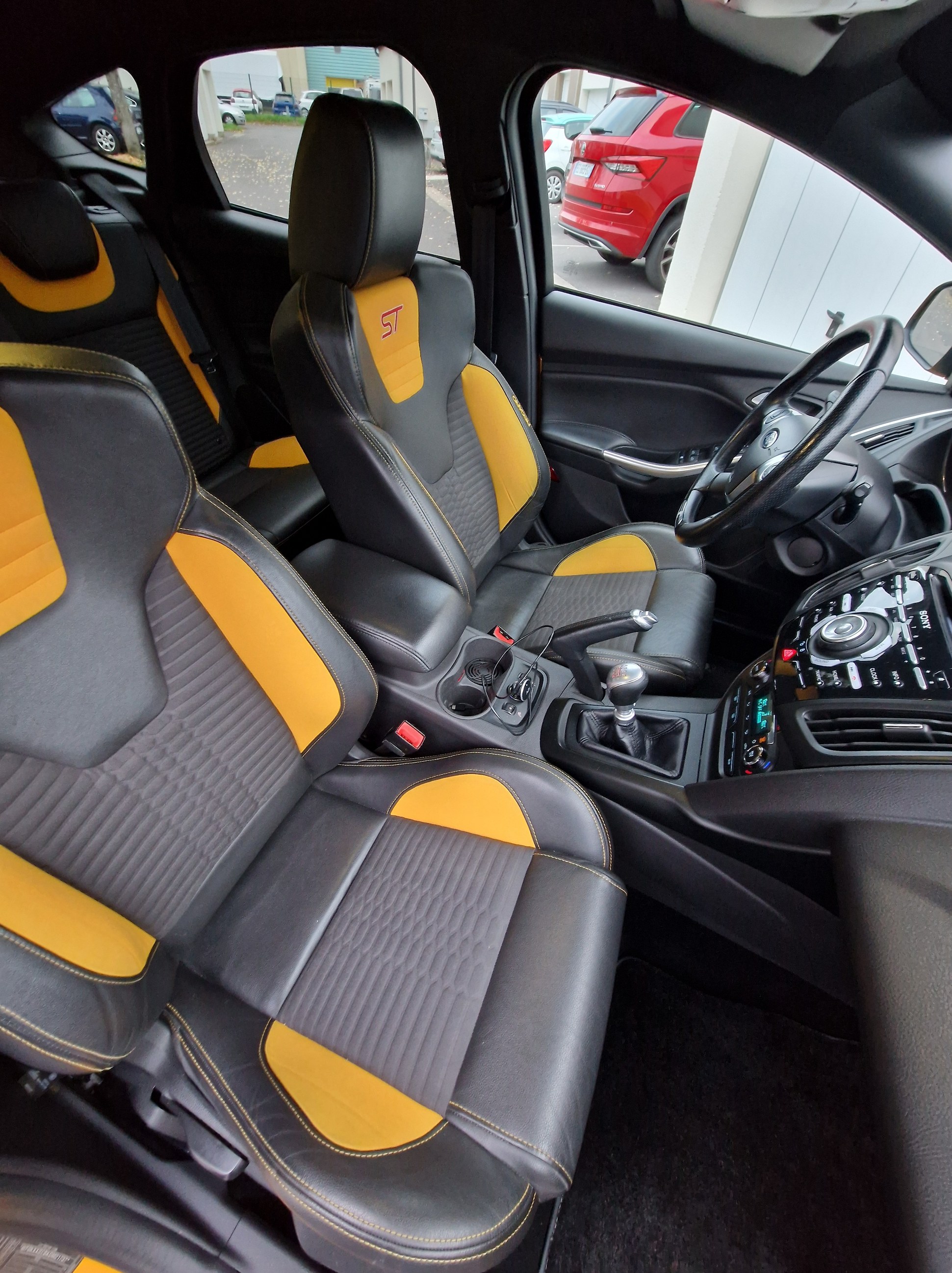 La ST SW est partie il y a 1 mois après avoir fait 40000kms à son volant en 2 ans; j'ai récupéré la remplaçante semaine dernière et oui c'est à nouveau une ST mais berline. Par rapport à la SW moins d'options mais l'essentiel est là, la teinte tangerine scream-electric gold, peinture multi-couches et nacrée, certains éléments ayant été repeints ont une légère nuance différentes, je pense que ça ne doit pas être évident à refaire comme peinture, en tout cas j'aime bien avec ses reflets et sa variation de couleurs qui tire plus sur l'orange par temps couvert et sombre et plus pétillant et jaune au soleil. Donc Focus ST d'avril 2013, 140000kms au compteur, historique limpide, entretien à jour et pas mal de choses faites: jantes refaites, freins av et ar neufs en Brembo, moyeux arrières neufs, siège conducteur refait chez un sellier, pneus Michelin PS5; le véhicule a eu le droit à un polissage et céramique. quelques modifications dessus: ressorts courts, cat-back Bull-X, durite d'admission d'air Mountune, boite à air RS et filtre sport; petites touches esthétiques lame avant, pare-soleil, logos Ford jaunes, logo ST sur les ailes. ça restera mon daily, elle fera largement le job comme la SW l'a fait mais un peu plus tape cul forcément et plus réactive je trouve aussi niveau moteur ![]() |