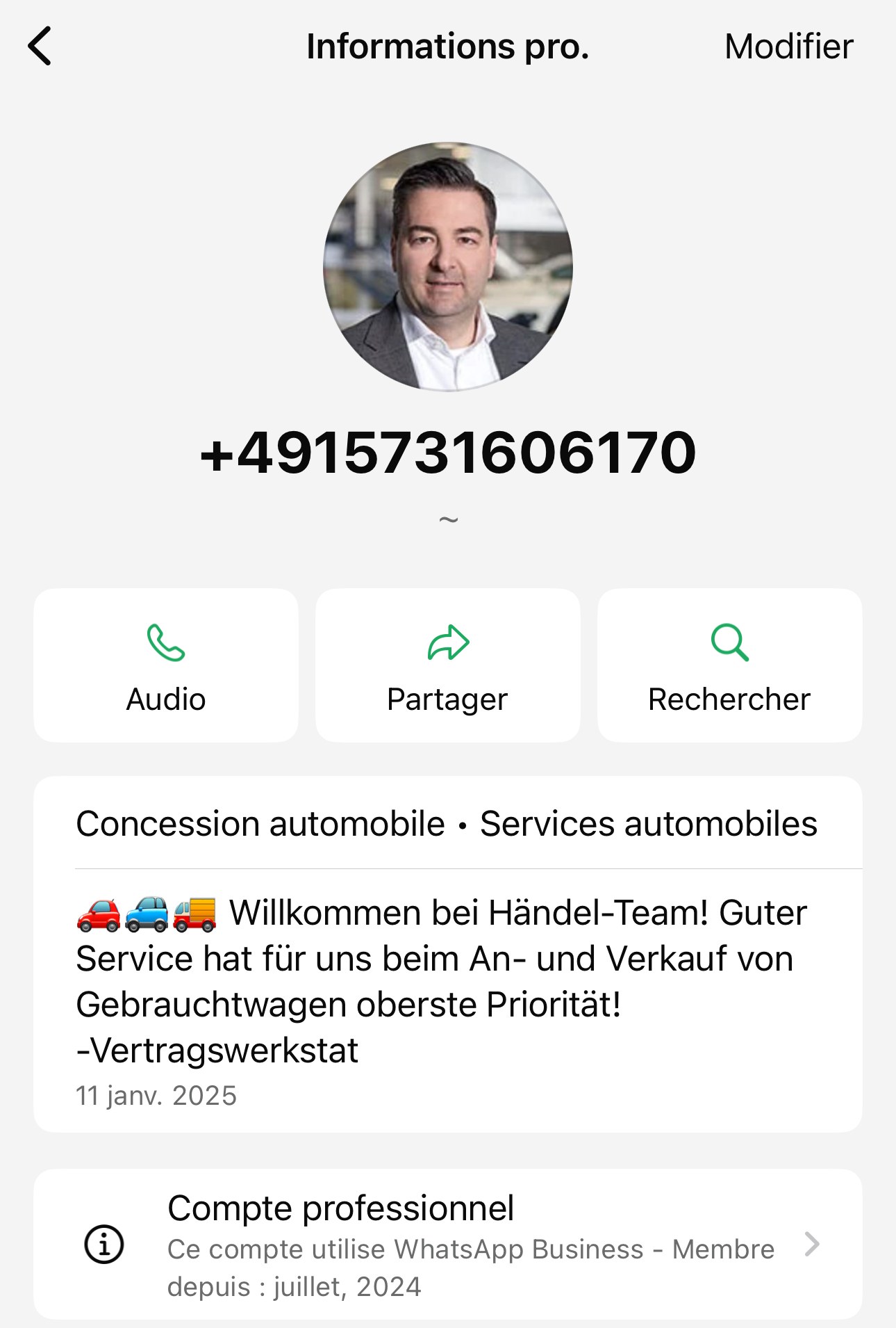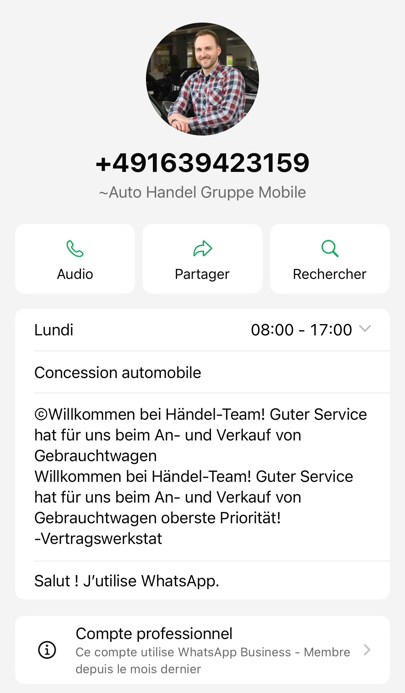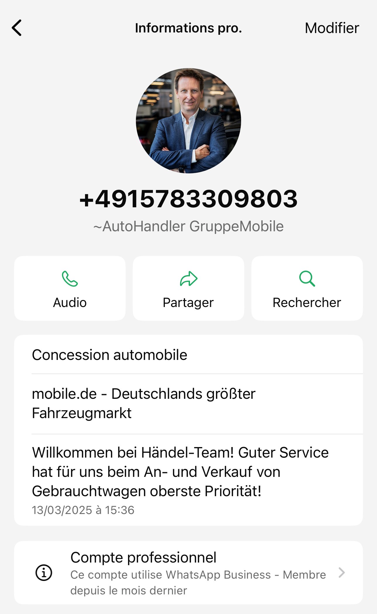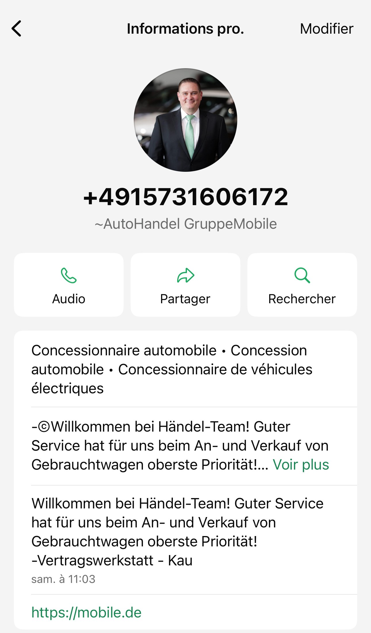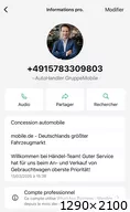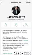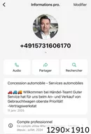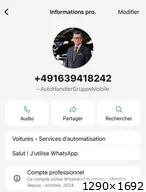 Autre faux numéro virtuel d’arnaque sur mobile.de, automobile.fr etc…du même escroc !!Kontakt WhatsApp Support: ☎ +49 163 9423159 Invoice Netto/ Export Rechnung - 19 % / Export Net Volkswagen Service Partner Audi Service Partner VW ... + 49 163 9423159 +491639423159 |