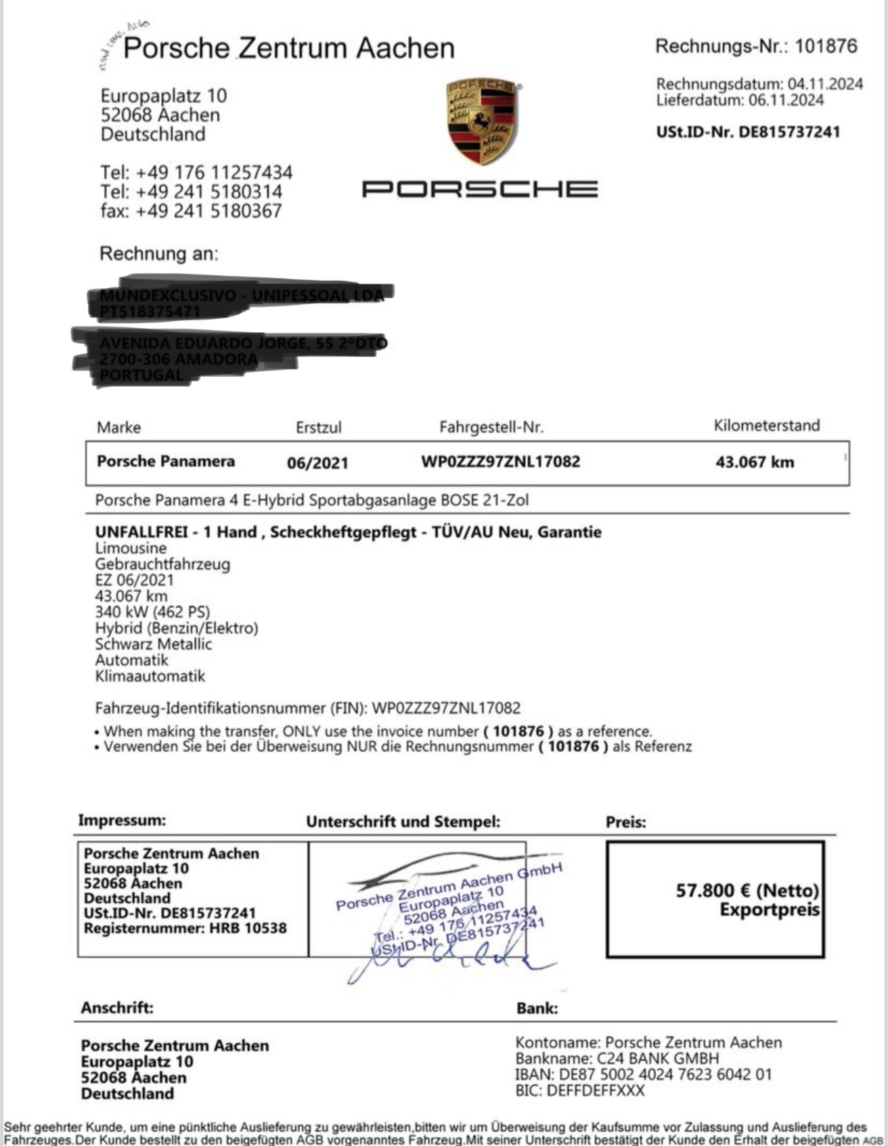Même arnaque !! Kontakt: ∗ Nur über Whatsapp: ☎ +49 1512 4886014 (Bitte beachten: Wir beantworten keine E-mails.)Invoice Netto/ Export Rechnung - 19 % / Export NetSonderausstattung. +4915124886014 |