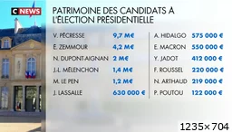 Les Français, le rapport à l'argent touSSa... Perso, je préfère avoir un président qui a 15M de patrimoine qu'un Poutou qui a un Kangoo et une Festina à 50 piges. |