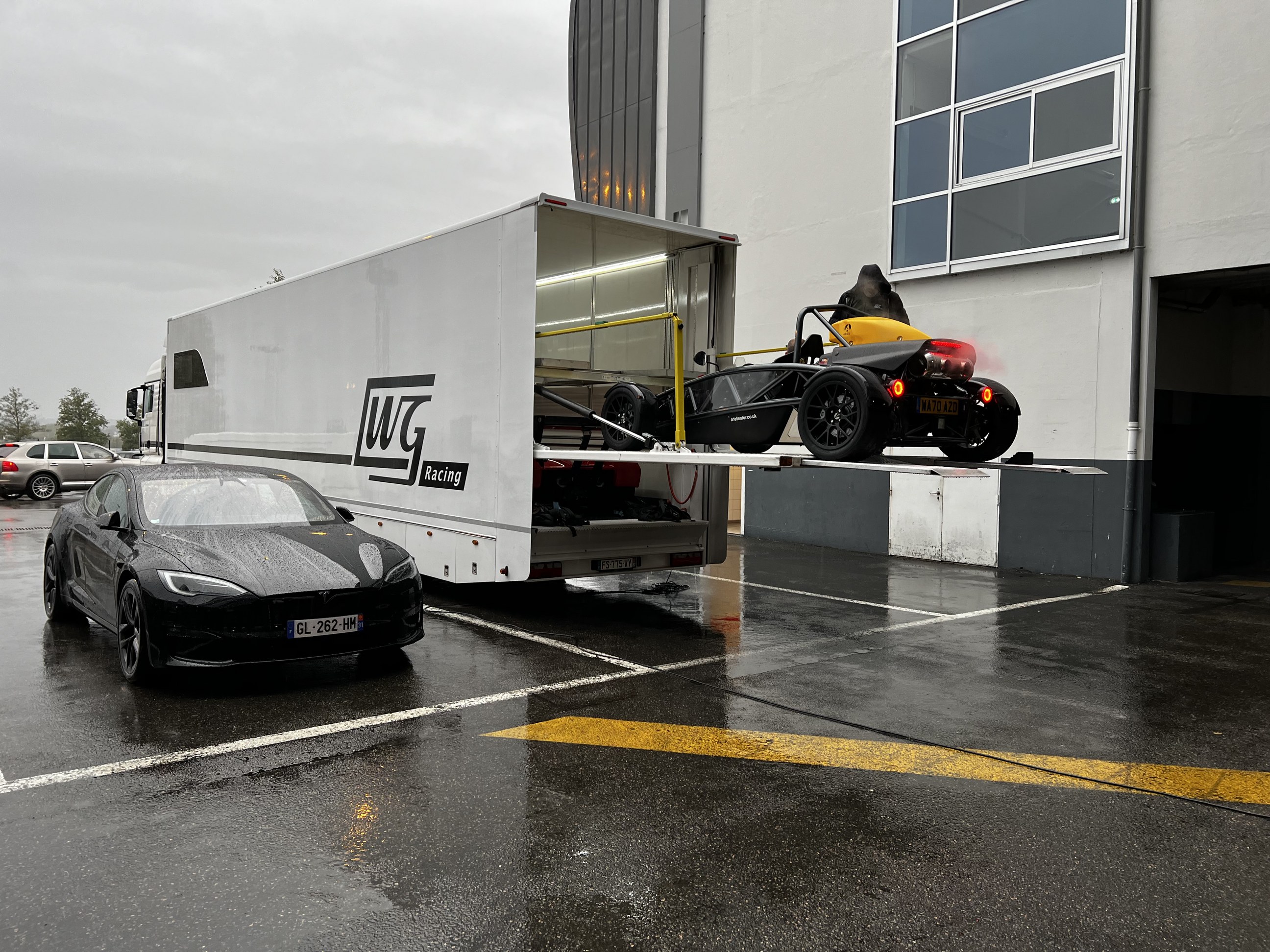 Bon, de retour de Magnycours. On a eu bp de pluie alors j’ai fait quelques tours en Plaid pour voir ce que ca donnait dans ces conditions. J’ai monté recemment des conti sportcontact 7. Ben je me suis marré comme un petit fou! Après une 1ere session timide sous safetycar ou j’ai pas pu exploiter l’auto, j’ai tourné avec l’ariel. Puis de nouveau grosse pluie et j’ai sorti la Tesla. Autant vous le dire de suite: c’est demoniaque J’ai littéralement deposé tout le monde. Mode piste, répart 50/50, assistance au max (du mode piste, ca m’a pas empeché de me mettre a l’equerre). Verdict, les ariels, ferrari 812 superfast, alpines, gt3, dallara…bref tt ce qui roulait je leur ai tourné autour. La motricité deja reste incroyable, ca sousvire un peu dans le tres serré mais rien d’anormal, y a du grip en lateral…et ca derive gentiment des 4 roues en tolerant juste ce qu’il faut pour s’inscrire dans les courbes et en sortie. Bon en tt cas cette voiture est épatante! ![]() |