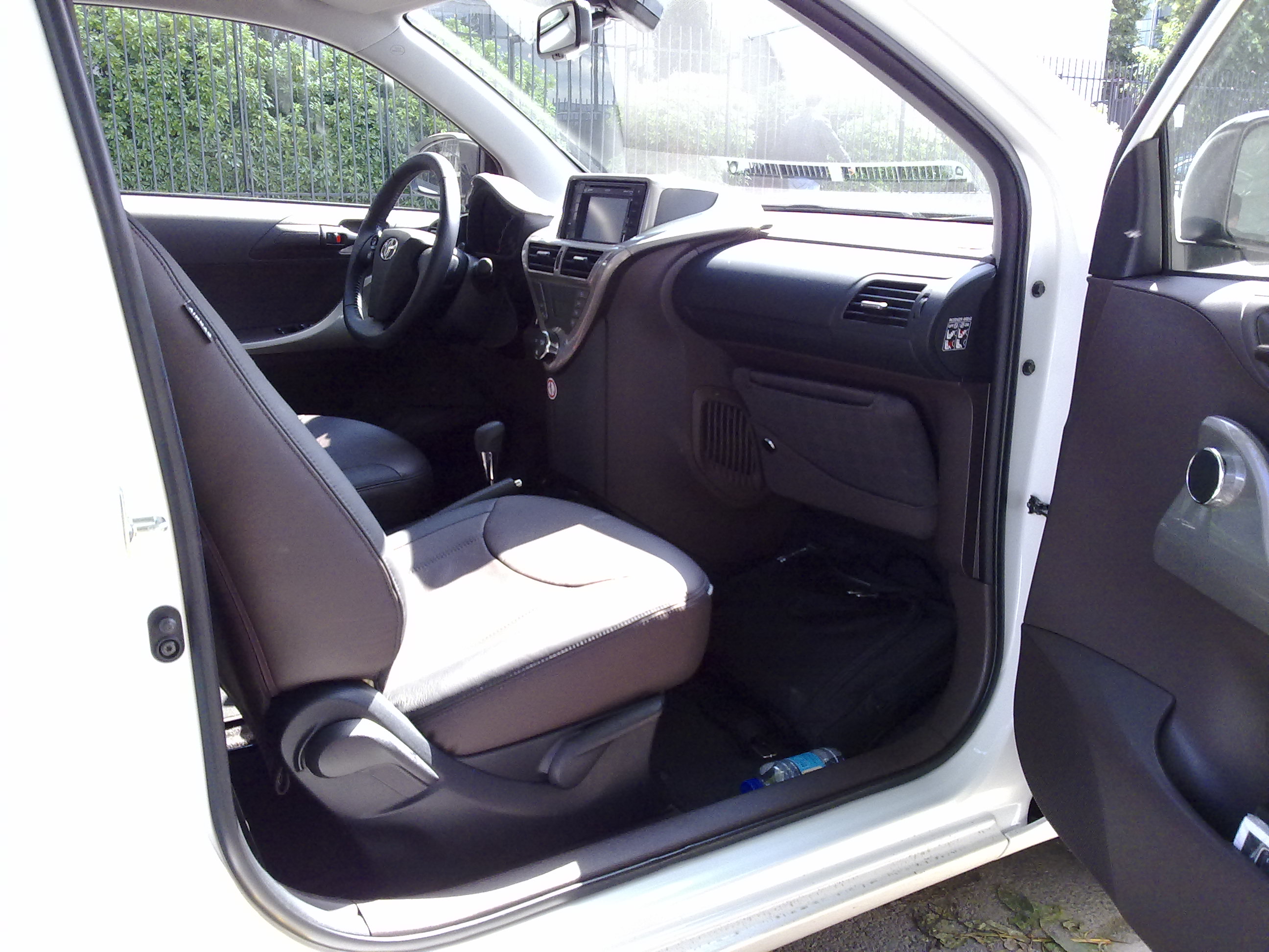 Salut à tous, J'ai décidé de me lancer dans un test report, c'est mon premier alors soyez indulgents ! Vous pouvez voter par le biais du sondage... Aujourd'hui, à l'occasion d'une petite réparation sur ma Lexus, l'atelier m'a prêté une Toyota iQ 1.0L 68ch Multidrive (avec BVA donc). Ce moteur est un 3 cylindres au bruit caractéristique, à tel point qu'on dirait un diesel par moment... La BVA est donc une boîte CVT (à variateur continu) très douce. Il n'y a pas de passage de vitesse et on ne ressent pas de rétrogradage au moment des kick-down, mais en même temps, on reste un peu sur sa faim concernant les perfs si l'on s'aventure hors de la ville... Enfin, parlons peu mais parlons bien, et commençons par une petite série de photos de l'extérieur: ![]() ![]() ![]() ![]() ![]() ![]() Notez que l'iQ est présentée là en finition haut de gamme Q2. Personnellement, je trouve la ligne réussie. La voiture est très compacte (3m de long seulement), mais son air trapu et son empattement de 2m ne donnent pas l'impression d'être en face d'une caisse à savon. La ligne évoque un petit cube et inspire confiance. J'aime bien aussi les optiques de phares et le prolongement de la vitre arrière sur les côtés. Le seul truc que j'aime moyennement, c'est cette calandre "pincée" qui rend la face avant un peu sévère. Passons à l'intérieur maintenant: ![]() On entre par la "grande" porte sans clef puisque l'iQ est équipée d'un système main libre, et on s'assoit au volant. Dans cette finition haut de gamme Q2, on a normalement le cul posé sur des sièges tissus, mais la version de prêt que j'aie est équipée en option de la sellerie cuir bi-ton noir/chocolat (chauffante) qui m'a l'air de plutôt bonne qualité. Je ne suis pas parvenu à trouver une très bonne position de conduite, je me trouvais assis trop haut, en effet le siège n'est pas réglable en hauteur et le volant n'est réglable qu'en hauteur et pas en profondeur... Je mesure 1m86 et j'ai la tête assez proche du plafond, trop à mon goût... La finition a l'air plutôt de bonne facture, du moins en ce qui concerne les assemblages, car les matériaux sont basiques et les plastiques durs. Par contre le volant, le pommeau de levier de vitesse et de frein à main sont gainés de cuir, et ça je sais que beaucoup de gens y tiennent ! ![]() ![]() ![]() L'ergonomie de la console centrale est très simple. Il y a peu de boutons, et tout est assez intuitif. La mienne est donc équipée de la climatisation automatique et du système de navigation. Le système de navigation inclue les autres fonctions telles que bluetooth, radio/cd, et autres trucs. Les commandes de la radio sont aussi sur le volant. La finition est bonne, tout est bien assemblé et il n'y a aucun craquement. La pièce triangulaire qui englobe les différents éléments est faite d'un genre de métal, de l'aluminium probablement. C'est pas mal. Le gros défaut ici c'est l'absence d'accoudoir central, je suppose qu'il a été sacrifié sur l'hôtel de la modularité, pour pouvoir moduler les sièges avant et arrière au maximum. Vous voyez là aussi une photo du sélecteur de la boîte auto et les boutons des sièges chauffants. On peut dire que cette iQ en finition HdG est très bien équipée. Je ne vais pas tout lister, mais il y a pèle-mêle les sièges chauffants, les feux et essuie-glaces automatiques, la clim auto (très efficace, il faisait un peu plus chaud aujourd'hui, j'ai pu tester), le rétro intérieur électrochrome, les rétros extérieurs réglables et rabattables électriquement, les vitres électriques (évidemment), le système de démarrage main-libre, etc. Pour une petite citadine, c'est vraiment pléthorique surtout avec le GPS et le bluetooth en option, elle a tout d'une grande ! ![]() ![]() ![]() Comme vous voyez sur la photo ci-dessus à gauche, il n'y a pas de boîte à gants. En lieu et place, une espèce de pochette plate où l'on peut ranger des papiers et autres documents et cartes routières. Ça n'est pas très pratique, mais ça permet de libérer de la place pour que le passager avant puisse s'avancer au maximum et donc libérer de la place pour le passager arrière. ![]() Si le passager avant fait vraiment un effort, on peut installer un adulte pas trop grand derrière lui. Mais le siège derrière le conducteur reste symbolique. Mieux vaut le rabattre pour obtenir un peu de volume de coffre. Les contre-portes permettent de placer quelques objets. Il y a bien un porte-gobelet entre les sièges avants, mais plus approprié comme vide-poche pour moi. Par contre les sièges arrières ont chacun leur porte-gobelet. Tout est prévu pour les conducteurs et passagers qui aiment boire et manger en roulant. ![]() ![]() ![]() Avec les sièges en place, il y a zéro espace de coffre. Que dalle ! Mais comme le siège derrière le conducteur est vraiment inutilisable à moins de vraiment le serrer contre le volant, on peut utiliser cette espace comme un coffre. Et on peut mettre un enfant ou une personne de taille moyenne sur l'autre place. L'accès à l'arrière n'est pas trop compliqué, mais le siège passager avant ne conserve pas la mémoire de son réglage précédent, il faut donc le re-régler à chaque fois qu'on le rabat. ![]() ![]() ![]() Bon, passons maintenant au vif du sujet: La conduite ! Vroum vroum ! Bon, c'est bel et bien un 3 cylindre essence. En appuyant sur le bouton de démarrage, j'entends tout de suite un clac-clac qui résonne sous le capot, et des vibrations au ralenti. Bon, on dirait un diesel... mais ça n'en est pas un ! ![]() ![]() Le sélecteur sur Drive, et hop, je m'élance... Ce petit moteur de 1,0l de 68ch est plutôt vif au démarage, la voiture bondit au moindre effleurement de la pédale d'accélérateur. Par contre au premier dépassement, je tente un kick-down... Rien... Le moteur rugit mais je ne sens pas de rétrogradage... Et je ne sens pas non plus un coup de pied au cul. C'est un peu mou... 