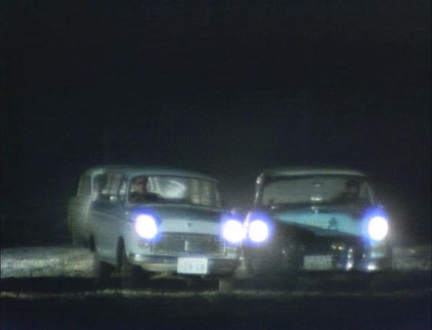 Datsun 1200 Van RHD (1961) fait le coup de poing contre une américaine LHD dans Kaiki Daisakusen |