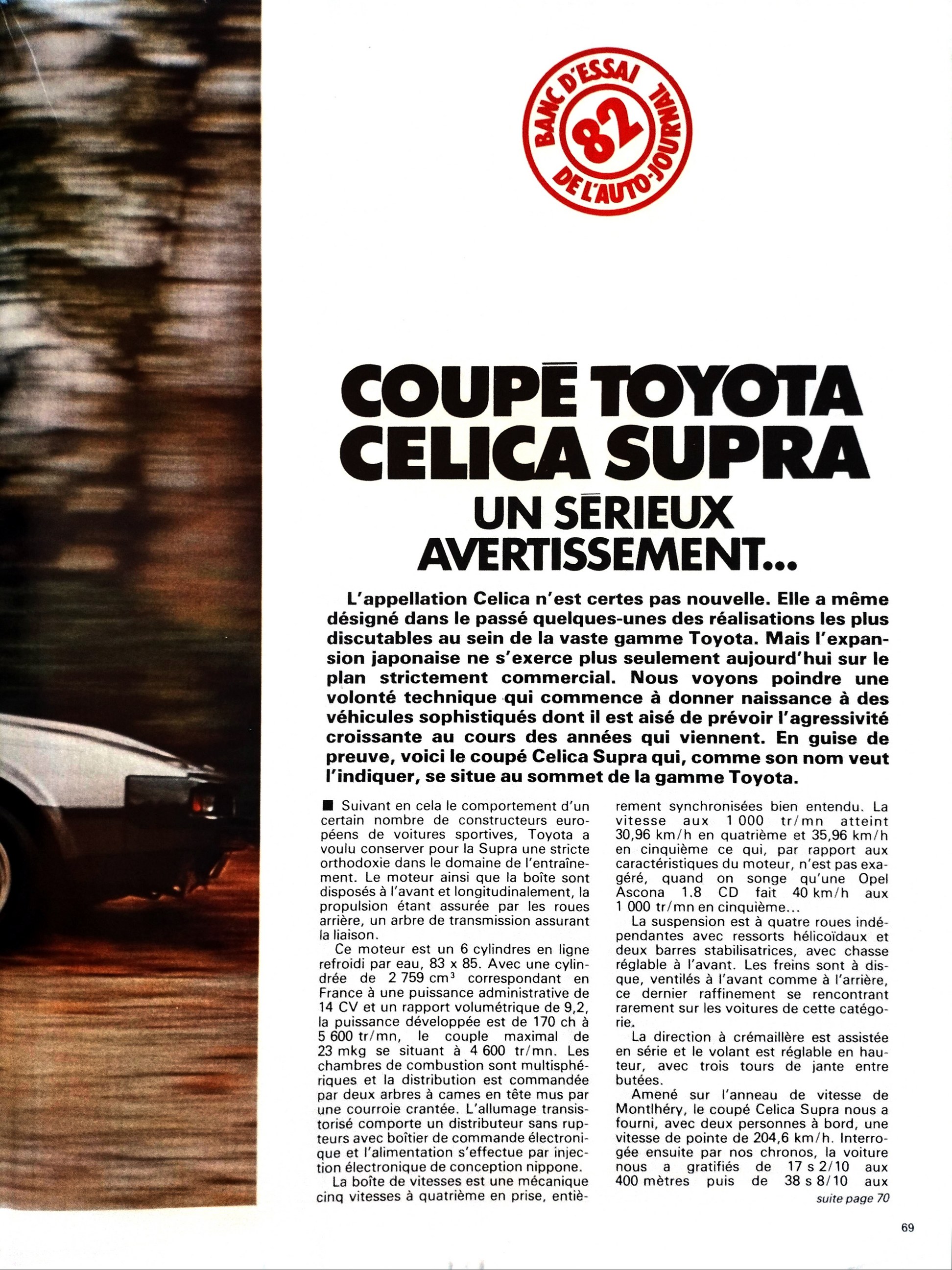 Auto-journal N°22 - 15 Décembre 1982 Essai - Toyota Celica Supra Coupé ![]() |