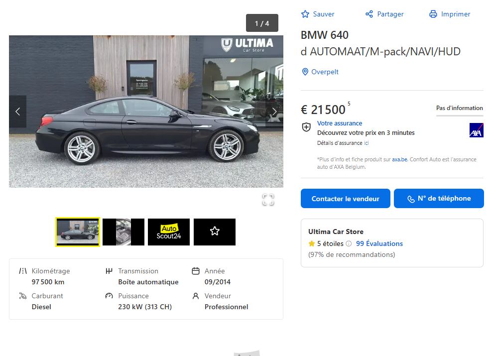 Bof j ai un collègue qui a une 640i gc au boulot c est le prix qu’il a payé il me semble … et la Config est plus originale |