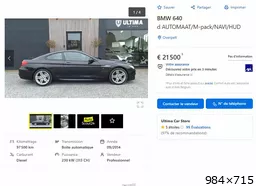 Celle-ci vient de sortir, je la prendrai bien pour l'hiver. Ca se revendra le même prix au printemps C'est le revendeur de ma M4, ses caisses sont toujours en excellent état. https://www.autoscout24.be/fr/offres/bmw-640-d-automaat-m-pack-navi-hud-diesel-noir-159223ca-4e07-4c2c-8b36-d435402dfaeb?sort=age&desc=1&lastSeenGuidPresent=true&cldtidx=6&position=6&search_id=1akjqlsifd1&source_otp=t10&ap_tier=t10&source=listpage_search-results&order_bucket=unknown&new_taxonomy_available=false&boosting_product=none&relevance_adjustment=organic&applied_boost_level=t10&boost_level=t10 (BMW 640 Coupé en Noir occasion à Overpelt pour € 21 500) ![]() |