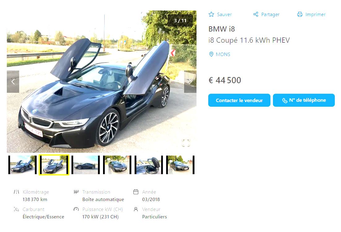 Sinon pour le prix d'une M4, il y'a ça ... https://www.autoscout24.fr/offres/bmw-i8-i8-coupe-11-6-kwh-phev-electrique-essence-noir-a08b4924-d8d6-49b7-947b-7583faa1efb9 (BMW i8 Coupé en Noir occasion à MONS pour € 44 500) ![]() |