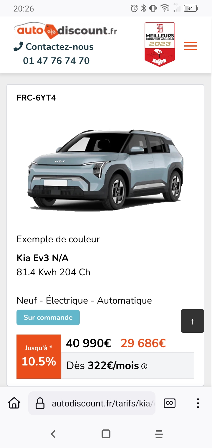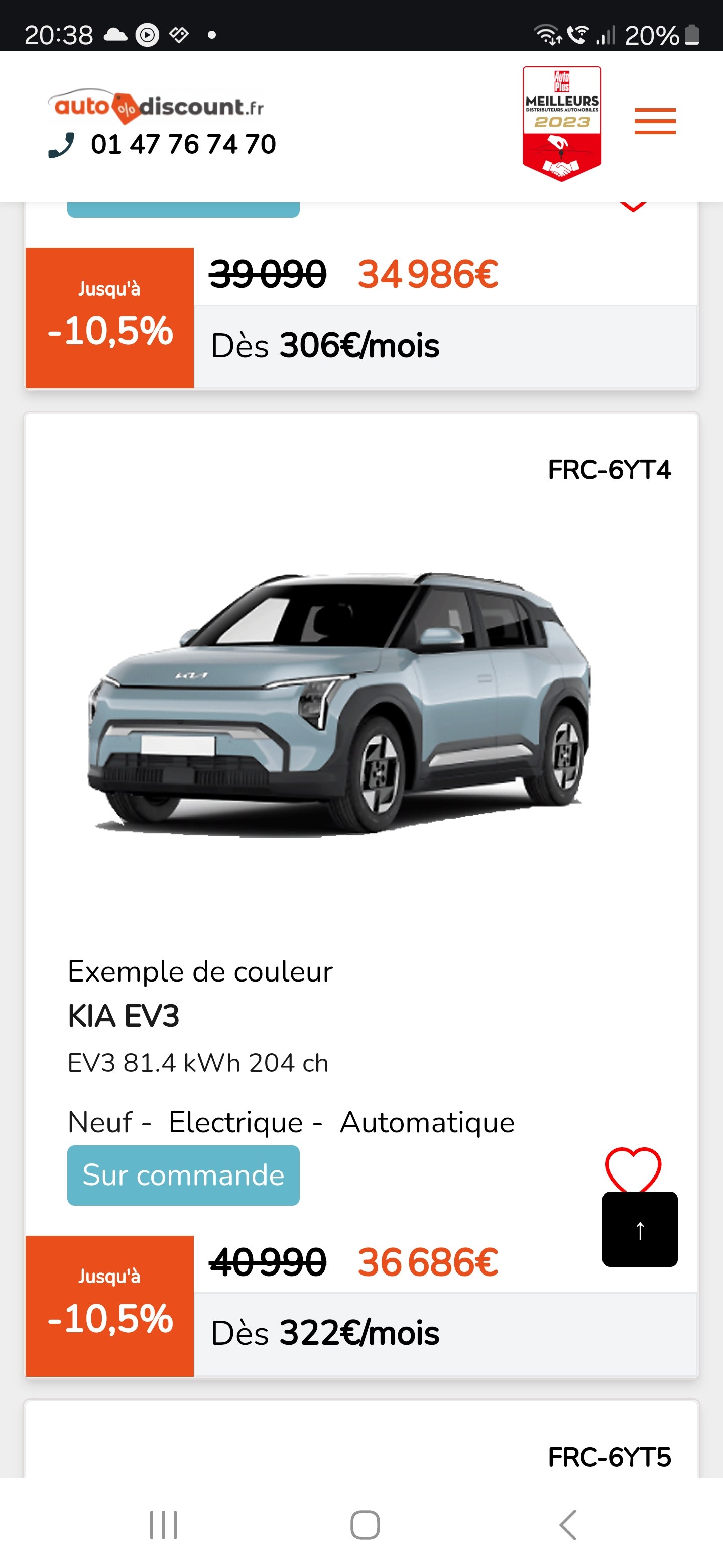 En France avec un Siret il y a 11% sur EV3 et 4000 sans Siret en offre Kia (ça je comprends pas autant l'afficher 4000 de moins des le départ) |