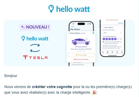 Si c’était possible pour 2 voitures, je pense que dans mon cas c’est super rentable mais ce n’est pas encore possible et les Kia ne sont pas compatibles J’ai une formule intermédiaire, la recharge de la Tesla est confiée à Hellowatt de mon coté (sans changer de fournisseur), c’est fonctionnel depuis 2 jours et ça a l’air de marcher En théorie, je dois générer du cashback sur mes recharges |