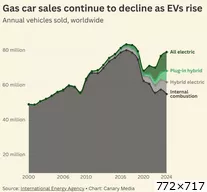Une vue intéressante du marché mondial. Il est probable que le pic autour de 2018 ne soit plus jamais atteint même en cumulant toutes les énergies En 2023, les HEV / PHEV / BEV représentaient 1 million de baril de pétrole en moins consommé chaque jour. On peut imaginer que ce chiffre continue à croitre chaque année ![]() Dernière édition le 13/01/2026 à 14:25 par starter, édité 2 fois |