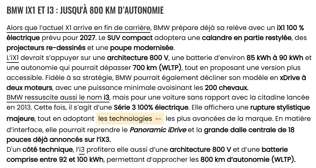 Si les données se confirment pour le futur IX1, ca pourrait me faire basculer en Full electrique pour les voyages. En esperant que ce new IX1 reste sous les 4m50 de longueur. ![]() |