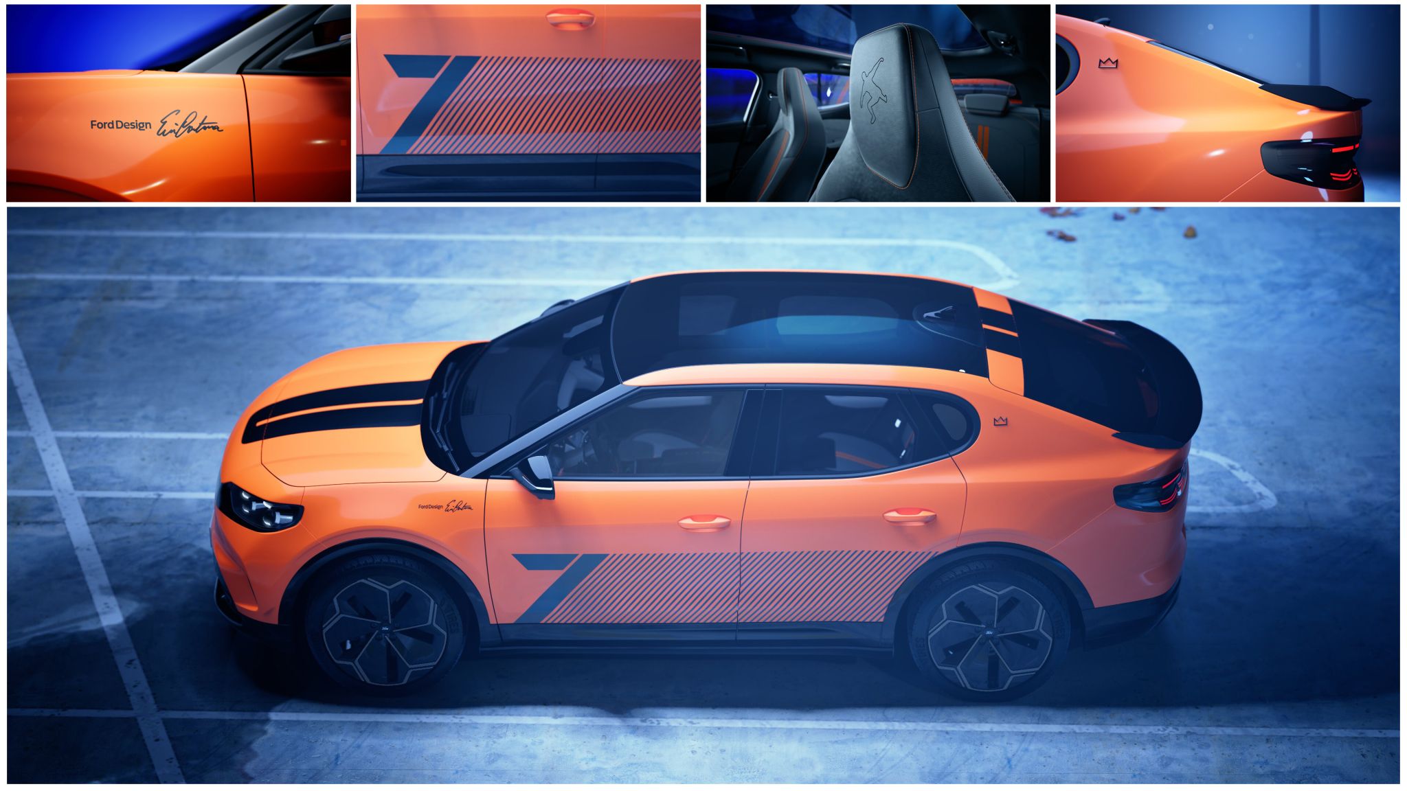 Citation de Le Nouvel Automobiliste : « Et voici le Ford Capri Eric Cantona ! Le footballeur avait déjà été associé à la campagne de lancement, il le demeure avec ce modèle unique, du numéro 7, avec une teinte "Signal Orange", une couleur classique de la marque à l'ovale, pour célébrer le lancement que Ford estime réussi de son premier SUV coupé électrique. » |