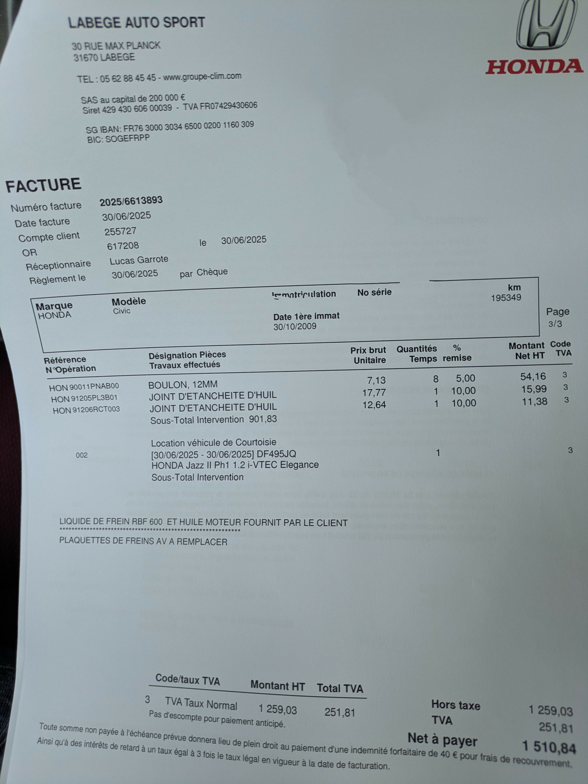 Y avait pas une facture avec de l'huile de BV dessus ? me semble ! |