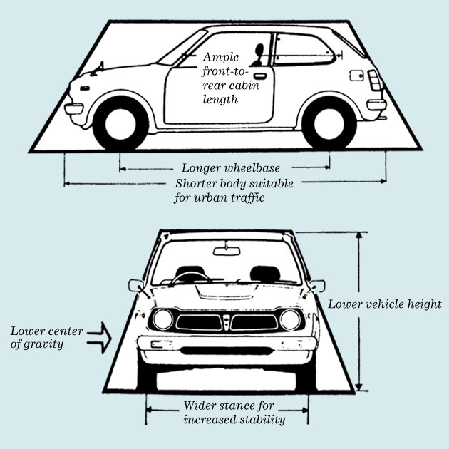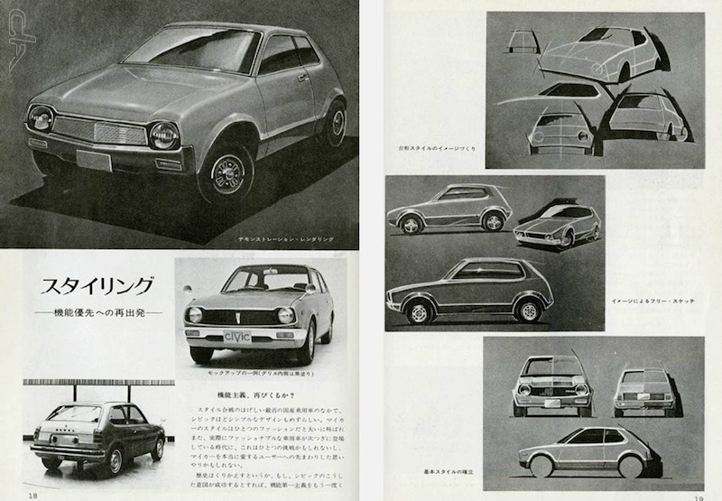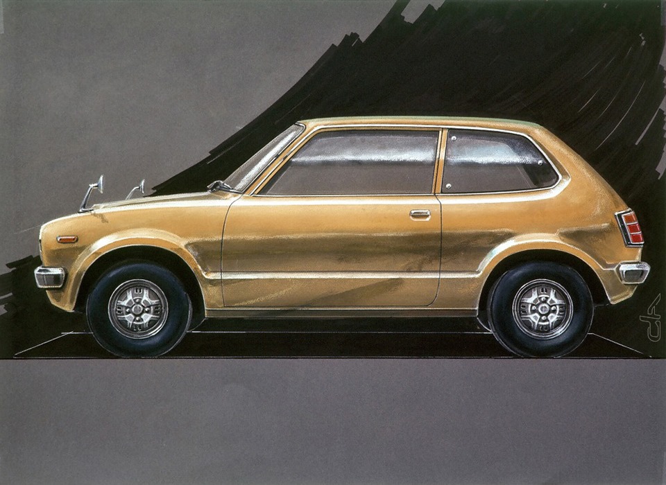 Citation de Car Design Archives : « 1972 Honda Civic Mk1 ——— Démarré au Honda R&D Design Center de Wako à l’été 1970, la toute première Civic est née du constat d’échec de la H1300 lancée l’année précédente. Pour ce nouveau modèle, aucune erreur ne peut être commise. Si le projet échoue, c’est l’avenir même de Honda en tant que constructeur automobile qui est en jeu. Une véritable épée de Damoclès ! ∷∷∷∷ Man maximum/Machine minimum ∷∷∷∷ Pour imaginer le modèle idéal, deux équipes sont constituées en interne. Alors qu’elles repartent toutes deux d’une feuille blanche, leur réponse délivrée quelques mois plus tard va s’avérer étonnamment très proche avec le concept : “une world car compacte, légère et rapide”. «Avec la Honda 1300, nous avions fabriqué une très bonne voiture sur certains points mais médiocre sur d’autres», se souvient Hiroshi Kizawa, le directeur du programme de l’époque, qui a succédé à Tadashi Kume. «Cette fois-ci nous voulions créer une voiture plus conventionnelle mais qualitative à tous les niveaux.» Il faut dire qu’avec une croissance de près de 10% par an, le marché japonais est en pleine mutation. Les consommateurs de l’Archipel deviennent plus exigeants avec une nouvelle frange de la population qui peut enfin accéder à l’automobile. C’est donc à ce stade que sont définies les valeurs clé du modèle : “fonctionnelle et minimaliste, offrant un rapport optimal entre le format, les performances et de faibles consommations”. Mais c’est surtout avec ce modèle que sont jetées les bases du célèbre concept M/M (“Man maximum/Machine minimum”), afin de ne pas sacrifier l’utilisateur aux contraintes de l’ingénierie. ∷∷∷∷ Bicorps ∷∷∷∷ Avec un tel cahier des charges, le format tricorps est délaissé au profit d’un modèle deux volumes, trois portes et traction avant. Trois configurations encore peu prisées au Japon. Avec une obsession constante tout au long de son développement : le gain de poids, ce qui va entraîner des modifications techniques majeures comme la suspension indépendante que le président Soichiro Honda combattra ardemment. Avec son hayon, la Civic inaugure un vocabulaire trapézoïdal inédit, qui permet de camper le véhicule. Certes, la première génération n’est pas des plus gracieuses, mais son style contribuera à lui forger une identité qui sort du lot ; le lead designer Shinya Iwakura n’hésitant d’ailleurs pas à faire un parallèle avec la minimoto Monkey (voir > https://bit.ly/CDA2058). ∷∷∷∷ CVCC ∷∷∷∷ Mais au-delà du design, le vrai succès du modèle viendra de son moteur CVCC. Celui-ci est conforme aux normes d’émissions du Clean Act Air américain réactualisé au tout début de la décennie 70 et contrairement aux motorisations de la concurrence, celui de Honda fonctionne indifféremment à l’essence sans plomb mais également au Super ordinaire grâce à son absence de catalyseur. Un avantage de taille lorsque l’essence sans plomb ne sera plus disponible à la pompe aux États-Unis après le premier choc pétrolier ! Des atouts indéniables qui permettront à la Civic de percer sur tous les fronts, et en particulier en Amérique du Nord. De quoi assurer l’avenir de Honda. ∷∷∷∷ Naming ∷∷∷∷ Enfin, un dernier mot sur le choix du nom CiViC, bien sûr dérivé de son moteur. Vers la fin de son développement, ce modèle n’avait pas encore reçu de patronyme. C’est à cette époque qu’Iwakura a reçu un coup de fil de Kiyohiko Okumoto, alors directeur des ventes, et lui lance : «Nous avons trouvé un nom pour la nouvelle voiture, mais je voulais le valider avec vous, vous qui connaissez la voiture mieux que quiconque. Son nom est Civic». En entendant cette appellation, Iwakura était aux anges. Le service commercial avait enfin compris ce que le bureau d’études avait essayé de réaliser : une voiture humble, destinée à tous et créée pour les villes. » |