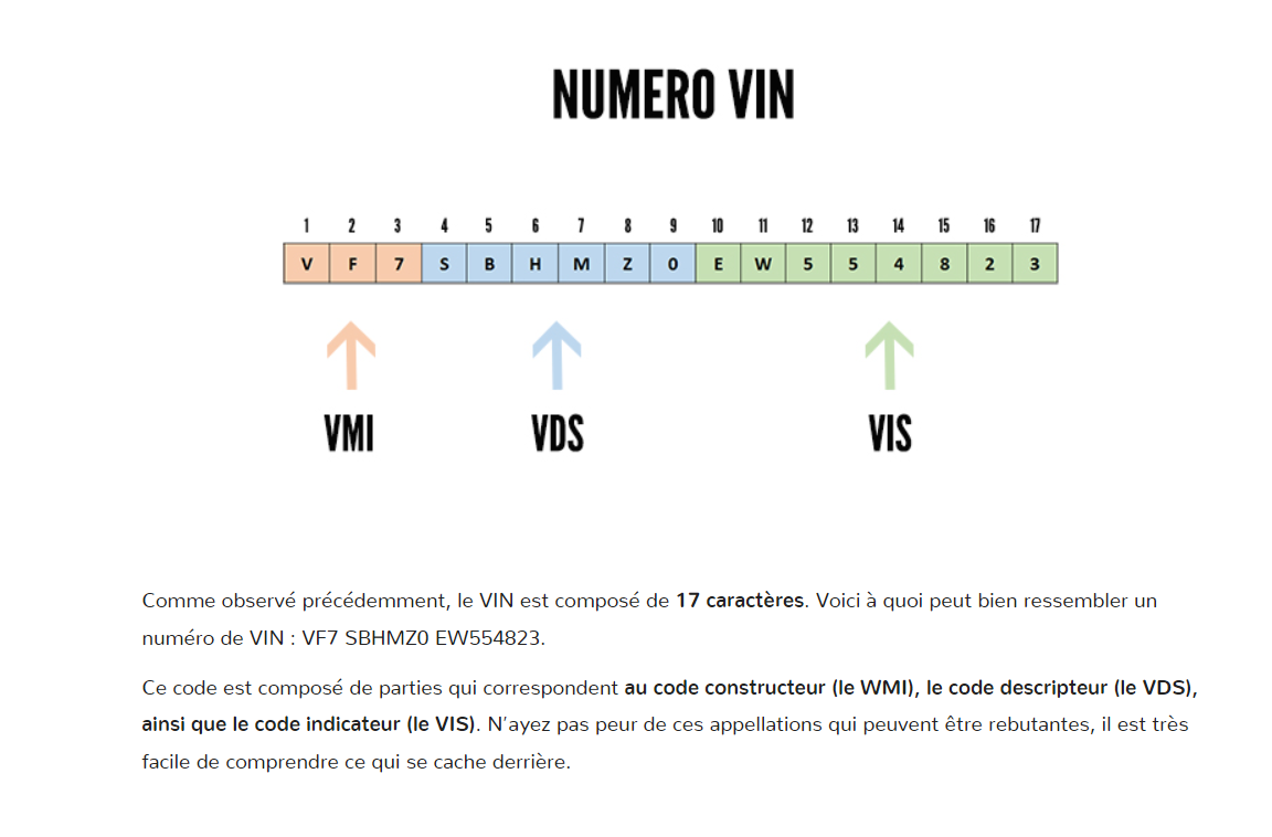 @geotrouvtout Ton MJ ............ inscrit sur le certificat d'immatriculation en D.2.1 est le Code National d’Identification du Type (CNIT) Défini par l'Union Eropéenne pour son marché. je pense que ce numéro pour un modéle identique (+année) est commun à un type receptionné pour sa diffusion dans l'UE Le champ E correspond au numéro d’identification sur la carte grise, c’est-à-dire, au numéro VIN (N°Unique ) Véhicles Identification Number = Code international N° de série inscrit par le constructeur. et frappé sur la caisse. Source https://www.outilsobdfacile.fr/blog/numero-vin-p73.html (Numéro VIN voiture: cest quoi et où le trouver?) '' Qu’est-ce qu’un numéro VIN ? Que signifie le numéro VIN pour votre voiture ? L’acronyme VIN provient de l’anglais Véhicles Identification Number ou pour les non-anglophones, Numéro d’Identification du Véhicule (ou NIV). Certaines personnes utilisent également le terme « Numéro de chassis », ou peuvent utiliser les appellations NSV (Numéro de Série du Véhicule) ou NST(Numéro dans la Série du Type). Plus simplement, si on devait résumer brièvement ce qu’est un VIN, il s’agit d’un code alphanumérique de 17 caractères, expérimenté pour la première fois aux USA à partir de 1954. Il s’est définitivement généralisé à tous les véhicules mondiaux en 1981. Ce code vous permettra de distinguer tous les véhicules à travers le monde, chaque code est unique et correspond à une voiture en particulier. Cette combinaison de lettres et de chiffres est donnée au véhicule par le constructeur. Ce procédé est valable partout dans le monde, que vous soyez sur le sol américain, africain, européen ou asiatique, chaque véhicule aura son numéro VIN. Ce code a été encadré par les normes ISO. '' ![]() Dernière édition le 15/03/2024 à 18:27 par bedpp, édité 1 fois |
