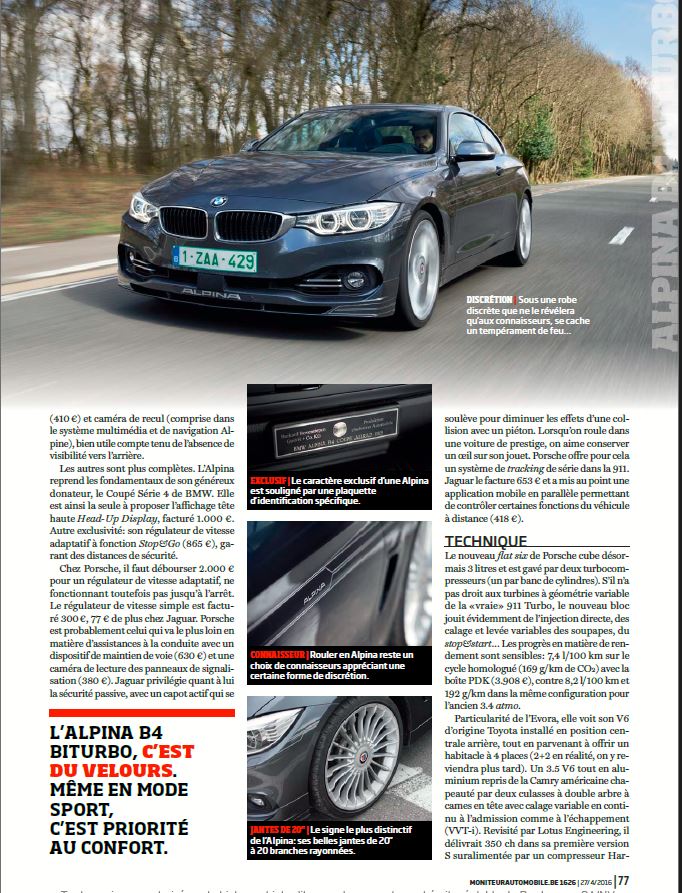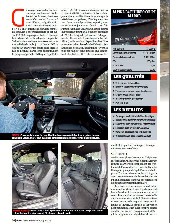 En tout cas moi qui aime (entre autres) les 911 la sur les 4 c'est pas elle que je prendrai ... et si j'aime bien les BM pas l'Alpina non plus |